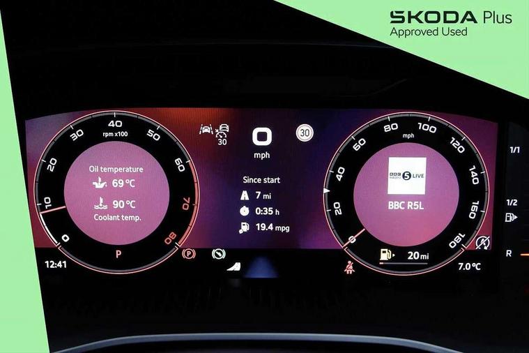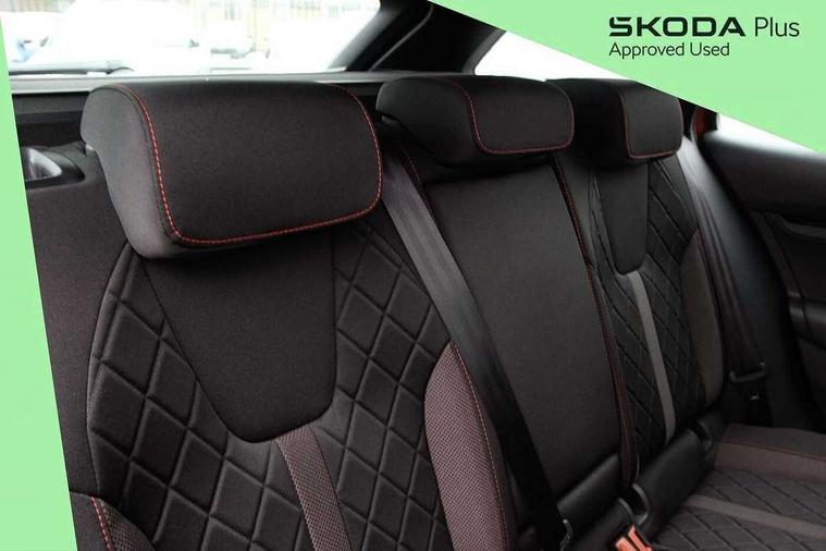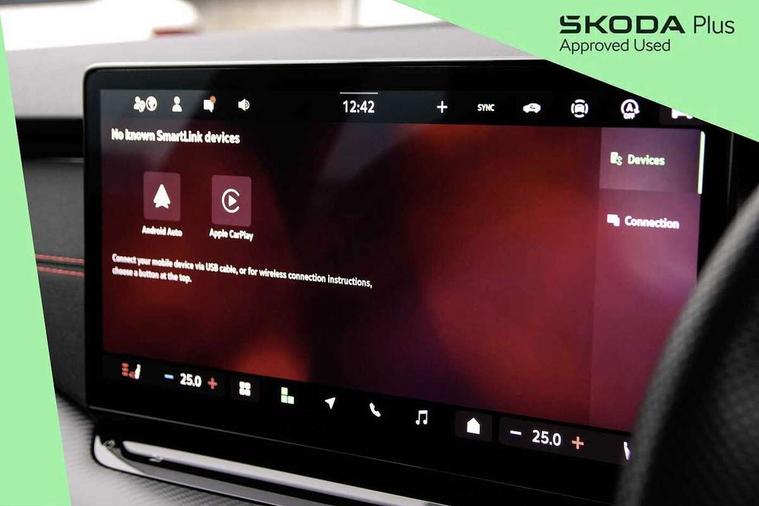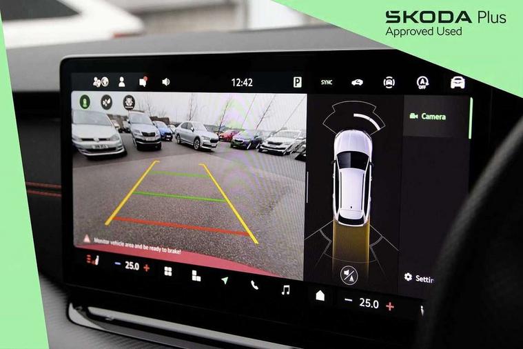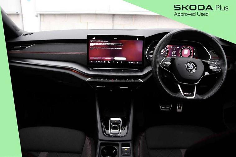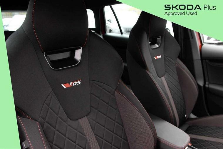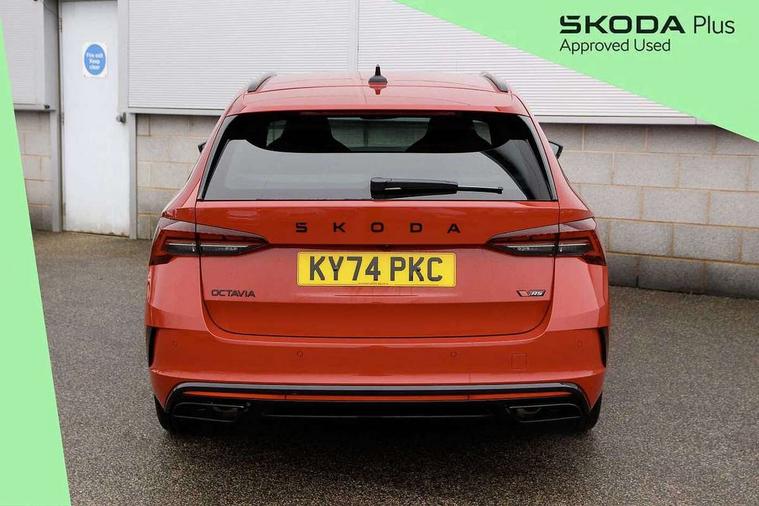 1x USB Typc C port in rear view mirror, 4x USB Type C ports - 2x in front centre console and 2x in rear (45W), Blind spot detection, Drive mode selection, Driver fatigue sensor, eCall emergency system, Electrically operated boot with virtual pedal, Front and rear parking sensors with manoeuvre assist, Front assist system, Predictive adaptive cruise control with traffic jam assist, Progressive dynamic steering, Traffic sign recognition, Turn Assist, Virtual Cockpit - 10.25" digital display, Voice control system, Wireless charging (15W) with cooling function, Wireless SmartLink for Apple CarPlay and Android Auto, Electronically controlled limited slip differential, vRS suspension, 13" touchscreen display with navigation, DAB Digital radio, Aero front windscreen wipers with intermittent function, Auto dimming rear view mirror, Black sport exhaust pipes, Body colour bumpers, Body colour door handles, Electric front and rear windows, Exterior gloss black sports styling including front grille, window surrounds, door mirrors and badging, Gloss black diffuser, Gloss black roof rails, Gloss black spoiler, Heated rear windscreen, High beam control, High level third brake light, Ice scraper in fuel cap, LED daytime running lights, Logo projection in front doors, Rain and light sensors, Rear fog light on one side, Rear privacy glass, Rear side wing doors, Rear window wiper, Unique vRS bumpers and exterior styling, 12 volt socket in boot, 3 rear headrests, 3 seat bench in 2nd row, 4 foldable roof handles, Aluminium pedals, Front head restraints, Front sport seats, Heated front seats, Illuminated glovebox, Interior door handles in dark chrome, Jumbo Box storage, Luggage compartment lighting x2 lights, Mechanical rear seat release from boot, Single front passenger seat, Steering wheel in black leather with black stitching, Storage compartments in left and right of boot, Sun visors with mirrors, Sunglasses storage, Ticket holder, Umbrella in door panel, Unsplit rear bench seat, split folding backrest with centre armrest with cupholder, Waste bin in door panel, Comfort package - Octavia Estate, Family package - Octavia, Light and view package plus - Octavia, vRS Design Selection pack - Octavia, 3x3 point rear seat belts, Alarm with interior monitoring, tilt sensor and back up horn, Curtain airbags and front side airbags, Driver and front passenger airbags, Drivers knee airbag, Electronic parking brake, ESC including ABS, EBV, MSR, ASR, EDS, HBA, DSR, Front central airbag, Hill hold assist, ISOFIX on front passenger seat and outer rear seats, Passenger airbag deactivate switch, Red brake calipers, Three point seat belts in front and rear, Two tone horn, Tyre pressure monitor, Visual and acoustic seat belt reminder, Warning reflectors in front door, Anti-theft wheel bolts, Keyless start/stop, Remote central locking, Gloss black air vent surrounds, 19" Elias anthracite alloy wheels,