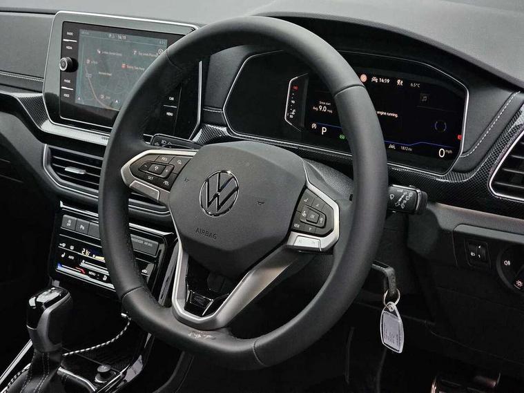 'Lights On' Reminder warning buzzer, 10.25" Digital cockpit pro, Advanced driver attention and drowsiness monitor, Car information display, Driver profile selection including ECO function, Dynamic road sign display, E-Sim card for online connectivity, eCall emergency call system, Front and rear parking sensors, Front assist, forward collision warning, autonomous emergency braking and speed limiter, Low washer fluid warning light, Multifunction computer with visual gear change recommendation for fuel consumption, Multifunction front facing camera for distance control, Operating permit alteration, Power assisted steering, Predictive adaptive cruise control, Preparation for navigation system with media and internet package, Preparation for We connect and We connect plus, Semi-automated driving assistance, travel assist including lane keeping system Lane Assist and emergency assisst, Side assist, Speedo, rev counter, electronic odometer, trip, service interval display, exterior temperature and fuel gauge, Warning sound and light for doors and tailgate open, Warning sound and light for front seatbelts unfastened, Wireless Car net app connect with Apple CarPlay, combined functionality of Apple CarPlay/Android Auto and MirrorLink, Wireless charging, Misfuel prevention device, Start-stop system with battery regeneration (recuperation - energy recovery during braking), 2 USB C ports in front, 2 USB charging sockets on the centre console in the rear charging capacity upto 45W, Diversity antenna for FM reception, Music playback - MP3, WMA and AAC files, Radio, Automatic dimming interior rear view mirror, Automatic hazard lights activation under emergency braking, Automatic headlight control with LED separate daytime running light and coming home and leaving home feature, Body colour door handles, Body coloured bumpers, Dynamic headlight range control with self adjusting whilst driving, Electric folding door mirror, adjustable, heated with front passenger exterior mirror lowering function, Exterior mirrors convex on the left and aspherical on the right, Front and rear electric windows, Front door sill protectors with R-Line logo, Galvanised body, Heat insulating and laminated safety glass windshield, Heat insulating darkened glass in side and rear windows, High Beam Assist, automatic sensing for switching between dipped and main beam, LED rear combination lights, LED third brake light, Lower door sills and door pillars in black, Rain sensor, Rear fog light on one side, reversing light on both sides, Rear side wing doors, Rear window aerial, Rear window wiper with intermittent control, Reflectors in all doors, Scuff plates, Tailgate with integrated roof spoiler, 12V Accessory socket in centre console, 2 Front and rear reading lights incorporating LED technology, 3 rear head restraints, 3 seat bench in 2nd row, 60/40 split folding rear seat backrest, Air care climatronic 2 zone air conditioning system, Ambient lighting, Brushed stainless steel pedals, Chrome plated radiator grille inserts, air vent surrounds and light switch surrounds, Cloth upholstery, Comfort front sport seats, Door and side trim panel, Driver and front passenger sunvisor with vanity mirror, Dust and pollen filter, Front + rear carpet mats, Front centre armrest with storage compartment, Front footwell illumination, Front seat back storage pockets, Glove compartment door with light, Heated front seats, Heating and fresh air system with 4 stage blower, Height/reach adjust steering wheel, Instrument lighting white adjustable panel illumination, Interior light with switch off delay and dimmer, Isofix anchors for child seats on outer rear seats and front passenger seats, Leather gearshift handle, Leather wrapped multifunction steering wheel, Luggage compartment floor, Luggage compartment lighting, Manual front seats with height adjustment, Padded dashboard, Removable luggage compartment cover, Single front passenger seat, Storage compartment in drivers and front passengers door, Titanium black roof lining, Unsplit sliding rear seat bench, Without drawers under front seats, 3 point outer rear seat belts with ECE label, 3 Point seatbelt for centre rear seat, Anti-lock Braking System (ABS) with Hydraulic Brake Assist (HBA), Automatic post collision braking system, Disc brakes in front, Disc brakes in rear, Driver and front passenger safety-optimised head restraints, Drivers and Front Passengers airbags with front passengers airbag deactivation switch, ESC with EDL and ASR (traction control), Extended and predictive pedestrian/cyclist protection, Front and rear passenger curtain airbag system including front side airbags, Height adjustable front 3 point seatbelts + pretensioners, Hill start assist, Pre crash preventive occupant protection, Proactive passenger protection system in combination with front assist, Rear door child safety locks, Rigid safety cell with front and rear crumple zones, Single tone horn, Tyre pressure loss indicator, Volkswagen roadside assistance, Alarm with interior protection, Anti theft alarm system, Electronic engine immobiliser, Remote tailgate unlocking using key fob, Titanium Black Decorative inserts - R Line, Low rolling resistance tyres,