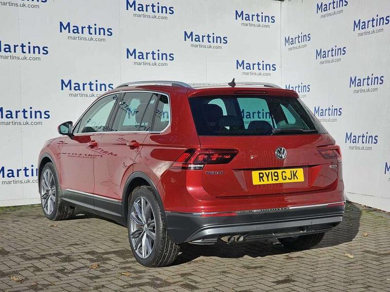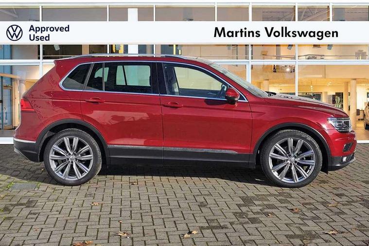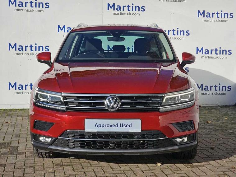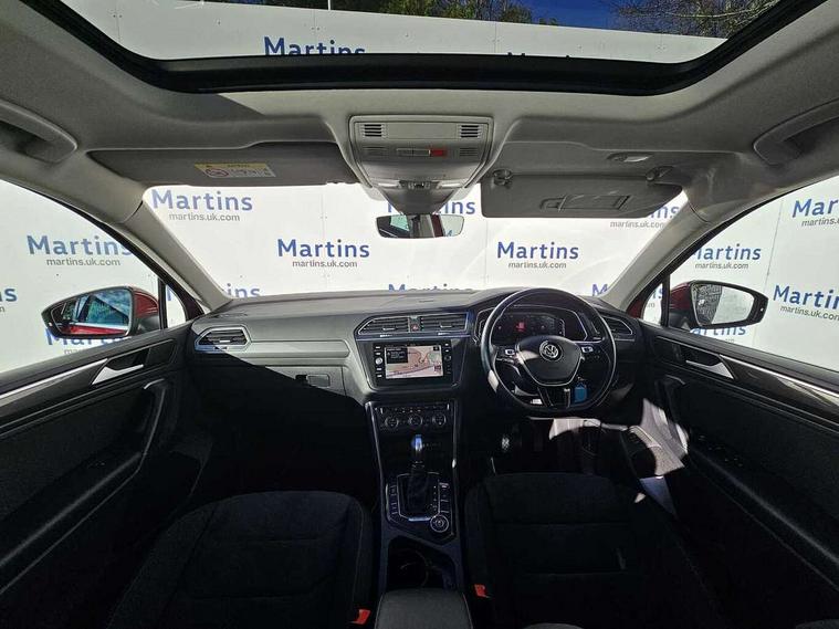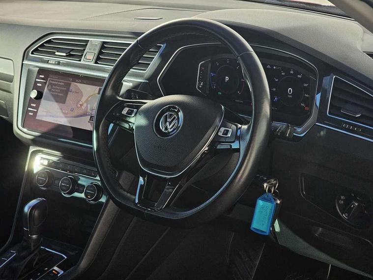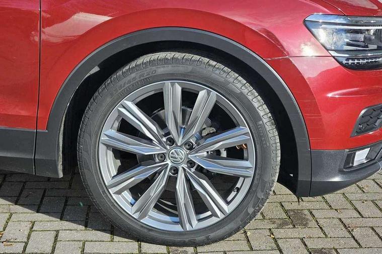 Active information display, Adaptive cruise control, App-Connect, Bluetooth phone integration system, Car-Net Security and Service, Coasting function, Distance control assist, Drive mode selector, Driver profile selection, Fatigue detection system, Front assist, radar sensor controlled distance monitor, city emergency braking + predictive pedestrian protection, Instrument cluster, Lane assist, Low washer fluid warning light, Multifunction colour display, Outside temperature display, Service interval indicator, Speed limiter, Start/Stop function, Warning lights, Diesel particulate filter, Misfuel prevention device for diesel engine, XDS electronic differential lock, 2x USB sockets in front, 4 X 20 watt output, DAB Digital radio, MP3 compatible single CD player, SD card slot, Simultaneous pairing of 2 compatible mobile devices, SMS functionality - read, compose and send SMS messages using touch-screen display, Title and cover art display, 3D effect cherry red LED rear tail lights, Auto dimming interior mirror, Automatic activation of hazard warning lights, Black door protector with chrome inserts, Body colour door handles, Body colour door mirrors, Body coloured bumpers, Chrome side body trim, Chrome side window surrounds, Chrome trimmed radiator grille, Coming/leaving home lighting function, Dusk sensor + auto driving lights, Electric folding door mirrors, Electric heated + adjustable door mirrors, Electric panoramic sunroof with sunblind, Front air intake with chrome strip, Front and rear electric windows, Halogen clear headlights with integrated indicators and range adjustable, Heated rear window, High level 3rd brake light, LED headlights with dynamic light assist daytime running lights and cornering front fog lights, LED rear number plate lights, Rain sensor windscreen wipers, Rear windscreen washer and wiper with interval delay, Side door sills with chrome inserts, Side skirts and rear bumper with chrome insert, Silver rear diffuser trim, Silver roof rails, Silver under body guard, Tinted windows (B pillar backwards), Windscreen wipers/ intermittent wipe + 4 position delay, 12V Accessory socket in centre console, 3 rear headrests, 3 zone climate control, 4 load lashing points, 40:20:40 split folding rear seats, Bag hook in luggage compartment, Driver + front passenger lumbar support, Foldable passenger seatback, Front + rear carpet mats, Front centre armrest with 12v socket, Front centre armrest with storage + rear 2 air vents + cupholders, Front seat back storage pockets, Front seatback folding tables, Height/reach adjust steering wheel, Illuminated driver/passenger vanity mirrors, Illuminated scuff plates, Instrument lighting white adjustable panel illumination, Interior light with delay, Isofix Preparation 2 Rear child seats, Leather gear knob, Load through provision with 2 cupholders when folded, Lockable cooled glovebox, Luggage compartment lighting, Luggage compartment side storage, Map pockets on front seats, Passenger seat height adjuster, Passenger underseat drawer, Rear cupholders, Removable luggage cover, Sliding/reclining rear seats, Storage compartment in driver's door, Storage compartment in passenger's door, Storage compartment in rear doors, Storage tray on dashboard, Sunglasses storage, Variable boot floor, Ambient lighting pack - Tiguan, Winter pack - Tiguan/Tiguan Allspace, 3 rear 3 point seatbelts, ABS+EBD+Brake assist, Active bonnet, Active pedestrian safety system, Curtain airbags, Driver/Front Passenger airbags, Driver/Passenger whiplash optimised head restraints, Drivers knee airbag, DTC - Drag torque control, Electronic parking brake with auto hold, ESP with EDL + ASR, First aid kit, Front side airbags, Front ventilated disc brakes and rear disc brakes, Head airbag system, Height adjustable front 3 point seatbelts + pretensioners, Hill hold control, Passenger airbag deactivate switch, Passenger knee airbag, Proactive preventive occupant protection, Rear side airbags, Rigid safety cell with front and rear crumple zones, Seatbelt warning lamp and buzzer, Two tone horn, Warning triangle, Alarm with interior protection, Electronic engine immobiliser, Remote central locking with 2 remote folding keys, Chrome door trim inserts, Piano black interior trim, Steel space saver spare wheel,