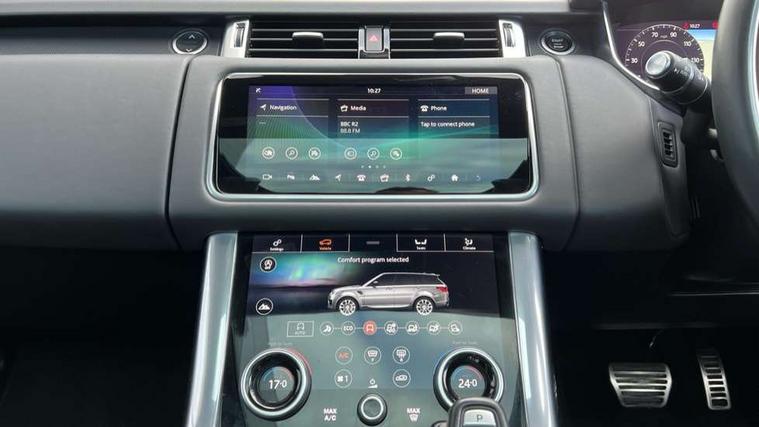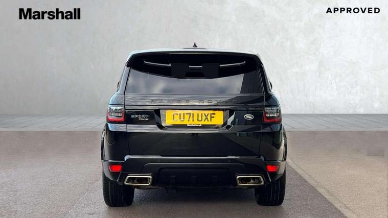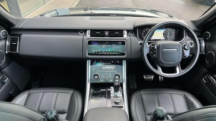 All Terrain Info Centre, Android Auto, Apple car play, Bluetooth connectivity, Electric power assisted steering (EPAS), Incontrol apps in vehicle touchscreen, Interactive Driver display instrument cluster, Mist sensor, Navigation pro system with 10" touch screen, app interface and media storage, Pro services and wifi hotspot, Push button start, Remote premium - Upgraded Incontrol remote app including remote climate control (engine dependent), remote lock + Unlock and remote beep + flash, TFT Virtual Instrument Panel, Touch pro duo system, Trip computer, 7 kW onboard charger, Adaptive dynamics, Electronic active differential with brake torque vectoring, Electronic air suspension, Engine cover, Gradient release control (GRC), Public charging cable, Terrain Response 2 with dynamic program, Twin speed transfer box, Bluetooth audio streaming, DAB Radio (Digital Audio Broadcasting), Incontrol protect - SOS emergency call with automatic collision detection, optimised assistance call and Incontrol remote app essential, USB/aux input socket, Acoustic front and toughened rear side glass, Acoustic laminated front windows, Adaptive brake lights, Auto dimming interior rear view mirror, Automatic headlights, Body coloured side sills and bumpers corners, Centre high mounted stop light, Electric windows with one touch open/close and anti trap, Electrical towing preparation, Follow me home lighting, Front and rear recovery eyes, Front fog lights, Headlight power wash, Heated rear window, Heated windscreen includes heated washer jets, Illuminated metal tread plates with brand name script, LED rear lamps, Privacy glass (Tinted glass rear of B pillar), Rain sensing windscreen wipers, Rear fog lights, Rear side wing doors, Rear wash/wipe, Remote window closing, Side repeater indicators in mirror, Sport Badge in black, Standard bonnet, Trailer stability assist, Twin bright tailpipes, 2 way active front head restraints, 2 way rear head restraints, 3 seat bench in 2nd row, Auto air recirculation, Bright metal foot pedals, Centre console with armrest, Climate control memory, Customer configurable single point entry, Driver's footrest, Extended leather upgrade includes door top rolls and leather instrument panel mid section, Front and rear cupholders, Front door storage space, Front map lights, Front seat back map pockets, Front stowage pocket, Front/rear passenger grab handles, Heated steering wheel, Isofix child seat preparation, Leather steering wheel with Atlas inserts, Loadspace light, Loadspace mounting provisions, Lockable glovebox, Multifunction steering wheel, Perforated Windsor leather upholstery, Pollen filter, Power socket, Reach/rake electric adjustable steering column + entry/exit tilt away, Rear centre armrest, Rear ISOFIX, Roller blind loadspace cover, Satin chrome gearshift paddles, Single front passenger seat, Sports pedals, Three 12V accessory power outlets, Black Exterior pack - Range Rover Sport, Smartphone pack - Range Rover Sport, 3 point seatbelts on all seats, Anti-lock braking system (ABS), Brake pre-fill technology, Cornering brake control (CBC), Curtain airbags, Customer configurable autolock, DSC - Dynamic Stability Control, Dual stage driver/passenger airbags, EBD - Electronic brakeforce distribution, Electric parking brake, Electronic traction control, Emergency braking includes city, urban AEB and pedestrian, Front seatbelt pretensioners, Gradient acceleration control, Height adjustable front seatbelts, Hill descent control, Hill launch assist, Low traction launch, Passenger seat occupant detector with front airbags, Power operated child locks, Roll stability control, Seatbelt warning, TPMS (Tyre pressure monitoring system), Immobiliser, Intrusion sensor, Keyless entry, Locking wheel nuts, Perimetric and volumetric anti theft alarm, Remote locking, Grand black veneer, 21" 9 spoke gloss black alloy wheels - style 9001, Tyre repair system,