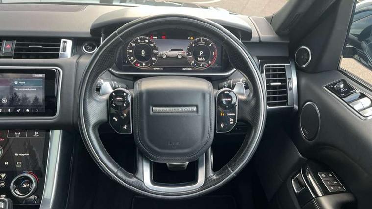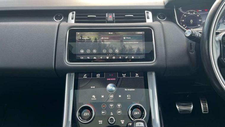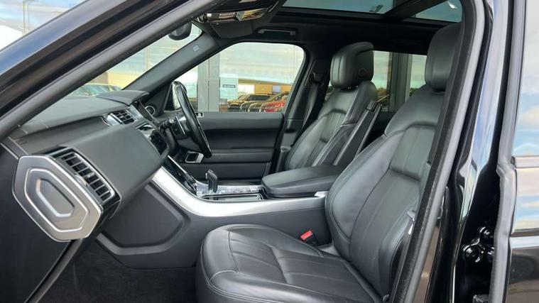 All Terrain Info Centre, Android Auto, Apple car play, Bluetooth connectivity, Electric power assisted steering (EPAS), Incontrol apps in vehicle touchscreen, Interactive Driver display instrument cluster, Mist sensor, Navigation pro system with 10" touch screen, app interface and media storage, Pro services and wifi hotspot, Push button start, Remote premium - Upgraded Incontrol remote app including remote climate control (engine dependent), remote lock + Unlock and remote beep + flash, TFT Virtual Instrument Panel, Touch pro duo system, Trip computer, Gradient release control (GRC), Bluetooth audio streaming, DAB Radio (Digital Audio Broadcasting), Incontrol protect - SOS emergency call with automatic collision detection, optimised assistance call and Incontrol remote app essential, USB/aux input socket, Acoustic front and toughened rear side glass, Acoustic laminated front windows, Adaptive brake lights, Auto dimming interior rear view mirror, Automatic headlights, Body coloured bumpers, Body coloured door mirrors, Electric windows with one touch open/close and anti trap, Electrical towing preparation, Engine cover, Follow me home lighting, Front and rear recovery eyes, Front fog lights, Headlight power wash, Heated rear window, Heated windscreen includes heated washer jets, LED rear lamps, Privacy glass (Tinted glass rear of B pillar), Rain sensing windscreen wipers, Rear fog lights, Rear wash/wipe, Remote window closing, Side repeater indicators in mirror, Sport Badge in silver, Standard bonnet, Trailer stability assist, 2 way active front head restraints, 2 way rear head restraints, 60/40 load through rear seats, Auto air recirculation, Bright metal foot pedals, Centre console with armrest, Climate control memory, Customer configurable single point entry, Driver's footrest, Front and rear cupholders, Front door storage space, Front map lights, Front seat back map pockets, Front stowage pocket, Front/rear passenger grab handles, Heated steering wheel, Isofix child seat preparation, Leather steering wheel with Atlas inserts, Loadspace light, Loadspace mounting provisions, Lockable glovebox, Multifunction steering wheel, Pollen filter, Power socket, Reach/rake electric adjustable steering column + entry/exit tilt away, Rear centre armrest, Rear ISOFIX, Roller blind loadspace cover, Satin chrome gearshift paddles, Three 12V accessory power outlets, Smartphone pack - Range Rover Sport, 3 point seatbelts on all seats, Anti-lock braking system (ABS), Brake pre-fill technology, Cornering brake control (CBC), Curtain airbags, Customer configurable autolock, DSC - Dynamic Stability Control, Dual stage driver/passenger airbags, EBD - Electronic brakeforce distribution, Electric parking brake, Electronic traction control, Emergency braking includes city, urban AEB and pedestrian, Front seatbelt pretensioners, Gradient acceleration control, Grey anodised brake calipers, Height adjustable front seatbelts, Hill descent control, Hill launch assist, Low traction launch, Passenger seat occupant detector with front airbags, Power operated child locks, Roll stability control, Seatbelt warning, TPMS (Tyre pressure monitoring system), Immobiliser, Intrusion sensor, Keyless entry, Locking wheel nuts, Perimetric and volumetric anti theft alarm, Remote locking, Grand black veneer,
