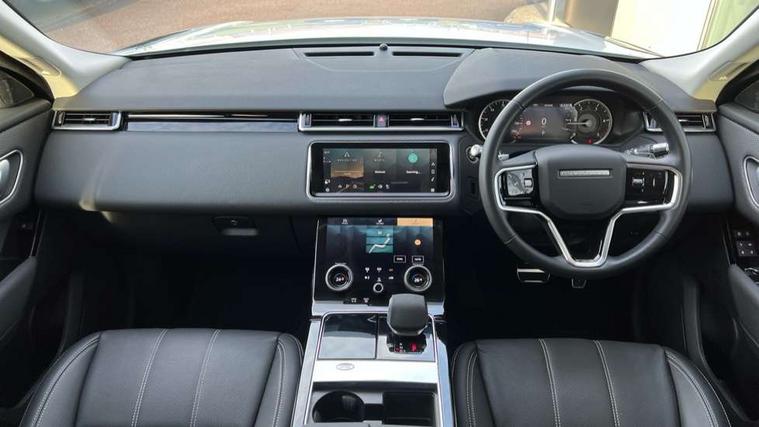 10" deployable touchscreen, Android Auto, Apple car play, Blind spot assist, Bluetooth connectivity, Brake pad wear indicator warning light, Driver condition monitor, eCall emergency call system, InControl remote, Land Rover InControl apps, Lane keep assist, Pivi pro with connected navigation, Push button start, Rear traffic monitor, Service indicator, Speed proportional electronic power assisted steering (EPAS), Traffic sign recognition with adaptive speed limiter, Trip computer, Voice control system, 8 speed automatic transmission, All terrain progress control, Open differential with torque vectoring by braking, Single speed transfer box, Digital Audio Broadcast radio-DAB, Steering wheel mounted controls, Acoustic laminated windscreen, Adaptive front lighting system, Auto dimming interior rear view mirror, Automatic headlamp levelling, Automatic headlights, Body coloured bumpers, Boot protection plate, Electric heated/power fold door mirrors with approach lights and auto dimming driver side, Electric windows with one touch open/close and anti trap, Flush deployable exterior door handles, Follow me home headlights, Heated rear window with timer, Heated washer jets, Heated windscreen, LED 3rd brake light, Metal load space scuff plates, No badge - Removes engine badge, Rain sensor windscreen wipers, Rear animated directional indicators, Rear fog lights, Rear side wing doors, Rear wash/wipe, Tailgate/boot lid spoiler, Trailer stability assist, Velar and R-dynamic badge, 3 seat bench in 2nd row, Ambient lighting, Bright metal pedals, Driver/passenger sunvisors with illuminated vanity mirrors, Isofix system on outer rear seats, Loadspace cover, Overhead lighting console, Overhead stowage for sunglasses, Passive front headrests, Rear air vents, Rear centre headrest, Satin chrome gearshift paddles, Single front passenger seat, Standard interior, Twin front cupholders, Twin sliding front centre armrest, Online pack with data plan - Velar, 355mm front brakes and 325mm rear brakes, 3x3 point rear seatbelts, Anti-lock braking system (ABS), Cornering brake control, Curtain airbags, Customer configurable autolock, Door side intrusion beams, Driver airbag, DSC - Dynamic Stability Control, Electronic brake force distribution, Electronic parking brake, Electronic traction control, Emergency brake assist, Emergency braking, Front and rear seatbelt reminder, Hill descent control, Hill launch assist, Low traction launch, Passenger airbag, Power operated child locks, Rear airbags, Roll stability control, Side airbags, Tyre pressure monitoring system, Unpainted brake calipers, Global lock and unlock switch on driver door, Immobiliser, Intrusion sensor, Keyless entry, Lock only switch on front passenger door, Locking wheel nuts, Perimetric alarm, Remote central locking,