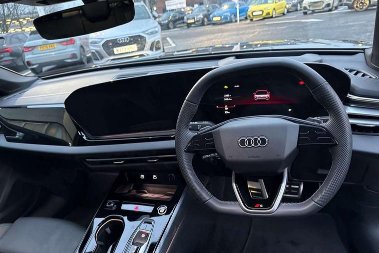 Adaptive cruise control, Advanced driver attention and fatigue montior, Audi application store, Audi assistant, Audi connect emergency call and service, Audi drive select, Audi smartphone interface, Audi virtual cockpit plus with 11.9" OLED colour display, Automatic start/stop system with coasting functionality, Camera based traffic sign recognition, Intersection assist, Lane departure warning, MMI navigation plus with high resolution 14.5" OLED touchscreen colour display, Park assist plus, Parking system plus with 360 display, Progressive steering with servotronic, Rear view camera, Swerve assist and turn assist, Traffic sign based speed limiter, Sports suspension lowered by 20mm, 2 USB-C ports in both the front and rear, Audi sound system impressive sound with 10 loudspeakers including centre speaker and subwoofer, 6-channel amplifier with a total output of 180 watts, DAB digital radio reception, Smartphone compartment with wireless charging, Aluminium window trims, Auto dimming rear view mirror, Body colour door mirrors, Door mirrors - electrically adjustable, heated, folding and auto dimming on both sides, Front and rear electric windows, Front door sill trims with aluminium inlays, illuminated with 'S' logo, High beam assist, LED headlights Plus incl. digital daytime running lights, turning light, all-weather light, motorway light, manouevring light and intersection light, LED rear lights pro incl. dynamic rear indicators and illuminated light strip with animated coming and leaving home function, LED third brake light, Privacy glass, Rear and side windows with heat insulating glass, Rear boot, Rear side wing doors, S Line badges on the front wings, S line bumpers, radiator grille and diffuser in phantom black and diffuser insert in matt anthracite, White rhombus logo projection light in exterior mirrors, Windscreen with acoustic glazing, 3 rear headrests, 3 seat rear bench, 3 spoke leather steering wheel with multi-function buttons with touch control, flattened on top and bottom, with S badging and contrast stitching, 3-zone automatic climate control, 40:20:40 split folding rear seat bench with centre armrest and cup holders, Comfort front centre armrest, Front and rear floor mats, Front seats with manual adjustment for position and 4-way electric lumbar support, Front sport seats with integrated headrest and S embossed logo, Headlining in black cloth, Heated front seats, i-Size child seat mounting on the front passenger side and outer rear seats, i-Size and top tether on the outer rear seats, Luggage compartment lid, electrically opening and closing, Manual steering column height and depth adjustment, Single front passenger seat, Stainless steel pedals and footrest, Steering wheel grips in perforated leather and shift paddles, Ambient lighting package plus - A5, 3x3 point rear seat belts, Driver airbag, Electric child safety locks, First aid kit with warning triangle and vests, Front emergency brake assist, Front passenger airbag, Front passenger airbag deactivation, Front side airbags with head airbag system and front interaction airbag, Hill hold assist, Seat belt monitoring with rear seat occupant reminder, Tyre pressure loss indicator, Anti theft alarm, Anti-theft wheel bolts, Keyless Go, Accent surfaces and control buttons in gloss black, Black dashboard with contrast stitching, Inlays in matt brushed aluminium with linear embossing, anthracite, Softwrap in leatherette with contrast stitching, Upper and lower interior elements in leatherette, Tyre repair kit,