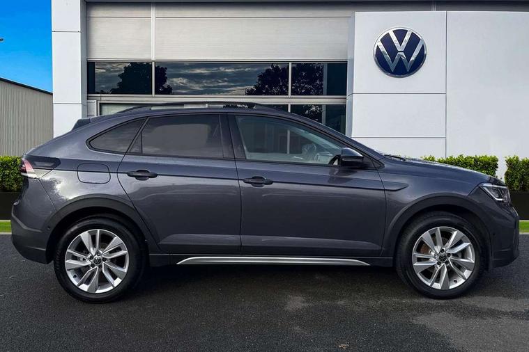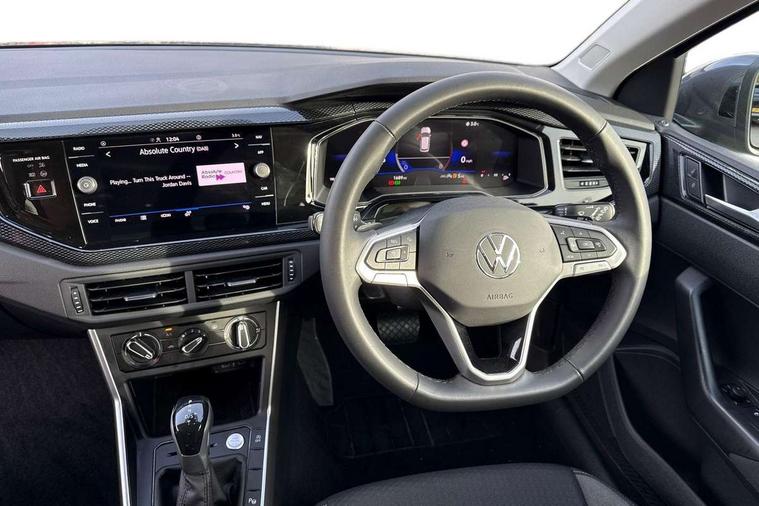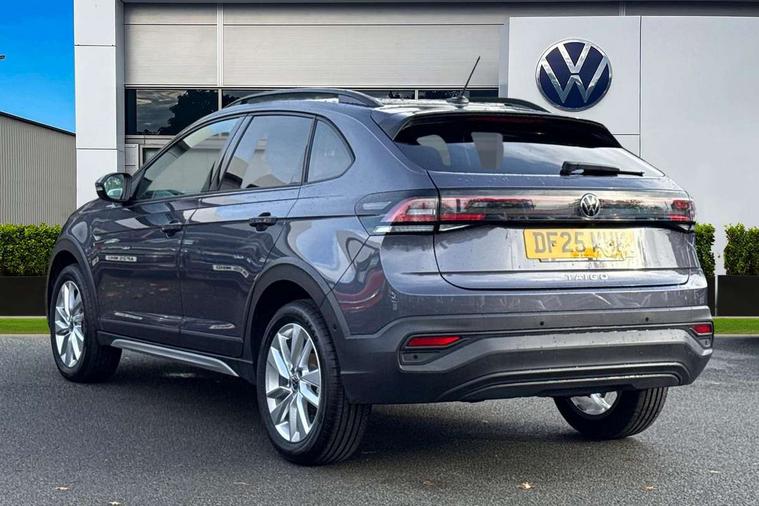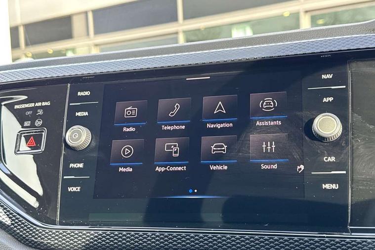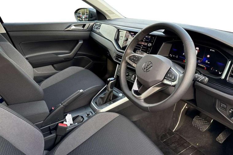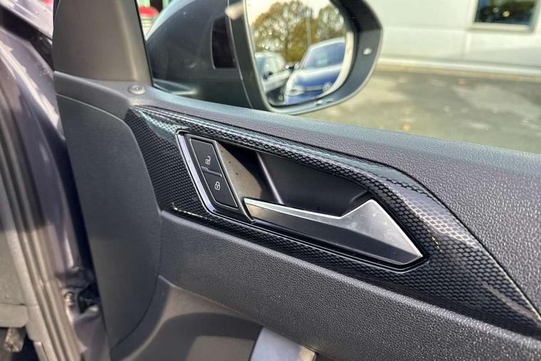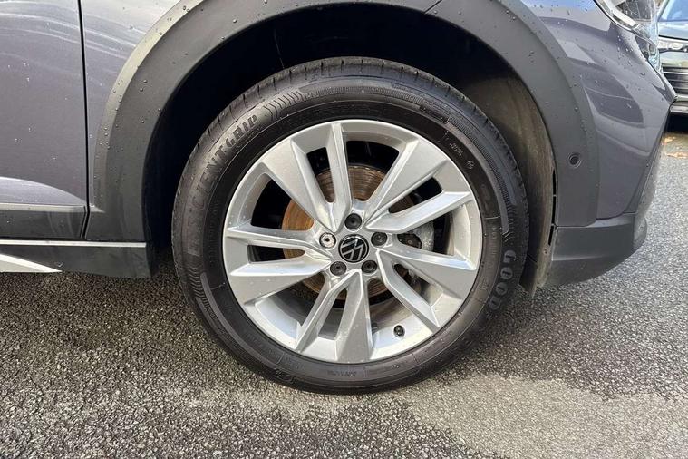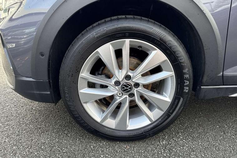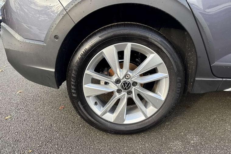 Adaptive cruise control, Advanced driver attention and drowsiness monitor, Dynamic road sign display, e-Call (emergency call), Power Steering, Rear view camera, Travel assist including emergency assist, Washer fluid level indicator, Wireless Charging including Bluetooth, Start-stop system with battery regeneration (recuperation - energy recovery during braking), WeConnect plus, Ambient lighting with logo projection, Aspherical driver's exterior mirror, Body coloured bumpers, Body coloured exterior mirror housings and door handles, Electric windows, External USB type C socket and charging sockets, Heat insulating glass windscreen, LED rear combination lamp, LED third brake light, Left convex exterior mirror, Power folding adjustable/heated exterior mirrors and front passenger exterior mirror lowering function, Rear fog light on one side, reversing light on both sides, Rear side wing doors, Rear wash/wipe with intermittent wipe setting, Side windows in heat-insulating glass, from B-pillar and rear window dark tinted, 'Slash/ Austin' Cloth upholstery, 12V socket in centre console, 2 front reading lights, 3 rear head restraints, 3 seat bench in 2nd row, Black carpets, Ceramique headliner, Child seat anchor for child seat system i-Size, 2x top tether and child seat anchor in front on front passenger side, Door and side trim panels in titan black, Driver and front passenger seat height adjustment, Front centre armrest, Handbrake lever handle in leather, Height and reach adjustable steering wheel, Leather trimmed gear knob, Leather wrapped multifunction steering wheel with paddle shift, Luggage compartment floor, Luggage compartment light, Lumbar support for driver's and front passengers seat, Seat covers in titanium black, Single front passenger seat, Split folding backrest with centre armrest and unsplit rear seat bench, Storage compartment under front seats, Sun visors with illuminated vanity mirrors, Titanium black instrument panel, Chrome Package - Taigo, Drivers assistance package - Taigo, Light and sight pack - Taigo, 2 x 3-point seatbelts/outer rear seats with ECE label, 3-point seat belts in front with pretensioner and height adjustment, 3-point seatbelt for centre rear seat, Driver and front passenger airbag with front passenger airbag deactivation, Driver and front passenger safety-optimised head restraints, Electronic stability control, Extended and predictive pedestrian/ cyclist protection, Front and rear disc brakes, Front curtain and side airbags with center airbag, Hill start assist, Manual rear child locks, Single tone horn, Tyre pressure loss indicator, Anti-theft alarm system with interior monitoring, backup horn, and towing protection, Keyless locking and starting system keyless access with safelock, Black (slush) Dashboard, Lava stone black gloss/matt decorative inserts in dash and front door panels, Low rolling resistance tyres,