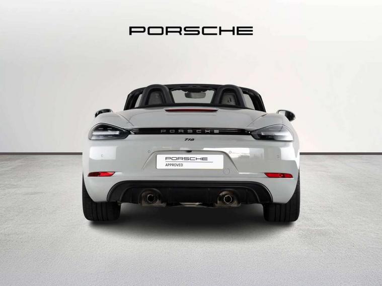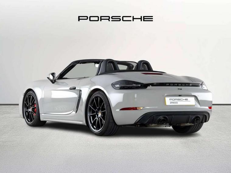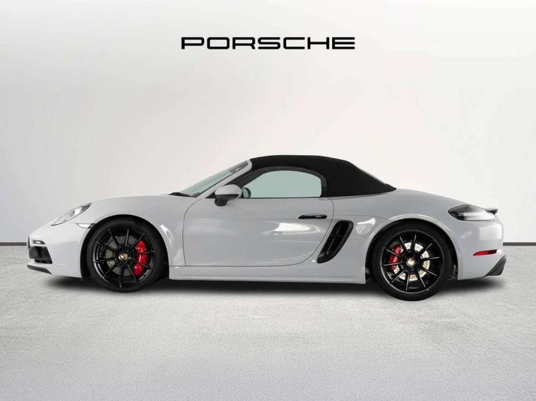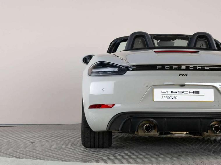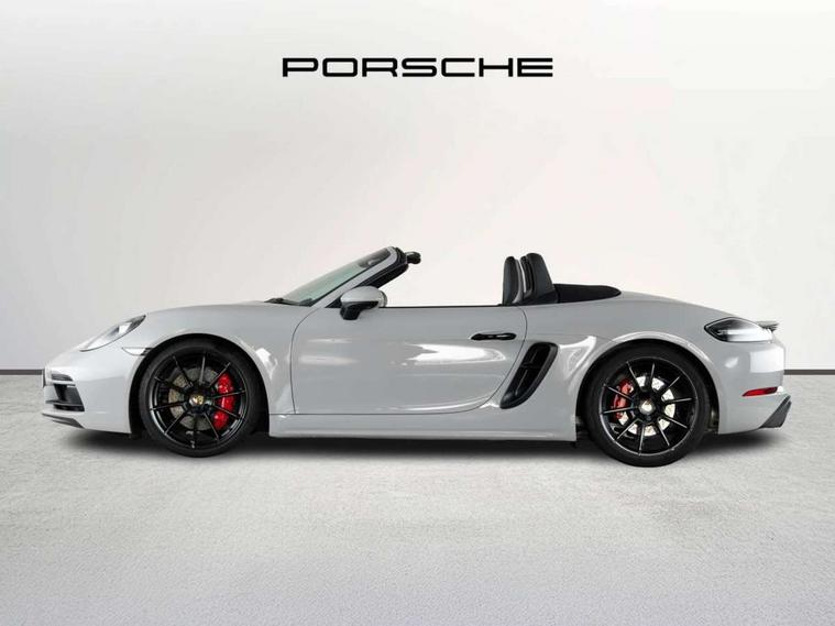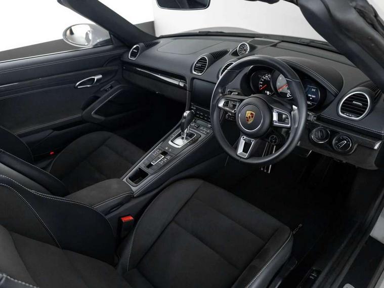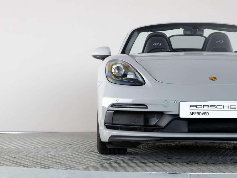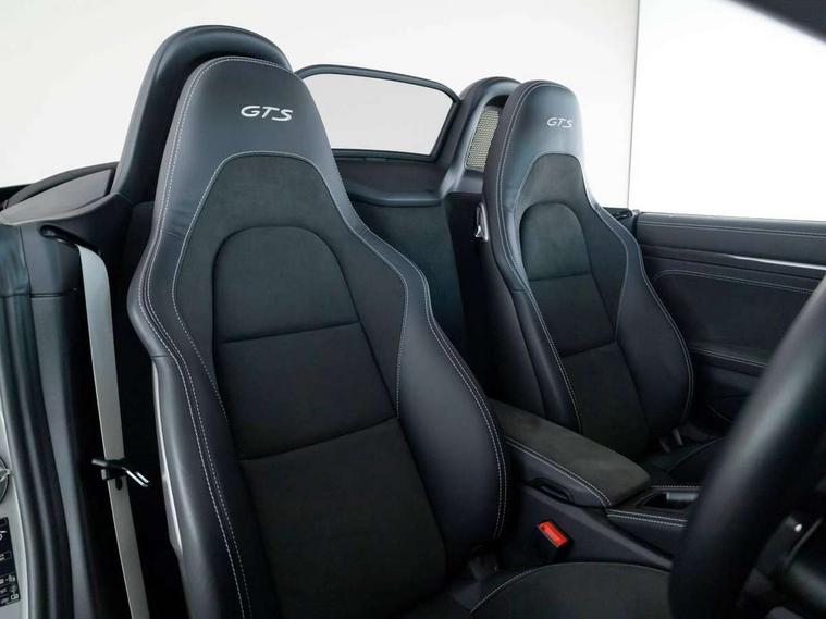 Auto start and stop system, Digital displays for vehicle speed, chosen gear, odometer, trip odometer and clock, eCall emergency call system, Instrument cluster with central rev counter and high-resolution 4.6 inch colour display, Porsche Communication Management (PCM) including online navigation module, mobile phone preparation, audio interfaces and voice control system, 64 litre fuel tank, Aluminium block and cylinder heads, Central cooler, Closed underbody panelling, Direct fuel injection (DFI), Dynamic gearbox mount system, Gasoline particulate filter, Integrated dry-sump lubrication with an on-demand oil pump, Porsche Doppelkupplung (PDK), Porsche Stability Management (PSM) with ABS, advanced brake functions, Porsche TORQUE Vectoring (PTV) with mechanical rear differential lock, Rear wheel drive, Two seater vehicle with mid mounted engine, Two three-way catalytic converters and on-board diagnostics for monitoring emission control system and coated particulate filter, Variable intake manifold with two switchable resonance valves, VarioCam (camshaft control for inlet and exhaust valves) and adaptive cylinder management, Water cooled with thermal management, DAB Digital radio, Integrated 4G/LTE compatible SIM including data for the Porsche Connect Services, Integrated compatible SIM including Porsche Connect Services, Navigation incl porsche + Apple Carplay, connect module, wireless internet access, carfinder, remote vehicle status, remote service and vehicle track, Wifi and music streaming, 3rd brake light, Auto deploying rear wing, Automatic headlight activation including welcome home lighting, Automatically extending rear boot spoiler, Body colour bumpers, Body colour door handles, Electrically adjustable heated exterior mirrors on door waist rails, aspherical on driver's side, Fully automatic fabric hood, electrically operated/heatable rigid glass rear screen, operable approx 31 mph and convenient operation by key remote, Green tinted heat insulating glass, Grey top tinted windscreen, Heated rear windscreen, Intelligent lightweight body in Aluminium/Steel composite construction, LED tail lights and integral 4 point brake lights and reversing lights, Net wind deflector, Power windows with one touch operation and door seal protection, Rain sensor, Rear boot, Separate tinted auxiliary lights in the front end with LED indicators and position lights, Side air intakes with one grille in black, Specifically designed GTS front and rear aprons partially painted in black, Twin tract sports exhaust system with two tailpipe in stainless steel high gloss black, Windscreen washer system with two wiper speeds and washer jets, 12V sockets in passenger footwell and centre console storage compartment, 718 logo on gear lever, Additional smooth finish leather with door panel armrest and centre console main storage compartment, Adjustable fan with air recirculation and defroster functions, Ascending centre console with uncovered storage compartment and closed storage compartment, Clothes hooks on front seat backrests, Footwell illumination, Front and rear luggage compartments, Front headrests, Heated seats, Hood lining in black fabric, LED reading lights, orientation, ignition lock, additionally luggage compartment and glove compartment lighting, Lockable glovebox, Seat centres in race tex, side bolsters, headrests in leather and headrests embroidered with GTS logo in black, Single front passenger seat, Storage compartments in each doors, Two individual cup holders (Passenger side, integrated into dashboard trim strip), Sport chrono package including mode switch - Boxster, 3 point automatic seatbelts, ASR, Electrically controlled parking brake, Front and rear lightweight spring strut axle, Front seatbelt pretensioners + load limiters, Full size driver and passenger airbags, Passenger airbag deactivate switch, Porsche side impact protection doors with thorax airbag in outer backrest side bolster and head airbag for driver/passenger in door panel, Tyre pressure monitoring system, Alarm system with interior surveillance, Anti-theft wheel bolts, Dashcam prep, Engine immobiliser with in key transponder, central locking and remote control, Tyre repair kit, Wheel centres with full colour Porsche crest,