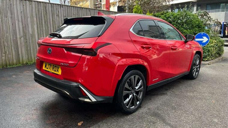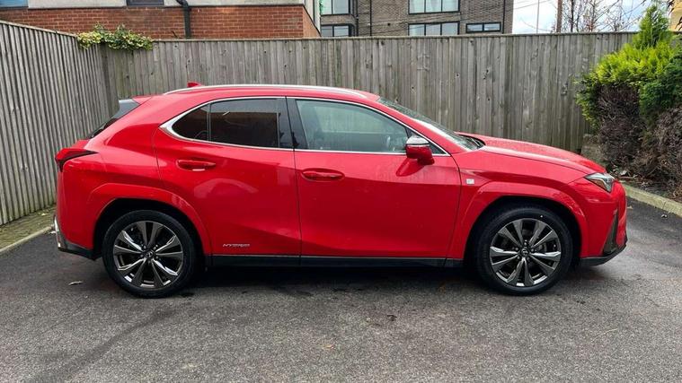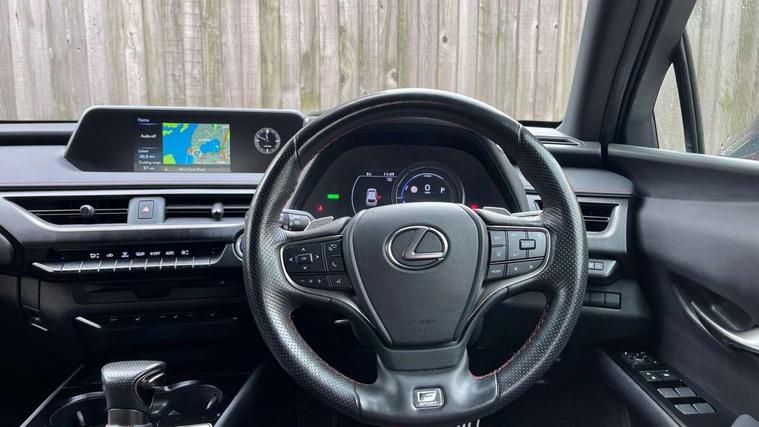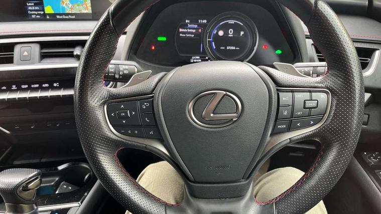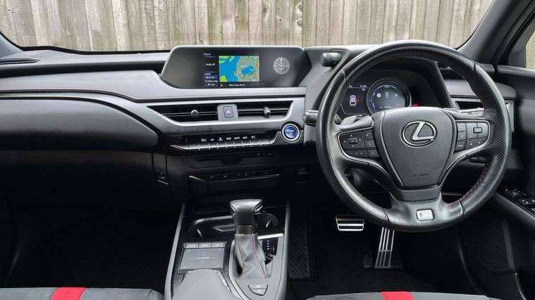 4 driving modes EV/Eco/Normal/Sport, 7" Lexus media display, 8" LFA inspired TFT meters with movable meter ring, Analogue clock with GPS function, Apple car play/Android Auto, Compatible mobile phone bluetooth with audio streaming, E-call, Electric power steering (EPS) with speed sensitive features, Front and rear parking sensor with intelligent clearance sonar, Lane change flasher function, Lexus link connected services, Lexus navigation system, Lexus safety systems + includes dynamic radar cruise control, pre collision system day and night, lane tracing assist, road sign assist, Push button start, Remote touch interface, Reversing camera with back guide lines, Trip computer, F Sport suspension tuning and rear performance dampers, Vehicle Dynamics Integrated Management (VDIM), Vehicle Stability Control (VSC), 2 front USB and 2 rear USB charging points, 6 speakers, AM/FM and DAB radio, AUX socket with VTR compatibility, CD player, Acoustic windscreen, Aero stabilising arch mouldings, Aero stabilising rear lights, Aero ventilated wheels, Aluminium roof rails, Auto dimming interior rear view mirror, Bi-LED (low and high beam) headlights with Auto High Beam (AHB), Black roof drip mouldings, Body adhesive, laser screw welding and laser brazed roof structure, Body coloured bumpers, Colour coded wheel arches, Electric adjustable/heated door mirrors, F SPORT exterior styling consists of black Mesh front grille, enhanced side rockers, metallic coated front bumper and F SPORT badging, Front and rear one touch power windows, with anti-jam protection, Headlight cleaners, LED cornering headlights, LED daytime running lights, LED front and rear fog lights, LED tail lights, LED third brake light, Privacy glass, rear doors and tailgate, Rain sensor windscreen wipers, Rear side wing doors, Rear wiper, Shark fin roof aerial, Single hidden exhaust pipe, Towing preparation, Variable front intermittent wipers, 12V accessory port centre console and luggage compartment, 2 cup holders in the front and rear centre console, 2 way electrical lumbar adjustment for driver, 2 x folding shopping bag hooks in boot, 2 x sun visors with vanity mirror and lamp, 3 seat bench in 2nd row, 4 x tie down hooks in the boot, 5 headrests, 60/40 split folding rear seat, 8 way driver/passenger electrically adjustable front seats, Active sound control, Card holder installed in driver and passengers sun visors, Centre armrest with storage, Driver and passenger door pocket, Dual zone electronic climate control + Nano-E humidity sensor, F Sport aluminium sports pedals, F SPORT dimpled leather gear lever, F SPORT front seat headrest adjustable forwards and backwards, F Sport interior styling, F Sport leather steering wheel with paddle shifts, Fabric/Tahara leather upholstery, Glovebox, Heated front seats, Heated steering wheel, Illuminated entry system, LED interior illumination, Map pockets in the rear of passenger's front seat, Rear air vents with 2 USB chargers, Rear armrest with 2 cupholders, Single passenger seat, Storage tray under audio panel, Textile carpet mats, Tilt/reach adjustable steering column, Under deck storage, Under desk side storage, 2 x Isofix child rear seat restraints, 3x3 point rear seatbelts, Anti-lock braking system (ABS), BAS (Brake Assist System), Driver and front passenger 2 stage airbag, Driver and front passenger knee airbag, Driver/front passenger side airbags, EBD - Electronic brakeforce distribution, ECB (Electronically Controlled Brake System), Electric child locks, Electric parking brake, Front adjustable seatbelt anchor points, Front and rear curtain shield airbags, Front outer seatbelt+pre-tensioners, force limiter+tension reduction: 3-point with active safety link to PCS, Hill start assist control (HAC), Passenger airbag cut-off device, Rear outer seatbelt+pre-tensioners, force limiter+tension reduction: 3-point with active safety link to PCS, Centre belt w/o pre tensioner+force limiter, Secondary Collision Brake (SCB), TRC (Traction Control), Tyre pressure warning, 2 x remote key fobs, Anti theft system : Alarm instruction sensor, glass breakage sensor and engine immobiliser, Locking wheel nuts, Remote central door locking, Speed sensitive auto door locking, Two motion door lock with double lock, VIN Window etching, 18" F Sport alloy wheels with run flat tyres,