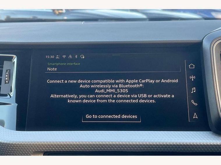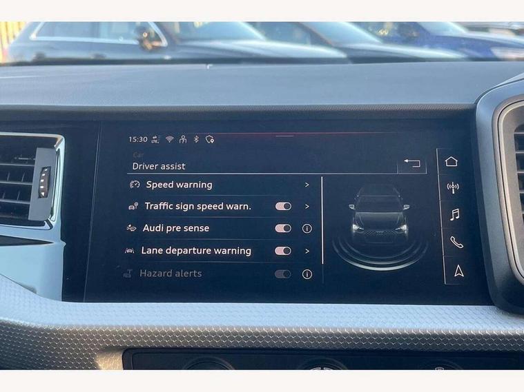 10.25" Digital instrument cluster display classis style instrument dials + speed, odometer, time, outside temperature, telephone menu + fuel level warning, Advanced driver attention and drowsiness monitor, Audi connect emergency call and service, Audi remote connect and control, Audi smartphone interface, Bluetooth interface, Camera based traffic sign recognition, Cruise control, Driver's information system, Electromechanical power steering, Lane departure warning system, Rear parking sensor, Service interval indicator, Speed limiter, Start stop system with recuperation, Voice control system, Washer fluid level indicator, Sports suspension, 2 x USB type C connection points, 6 loudspeakers, DAB Digital radio, MMI radio plus with 10.1" colour MMI display screen and MMI touch, Auto dimming rear view mirror, Body coloured door mirrors, Door sill trims with aluminium inlays and S line logo in front, Electric front and rear windows, Electrically adjustable, heated, folding door mirrors with integrated LED side indicator, Front side air inlets in grained matt black and C frame in anthracite black, Headlight cleaning system, Heat insulating glass windscreen and side windows, Heated rear windscreen, High level LED brake light, LED daytime running lights, LED headlights with range control LED rear lights + dynamic rear indicators, Privacy glass, Radiator grille and rear diffuser in matt anthracite black, Radiator protective grille frame in matt aluminium silver, Rain and light sensors, Rear fog lights, Rear side wing doors, Rear wiper, S line badges on front wings, Side front spoiler lips in grained matt black, 12V socket in centre console with two cup holders, 3 rear seats with headrests, 3 seat bench in 2nd row, 3 spoke leather multi-function plus steering wheel features S badging and grips in perforated leather with contrast stitching, 40:60 Split folding rear seat or fully collapsed, Black cloth headlining, Front and rear velour black floor mats with contrast stitching in fine silver, Front head restraints, Front passenger seat, Height and reach adjustable steering wheel, Interior lighting includes roof module, front and rear reading lights and right luggage compartment lighting, ISOFIX child seat mounting for front passenger and outer rear seats including top tether attachment point of outer rear seats, Leather gear knob with aluminium trim, Leather handbrake grip, Manual air conditioning, Manual height adjustable for driver and front passenger seat, Manually adjustable lumbar support in front seats, Stainless steel pedals, Ambient lighting package - A1, Luggage compartment pack - A1, S line exterior styling pack - A1 Sportback, 3x3 point rear seatbelts, Audi pre-sense front with pedestrain and cyclist recognition, Brake assist function, Driver and front passenger airbag with front side and head airbags, Electronic Stability Control including ABS, EBD, ASR and EDL, Front passenger airbag deactivation switch, Hill hold assist, Manual rear child locks, Seatbelt height adjustment for front seats, Seatbelt monitoring, Tyre pressure loss indicator, Warning triangle and first aid kit, Anti theft alarm, Anti theft wheel bolts, Immobiliser, Remote control key with safelock, Aluminium trim for control switches, air vents and digital instrument cluster, Black dashboard, Silver grey inlays polygon structure in diamond paint finish, Structured grey accent surfaces insert of air vents, interior door handle recesses and centre console in quartz paint finish,