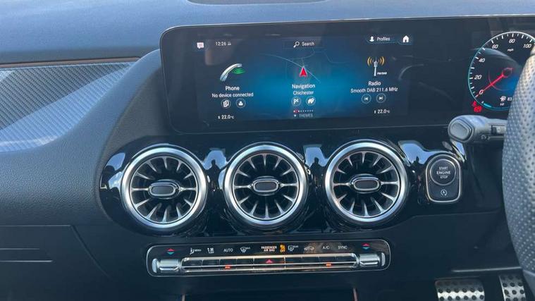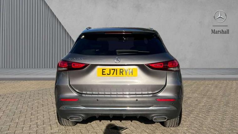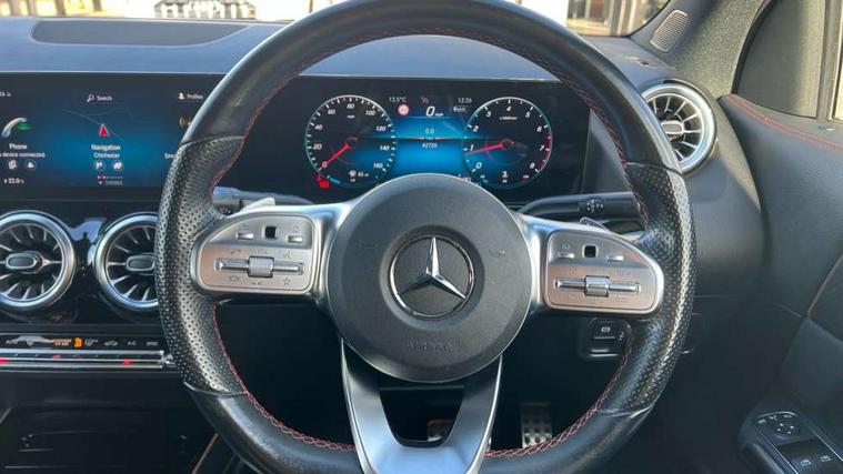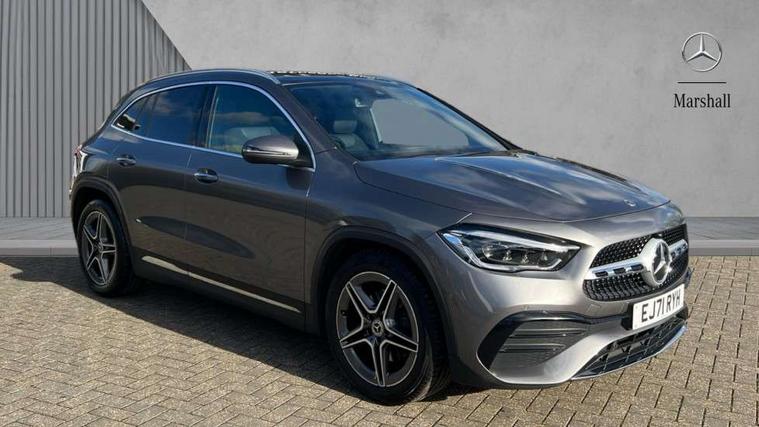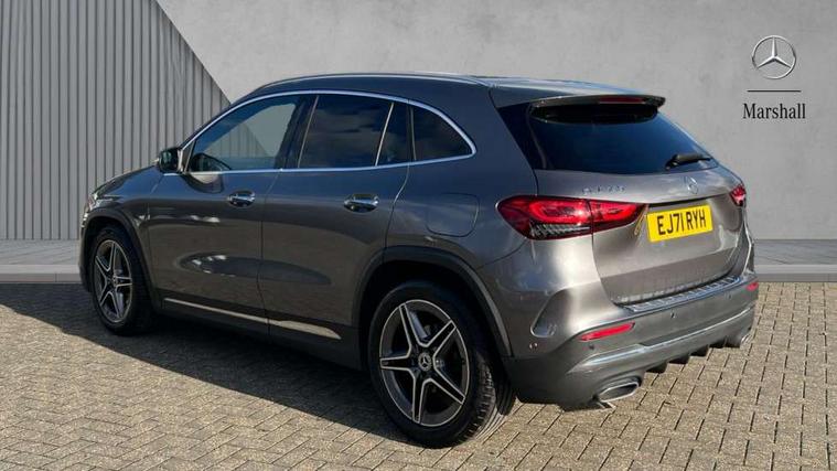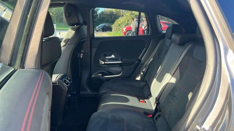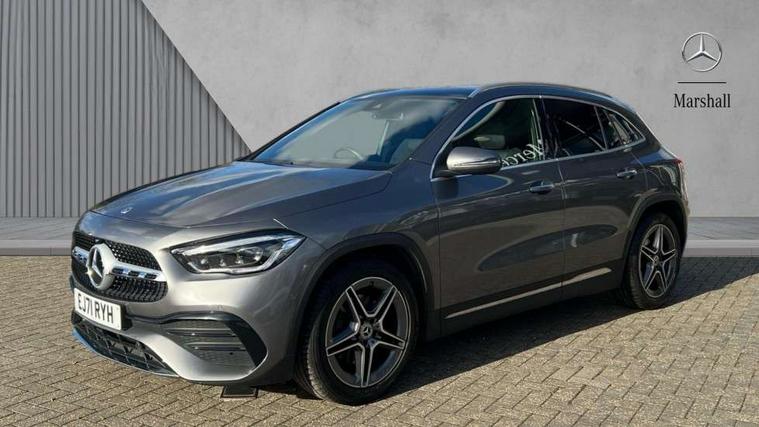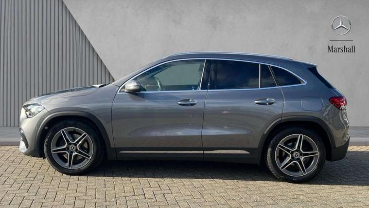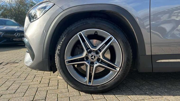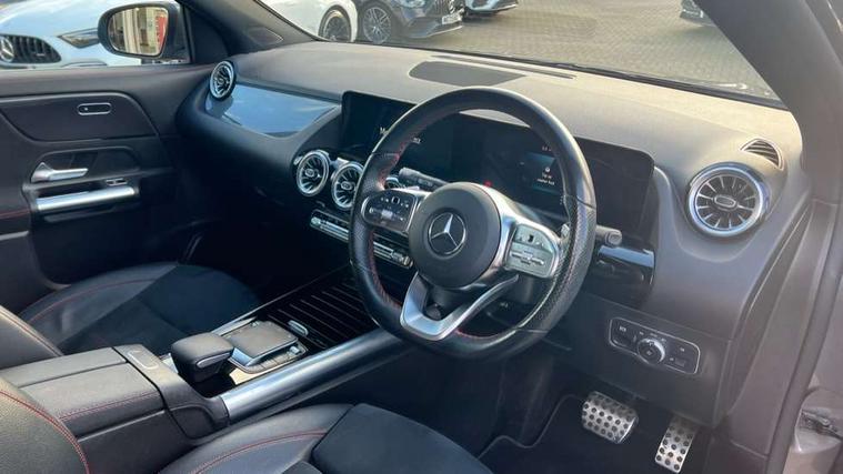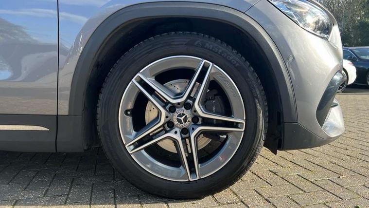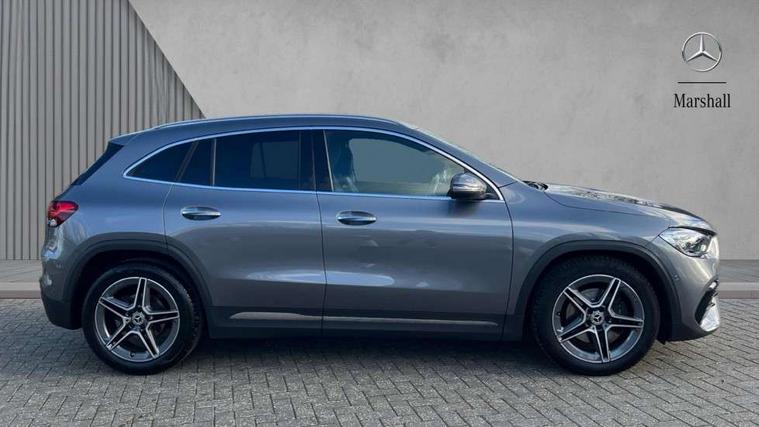10.25 inch touchscreen central media display, 10.25" Digital instrument cluster display screen, Active lane keeping assist, Attention assist, Direct steering, DYNAMIC SELECT with a choice of driving modes (ECO, Comfort, Sport and Individual), ECO start/stop function, Fluid level warning indicator for fuel, oil, coolant and washer fluid, Hard-disk navigation, Hey Mercedes Voice activation, Lamp failure indicator, Mercedes me connect including emergency call system, accident recovery, breakdown management and maintenance, Mercedes me remote services, Multi function trip computer, Outside temperature gauge, Owners manual and service booklet in English, Pre-installation of private car share, Radio aerial integrated into front and rear windshields, Service indicator (ASSYST), Smartphone integration with Apple CarPlay and Android auto, Status display for rear seat belts in instrument cluster, Traffic sign assist, Lowered comfort suspension, Rear axle multi-link, 2 USB ports (type C) in rear stowage compartment and one in front of center console, Bluetooth connectivity including audio streaming, DAB Digital radio, MBUX multimedia system, Media interface, Mercedes-Benz (225w) sound system with 10 speakers, Adaptive brake lights, Aerial for GPS, Aluminium roof rails, AMG front and rear apron, AMG specific/dual flow exhaust pipes in chrome (non-functional), Automatic headlamp activation, Beltline strips and weather strip in chrome, Black grained claddings with chrome parts, Body colour bumpers, Body colour door mirrors, Body coloured door handles with chrome insert for keyless entry, Car wash function, Dark privacy glass from B-pillar backwards, Electric front windows, Electric rear windows, Electrically adjustable and heated door mirrors with integrated LED indicators, Heated glass rear windscreen + timer control, Heated windscreen wash system, Interior mirror with black reading lamps and frameless, LED third brake light, Matt titanium grey front and rear apron trim, Multibeam LED headlamps with adaptive highbeam assist and cornering function, Panoramic sunroof, Pre-installation for trailer coupling, Rain sensor windscreen wipers, Rear fog lights, Roof spoiler, Single lamella raditor grille with chrome dotted diamond grille and inlay, 12V power socket in centre console, 3 spoke multifunction sports steering wheel in nappa leather with flattened bottom and perforated grip area, 40:20:40 split folding rear seats with backrest, Adjustable head restraints, Air conditioning - Two zone thermotronic luxury automatic climate control with display, Ambient lighting in front headrests, AMG floor mats with AMG lettering in front, Artico man-made leather/Microfibre Dinamica upholstery with red contrast stitching, Auto Mercedes-Benz child seat recognition sensor, Black roof lining, Brushed door pulls in silver chrome, Courtesy light in boot, Front centre armrest with stowage, Galvanished gear shift paddles on steering wheel, Heated front seats, illuminated door sills with changeable cover, Illuminated glovebox, Interior lighting - 64 colour Ambient lighting, Leather trimmed gearknob, Luggage net on driver/front passenger seat backrest, Manually height and reach adjustable steering column, Multi-gesture touchpad control on center console, Sports pedals in brushed stainless steel with black rubber studs, Sports seats, Stowage compartment in centre console, Stowage compartment with retractable cover, Sunvisors with illuminated vanity mirrors, Twin front cup holders, Two outer rear seat isofix and top tether child seat fixing points, AMG body styling pack - GLA, Comfort seat pack - GLA Class, Interior lighting with light and sight pack - GLA, Load compartment pack - GLA, Mirror pack - GLA Class, Parking pack - GLA, 3 rear 3 point seatbelts, ABS with Brake Assist, Active bonnet pedestrain safety measure which detects an impact and raises bonnet by 65mm, Active brake assist includes forward collision warning system with autonomous braking, Adaptive brake assist with hold function and hill start assist, Bonnet with power domes, Brake pad wear warning indicator, Childproof locks manually operated for rear doors and electrically operated for rear power windows, Crash responsive emergency lighting, Driver and passenger head and side airbags, Drivers knee airbag, Dual stage driver/passenger airbags, Electronic parking brake, ESP curve dynamic assist, ESP with ASR, Front and rear seatbelt reminder, Front brake callipers with Mercedes Benz logo lettering on front, Front passenger seat occupancy sensor, Internally ventilated brakes with perforated brake discs at the front, Tyre pressure monitoring system, Warning triangle and first aid kit, Window airbags, Alarm system with immobiliser and interior protection -Thatcham category 1, Keyless Go starting function, Remote central locking and crash sensor with emergency opening function, Urban guard vehicle protection, Vehicle key with decorative surround in chrome, Carbon structure trim, Chrome air vent surrounds, 19" AMG 5 twin spoke light alloy wheels aerodynamically optimised painted in tantalite grey with a high sheen finish, Summer tyres, Tirefit tyre sealant kit,