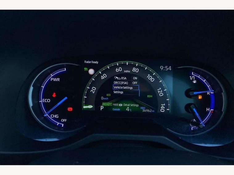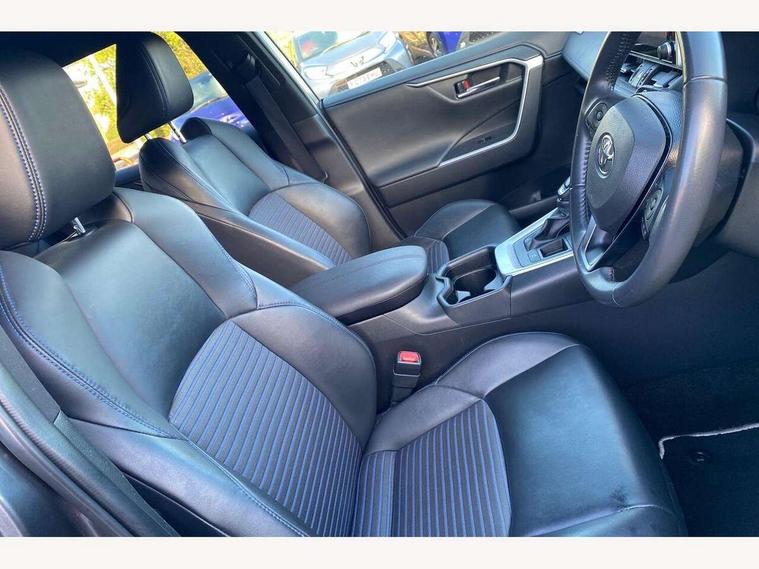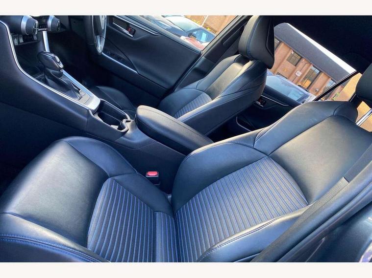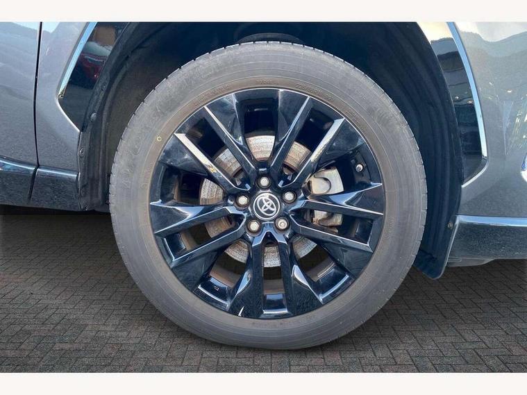 7" TFT multi information display, Analog tachometer, Apple car play and Android auto, Blind spot monitoring with rear cross traffic alert, Bluetooth system, Cyclist Detection, Drive mode selector, eCall emergency call system, ECO-driving indicator, Electric power steering, EV audible alert, Front parking sensors, Full range intelligent adaptive cruise control, Hybrid system indicator, Lane departure warning system, Lane trace assist, Lights on warning, Memory on adjustable speed limiter, My T Connected services, Night Time Pedestrian Detection, Power boot opening and closing, Push button start, Rear parking camera, Rear parking sensors, Remote boot door release in cabin, Remote boot door release in key, Road sign assist - RSA, Touch 2 Go navigation system including 3D maps and voice control, Traffic sign recognition, Trip computer, Voice control system, Vehicle Stability Control (VSC), 6 speakers, 8" Multimedia display touch screen, Auxiliary socket for external MP3 player, DAB audio, Toyota touch media system, USB connection, Adaptive automatic high beam, Automatic headlamp levelling, Automatic headlights, Automatic wipers, Automatically retractable door mirrors, Black rear spoiler, Black roof rails, Black Shark-fin antenna, Body colour door handles, Door mirror puddle lights, Dual exhaust pipes, Electric adjustable door mirrors, Electrochromatic rear view mirror, Emergency brake-light signal (EBS), Follow me home headlights, Front fog lights, Glass black protection moulding on side doors, Gloss black door mirrors, Gloss black front and rear bumper, Heated door mirrors, LED daytime running lights, LED High mounted stop lamp, LED rear combination lights, Meshed upper front grille, Power front windows, Power rear windows, Privacy glass, Projector LED headlights, Rear screen wiper - intermittent, Rear windscreen defogger, Silver front under-run, Silver rear under-run, Trailer sway control, Turning signal integrated indicators in door mirrors, 3 rear headrests, 60/40 split fold rear seat back, Black roof lining, Boot light, Clean air filter, Driver and front passenger personal light, Driver and front passenger Whiplash Injury Lessening seats, Driver and passenger sunvisors with illuminated vanity mirrors, Dual sided deck board in boot, Dual zone automatic air conditioning, Dynamic sports seats, Floor mats, Folding rear centre armrest, Front and rear bottle holders, Front centre armrest, Front footwell lights, Front headrests, Front seat and rear pockets, Front/rear roof mounted assist grips, Heated driver and front passenger seats, Illuminated entry system, Isofix child seat preparation, Leather gear shift with chrome surround, Light blue ambient lighting on front cupholders and open tray, Manual telescopic and tilt 3-spoke leather steering wheel with Chrome insert, Manually reclining and sliding front passenger seat, Multimedia switches on steering wheel, Pollen filter, Power height-adjustable sliding reclining and lumbar support for driver seat, Rear coat hooks, Rear door armrests, Rear passenger air vents, Rear view display in display audio screen with dynamic guide lines, Reclining rear seats, Satin chrome interior door handles, Sunglasses holder, Synthetic leather upholstery, Telephone and voice recognition switches on steering wheel, 3x3 point rear seatbelts, ABS/EBD, Acoustic vehicle alerting system, Adjustable front driver and passenger seat belt extender, Brake assist function, Brake hold function, Child proof door locks, Collision mitigation braking system, Driver/Front Passenger airbags, Driver/front passenger side airbags, Drivers knee airbag, Electronic parking brake, Electronic Stability Programme (ESP), Front and rear curtain airbags, Front and rear seatbelt reminder, Front passenger airbag detector, Hill start assist, Passenger airbag cut-off device, Pedestrian detection, Pre collision system, Seatbelt pretensioners with load limiters, Toyota safety sense, Traction control, Tyre pressure warning, Glass-breaking alarm sensors, Immobiliser, Intrusion alarm, Light - on and Key in reminder, Motion sensor alarm, Remote central locking, Smart entry + Smart start, Speed sensitive auto door locking, Tilt detection sensors, Piano black centre console with silver insert, Soft-touch black lower dashboard, Soft-touch black upper dashboard with silver insert, 19" 5 Spoke black alloy wheels, Tyre repair kit,