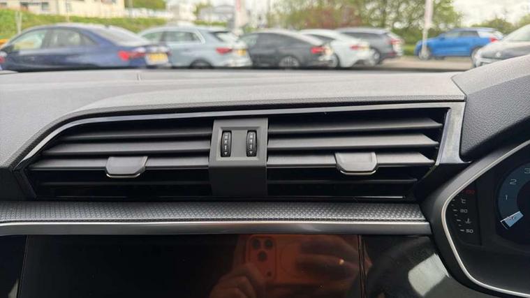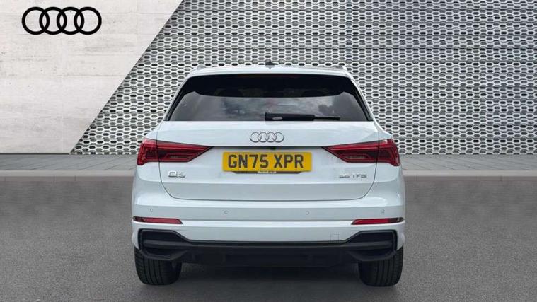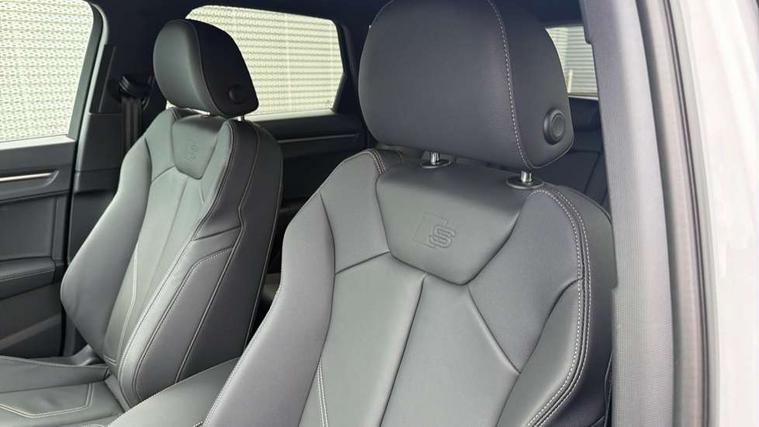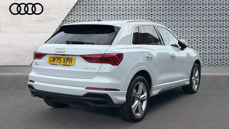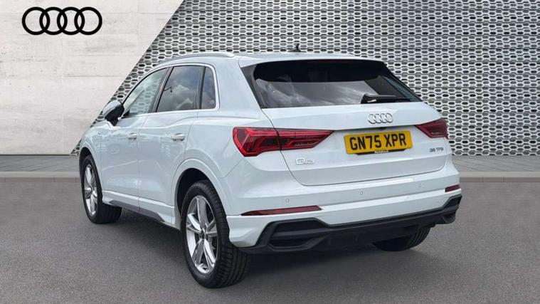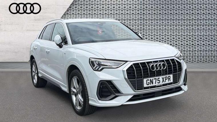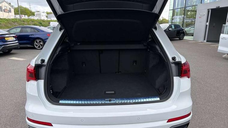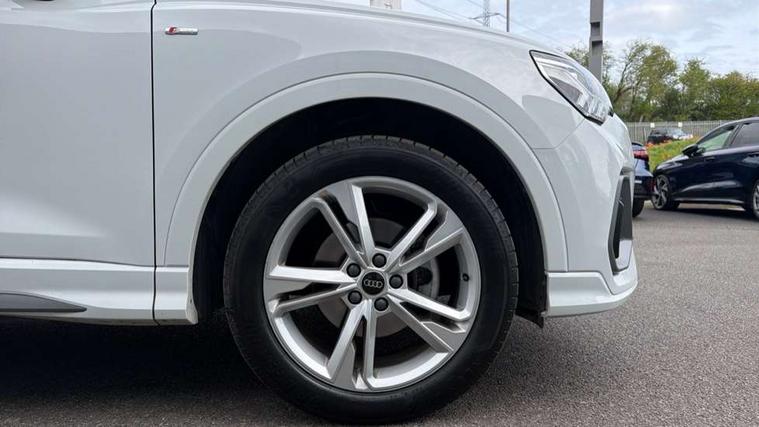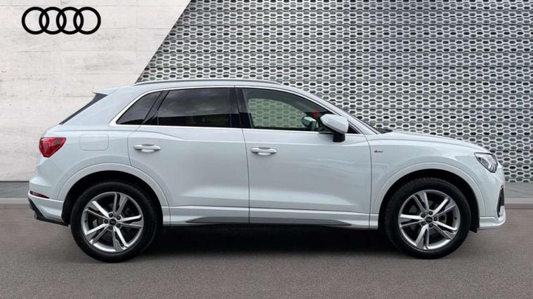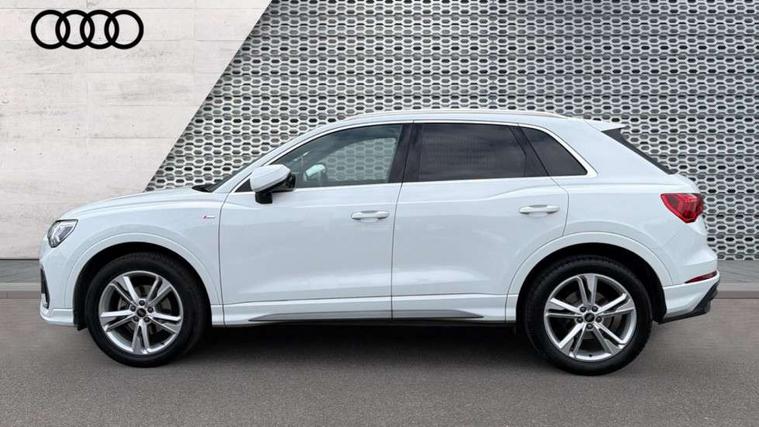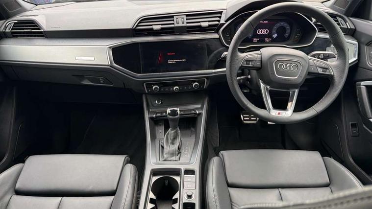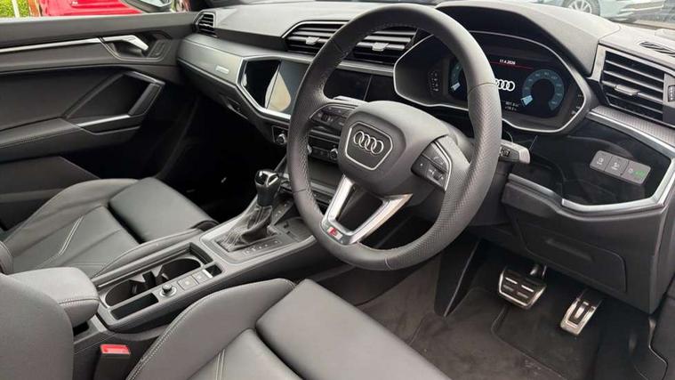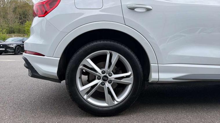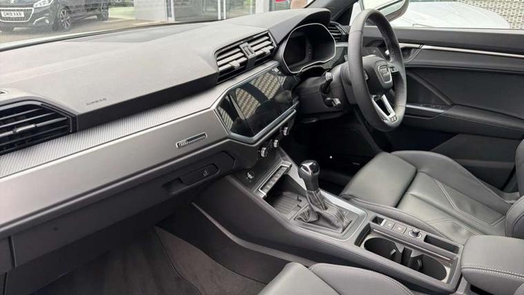 Amazon alexa Integration, Audi connect safety and service, Audi drive select, Audi lane departure warning, Audi Virtual Cockpit - 10.25" display, Bluetooth interface, Camera based traffic sign recognition, Distraction and Fatigue warning, Legal emergency call, MMI Navigation Plus with high resolution 10.1 inch touchscreen colour display, Power operated tailgate, Progressive steering, Service interval indicator, Smartphone interface includes wireless Apple carplay/Android Auto, Start stop system with recuperation, Voice control system with natural language interaction, Sports suspension, 2 USB-C ports with charge and data functions, 6 passive loudspeakers, DAB digital radio module, Acoustic windscreen, Aluminium roof rails, Aluminium window trim, Anthracite black radiator grille, Auto dimming door mirrors, Auto dimming frameless rear view mirror, Body colour front spoiler blade, Electrically folding, adjustable and heated door mirrors with integrated LED side indicators and kerb view function for passenger side, Front and rear electric windows, Front fog lights, Front side air inlets in matt platinum grey, Grille vertical bars in aluminium silver/Matt, High gloss black finish B and C pillars, LED Dynamic rear indicators, LED headlights with LED daytime running lights, LED rear lights, LED third brake light, Privacy glass dark tinted rear and rear-side windows (from B-pillar backwards), Rain and light sensors, Rear diffuser grille in grained matt black, Rear diffuser strip in matt anthracite black, Rear side wing doors, Rear wiper, S line badges on front wings, S Line front and rear bumpers and side skirts, Side skirt insert in matt Platinium grey, Variable front intermittent wipers, 12V socket in rear centre console, 3 seat bench in 2nd row, 3 spoke leather multifunction steering wheel features S badging and grips in perforated leather with contrast stitching, 40:20:40 folding with manual adjustment for 60:40 forwards/backwards position and backrest angle, Adjustable rear seat bench/backrest with centre armrest and cupholder, Black carpet mats, Black cloth headlining, Dual zone electronic climate control, Electric lumbar support, Front and rear black floor mats with contrast stitching in rock grey, Front and rear headrests, Front centre armrest, Height and reach adjustable steering wheel, Horizontal trim strip in matt platinum grey, Illuminated door sill trims with S logo, ISOFIX child seat mounting for front passenger with airbag deactivation and outer rear seat including top tether attachment point for outer rear seats, Luggage compartment sill protection in stainless steel, Manual front seats with height adjustment, Perforated leather gearknob, Single front passenger seat, Stainless steel pedals, Twin leather upholstery with front sport seats + S embossing, Non smoking pack - Q3, 3x3 point rear seatbelts, 6 airbags - Driver, front passenger, curtain and side windows, Audi pre-sense front with pedestrain and cyclist recognition, Electrically operated child locks on rear doors, Electromechanical parking brake, Electronic stabilisation control including ABS, ASR and EDL, Front seatbelt reminder, Hill descent control, Hill hold assist, Pre sense basic, Seatbelt monitoring, Tyre pressure warning, Warning triangle and first aid kit, Anti theft wheel bolts, Immobiliser, Remote central locking, Thatcham approved category 1 anti theft alarm, Aluminium look interior elements, Dark matt brushed aluminium inlay, Detail dashboard around MMI touch colour display in glass look, black with surround in aluminium look, Leatherette door armrest,