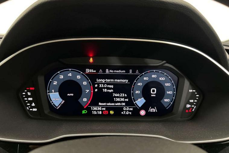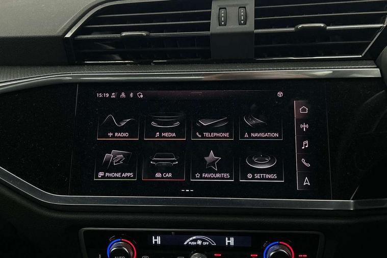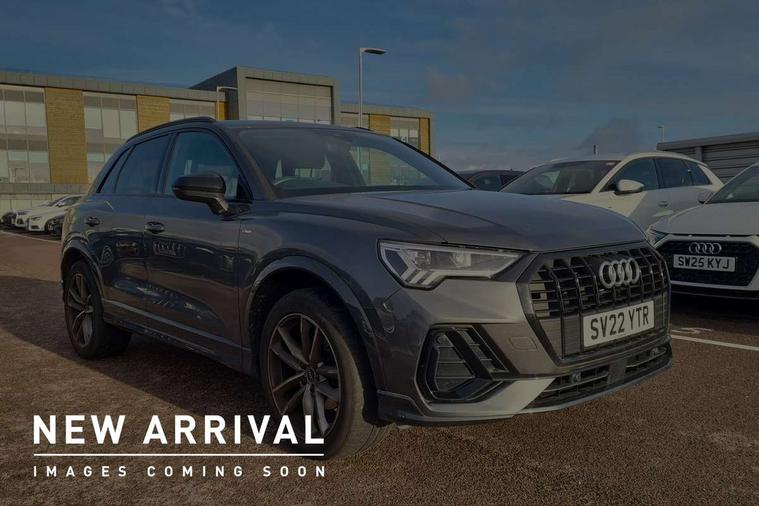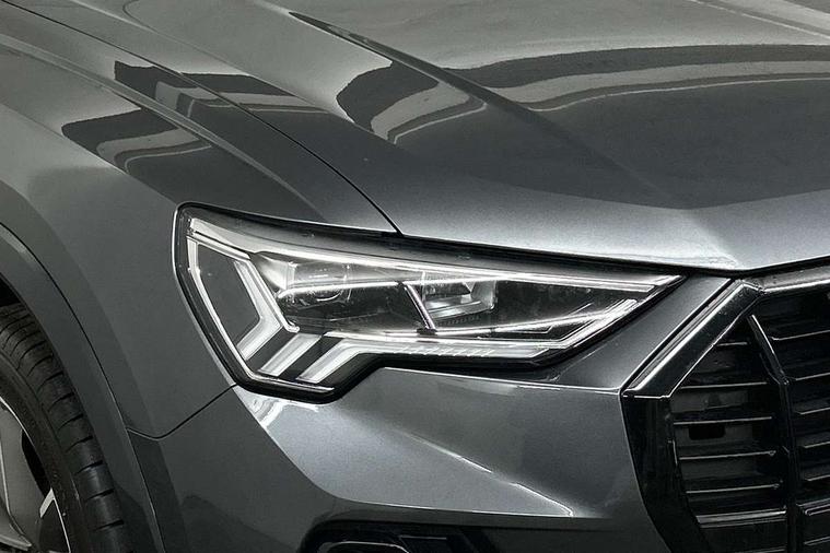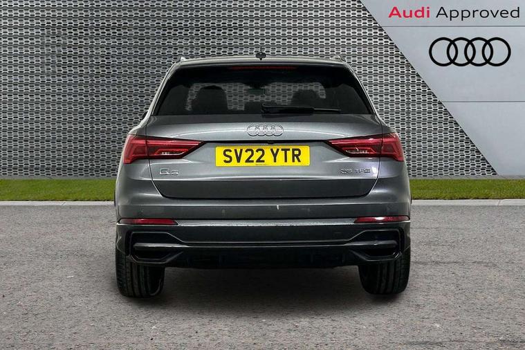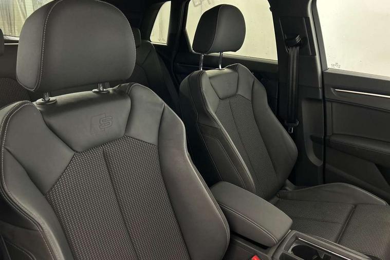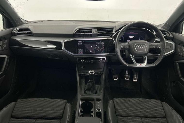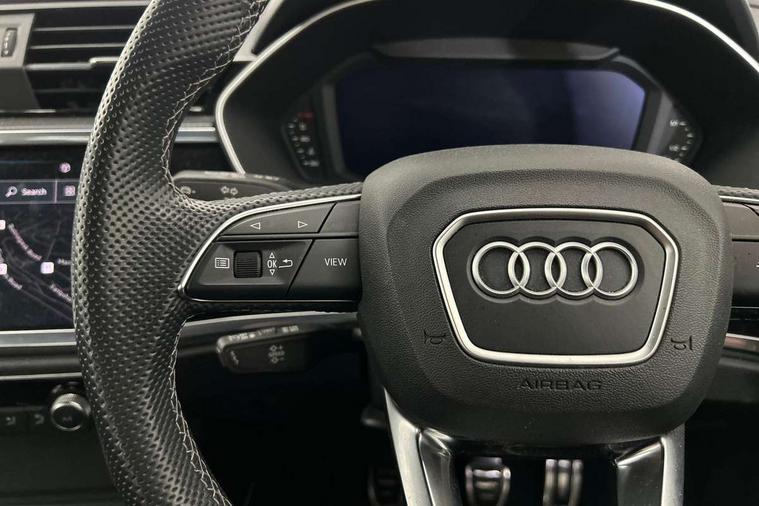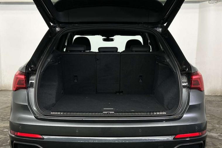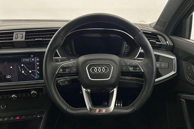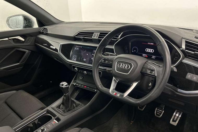 Amazon alexa Integration, Audi connect safety and service (e-call), Audi drive select, Audi lane departure warning, Audi Virtual Cockpit - 10.25" display, Bluetooth interface, Camera based traffic sign recognition, Cruise control + speed limiter, MMI Navigation Plus with high resolution 10.1 inch touchscreen colour display, Power operated tailgate, Progressive steering, Rear parking sensors, Service interval indicator, Smartphone interface includes wireless Apple carplay/Android Auto, Start stop system with recuperation, Voice control system with natural language interaction, Sports suspension, 2 USB-C ports with charge and data functions, 6 passive loudspeakers, DAB digital radio module, Acoustic windscreen, Auto dimming frameless rear view mirror, Black roof rails, Electrically folding, adjustable and heated door mirrors with integrated LED side indicators and kerb view function for passenger side, Front and rear electric windows, Front fog lights, Grille vertical bars in aluminium silver/Matt, High gloss black finish B and C pillars, LED headlights with LED daytime running lights, LED rear lights, LED third brake light, Privacy glass dark tinted rear and rear-side windows (from B-pillar backwards), Rain and light sensors, Rear diffuser strip in matt titanium black, Rear side wing doors, Rear wiper, S line bumpers in contrasting Manhattan grey, Variable front intermittent wipers, 12V socket in rear centre console, 3 seat bench in 2nd row, 3 spoke flat bottomed multi-function leather sport steering wheel, 40:20:40 folding with manual adjustment for 60:40 forwards/backwards position and backrest angle, Adjustable rear seat bench/backrest with centre armrest and cupholder, Black cloth headlining, Dual zone electronic climate control, Front and rear black floor mats with contrast stitching in rock grey, Front and rear headrests, Front and rear roof module including reading lights, Front centre armrest, Glove compartment lighting, Height and reach adjustable steering wheel, Illuminated door sill trims with S logo, ISOFIX child seat mounting for front passenger with airbag deactivation and outer rear seat including top tether attachment point for outer rear seats, Luggage compartment light, Manual front seats with height adjustment, Perforated leather gearknob, Single front passenger seat, Stainless steel luggage compartment sill finisher, Stainless steel pedals, Black styling pack - Q3, Non smoking pack - Q3, 3x3 point rear seatbelts, 6 airbags - Driver, front passenger, curtain and side windows, Audi pre-sense front with pedestrain and cyclist recognition, Electromechanical parking brake, Electronic stabilisation control including ABS, ASR and EDL, Front seatbelt reminder, Hill descent control, Hill hold assist, Manual child lock in rear doors, Pre sense basic, Seatbelt monitoring, Tyre pressure warning, Warning triangle and first aid kit, Anti theft alarm, Anti theft wheel bolts, Immobiliser, Remote central locking, Detail dashboard around MMI touch colour display in glass look, black with surround in aluminium look, Leatherette door armrest, Piano black inlay,
