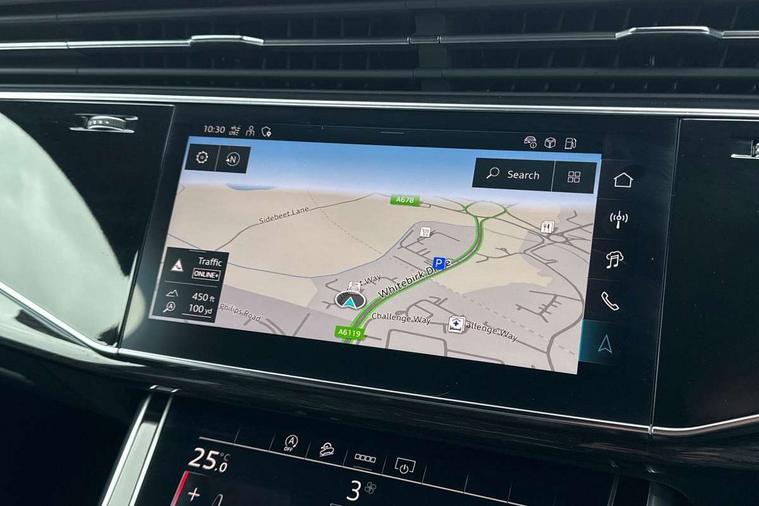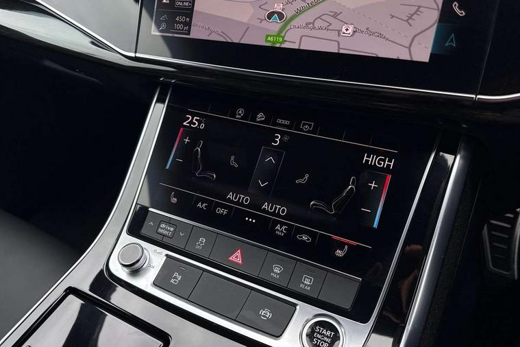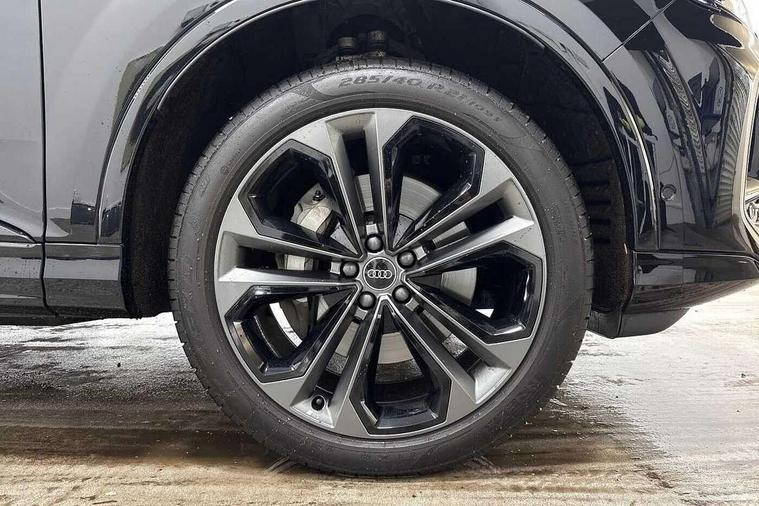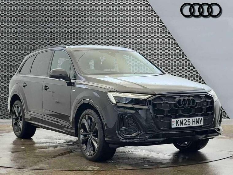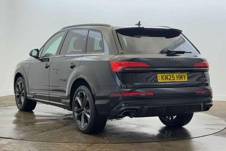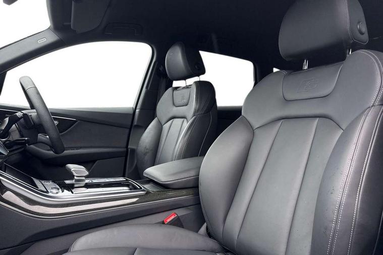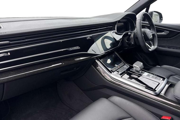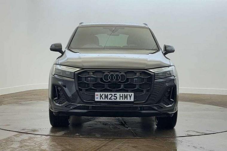 Audi connect safety and service (e-call), Audi connect with Amazon Alexa Integration, Audi drive select (Auto, Comfort, Dynamic, Efficiency, Individual, Off-road and All road), Audi phone box light with wireless charging, Audi virtual cockpit - 12.3" high-resolution LCD display with fully customisable instrument cluster, Bluetooth interface, Camera based traffic sign recognition, Electromechanical power steering, MMI navigation plus with MMI touch screens includes 10.1" and 8.6" screens with haptic feedback, Natural voice recognition, Operating buttons in Matte black, Parking system plus with 360 degree display (front, rear and side sensors) - acoustic and visual park assist system, Power operated tailgate, Rear view camera, Smartphone interface includes wireless Apple carplay/Android Auto, Start/stop system, 48V Mild hybrid technology, Adaptive air sports suspension, Quattro all wheel drive with self locking centre differential, Audi music interface - front 2 USB-C ports with charger and data functions, Audi sound system with 6 channel amplifier, 180 watt amplifying capacity and 10 loudspeakers including subwoofer, DAB digital radio module, Audi Beam uses LEDs to project S emblem with red rhombus onto the ground when opening the side doors (front/rear), Auto dimming frameless rear view mirror, Black exhausts, Black roof rails, Electrically adj heated/folding + automatically dimming exterior mirrors with memory + automatic kerb side function for passenger side exterior mirror, Heat insulating glass in windshield, Integrated LED indications in door mirrors, LED 3rd brake light, LED daytime running lights, LED rear tail lights, Loading edge protection in stainless steel, Matrix LED headlights with dynamic front and rear indicators, Privacy glass - dark tinted rear and rear side windows from B-pillar backwards, Rear side wing doors, Rear wiper, 2 seat bench in 3rd row, 2 zone automatic climate control, 3 seat bench in 2nd row, 7 seat layout with ISOFIX points for the front passenger seat and rear passenger seat, Black cloth headlining, Comfort front centre armrest, Electric adjustable front seat with 4 way lumbar support, driver memory functionality, Folding rear seats, Front head restraints, Front/rear floor mats, Heated front seats, Illuminated door sill trims with S logo, ISOFIX child seat mounting for front passenger seat and 2 outer rear seats with top tether child seat mounting for all 3 rear seats, LED interior ambient lighting, Luggage compartment cover, Luggage compartment sill protection in stainless steel, Rear head restraints, Single front passenger seat, Stainless steel pedals, Sunvisors with illuminated vanity mirrors, Black styling pack plus - Q7, 3 point seatbelts on all rear seats, Audi pre sense front, Child locks on rear doors, Convenience key with safelock and gesture tailgate, Driver and front passenger, front side and curtain airbags, Electromechanical parking brake, Electronic Stabilisation Control (ESC) including ABS, ASR and EDL, Extended pedestrian protection measures, Hill hold assist, Seatbelt reminder, Tyre pressure loss indicator, Warning triangle and first aid kit, Anti theft alarm with tow away protection, Anti-theft wheel bolts and wheel loosening detection, Keyless Go, Remote central locking, Polished oak trim with grey finish inlay, Tool kit, Tyre repair kit,