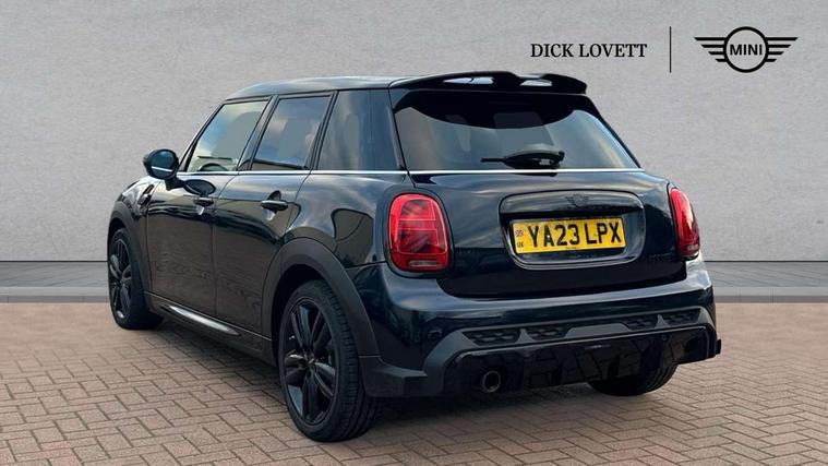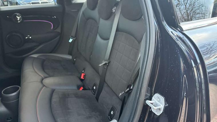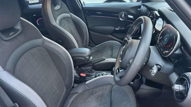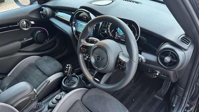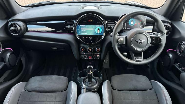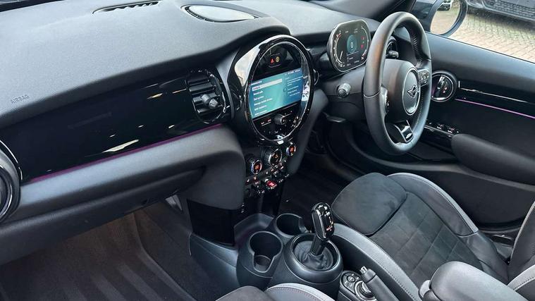 Apple CarPlay, Automatic start/stop function with brake energy recuperation, Compatible mobile phone bluetooth with audio streaming, Electro-mechanical speed dependant steering assistance, Flexible car sharing preparation, MINI Driving Modes - centre toggle switch to control driving setting (sport, mid and green), Mini E-call, MINI TeleServices, On board computer, Rear park distance control, Service interval indicator, Adaptive suspension, Double Vanos system, Fully variable valve control, Gear change indicator display, High precision injection, Performance Control, Steptronic transmission with double clutch, 8.8" touchscreen with LED ring, FM tuner and DAB digital radio, 3rd brake light, Automatic headlight activation switch, Body colour fuel filler cap, Chrome border high gloss black slats radiator grille, Dynamic brake lights, Electric front+rear windows, Exhaust tailpipe on left with chrome finisher, Heated rear window, Heated windscreen washer jets, JCW Aerodynamic kit - Front and rear bumpers with sporty JCW styling and part-painted side sills with MINI John Cooper Works door sill finishers, John Cooper Works rear spoiler, Metal door sill strips with MINI imprint, Model logo Cooper on right of tailgate, Rain sensor window wipers, Rear fog lights, Rear LED lights with union jack design, Rear side wing doors, Rear window wiper, Side scuttle panel with integrated indicator, Sun/heat protection glass, White indicator lenses, 12V Accessory socket in centre console, 3 seat bench in 2nd row, 4 lashing eyes in luggage compartment, 60/40 split folding rear seat, Anthracite headliner including grab handles and clothes hooks, Carbon black colour line - Knee roll and door armrest, Chrome interior highlights, Cupholders, Front and rear isofix with front passenger airbag deactivation, Front and rear velour floor mats, Glove compartment, Height and length steering column adjustment, Interior lighting with 12 different colours across the dashboard, underneath door bezel with illuminated laser-engraved design on central display, JCW Sport seats with integrated headrests, adjustable thigh support and John Cooper Works logo, Leatherette gearshift lever and handbrake gaiters, LED reading lights, vanity mirror lights, front foot well light and spotlight on front seats, Mechanical seat adjustment - forward/back & backrest for front seats and driver seat height adjust, Multifunction steering wheel, Single front passenger seat, Storage compartments in doors, Sunvisors with vanity mirrors, Walknappa leather steering wheel with grey seam and John Cooper Works badge on Piano Black lower steering wheel spoke, Piano black exterior pack - Mini Hatchback Cooper, 3 point seatbelts on all five seats, 6 Airbags - front, side, head and seat belt tensioners, Anti-lock braking system (ABS), Child locks on rear doors, DSC - Dynamic Stability Control, Front and rear disc brakes, Hill start assist, Single tone fanfare horn, Tyre pressure monitoring system, Alarm system with tilt sensor, monitoring doors, bonnet interior and tailgate, Electronic vehicle immobiliser, Start/stop toggle with keyless go, Piano black interior trim, Tool kit,