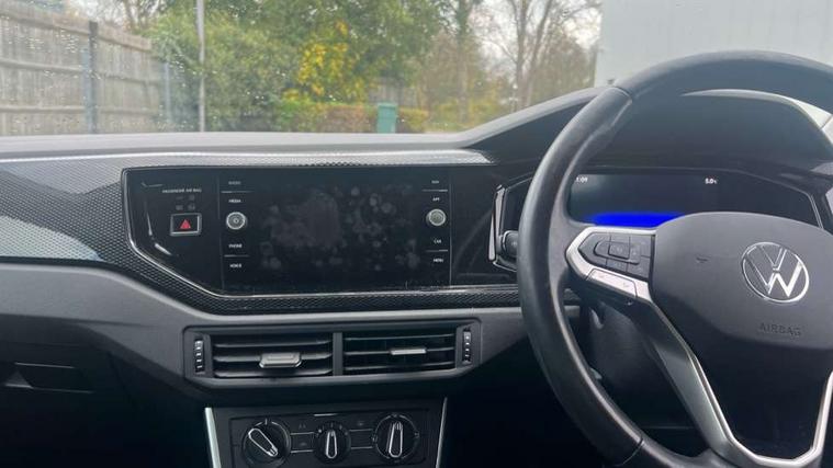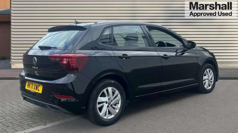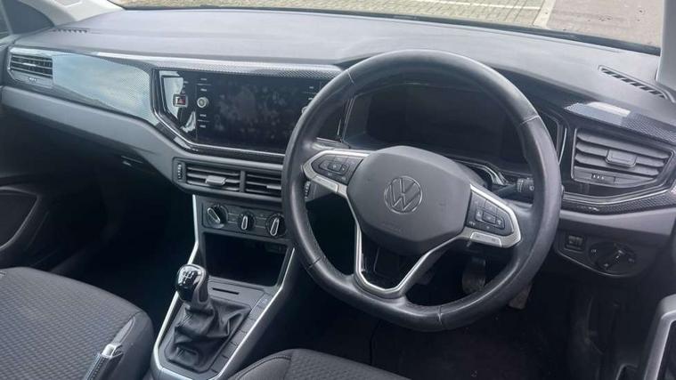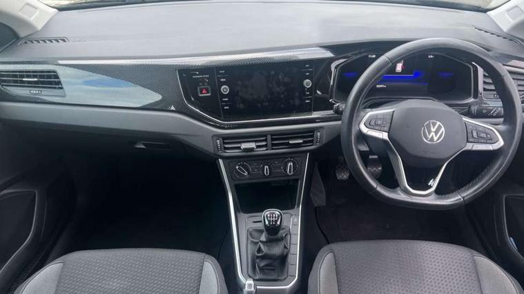 Adaptive cruise control without follow-to-stop and speed limiter, Bluetooth mobile phone interface, Driver alert system, Emergency call service, Front assist system, Power assisted speed sensitive steering, Preparation for We connect and We connect plus, Speedo and rev counter, electronic odometer, trip, service interval display and fuel gauge, Standard rear axle, Travel Assist - Lane keeping system and traffic jam assist, Travel assist including emergency assist, Trip computer, Warning signal and warning light for front and rear seatbelts not fastened, Washer fluid level indicator, Wireless app connect, Front wheel drive, Rear shock absorpion, Start-stop system with battery regeneration (recuperation - energy recovery during braking), DAB Digital radio, Diversity antenna for FM reception, Automatic dimming interior rear view mirror, Body colour bumpers, Body colour door handles, Body colour door mirrors, Electric front windows, Heat insulating darkened glass in side and rear windows, Heat insulating glass windscreen, Power folding adjustable/heated exterior mirrors and front passenger exterior mirror lowering function, Rain sensor, Rear electric windows, Rear fog light, Rear side wing doors, Rear windscreen washer and wiper with interval delay, Third brake light, 12V power socket in centre console, 2 front and 2 rear reading lights, 2 USB-C ports in the front, 2 USB-C charging sockets on the center console in the rear, 3 rear head restraints, 60/40 split folding rear seat and rear seat bench not split, Ceramique headliner, Chrome plated radiator grille inserts, air vent surrounds and light switch surrounds, Door and side trim panel, Driver and front passenger seat height adjustment, Driver/passenger sunvisors with illuminated vanity mirrors, Front centre armrest, Front seat backrest storage pockets, Front standard seats, Handbrake lever handle in leather, Hartley/Thomas cloth upholstery, Isofix child seat preparation easy-fit (for two outer rear seats, and front passenger seat) compatible with I-size, Leather trimmed gear knob, Luggage compartment cover, Luggage compartment floor, Luggage compartment lighting, Multifunction steering wheel, Single front passenger seat, Standard pedal cluster, Light and vision pack - Polo, 3 point height adj front seatbelts + pretensioners, 3x3 point rear seatbelts, ABS, Driver and front passenger airbag with front passenger airbag deactivation, Drivers and front passengers safety optimised head restraints, ESC (Electronic stability control) + EDL (Electronic Differntial lock) and ASR (Traction control), Extended and predictive pedestrian/ cyclist protection, Front curtain and side airbags with center airbag, Front disc brakes, Hill hold control, Manual child lock in rear doors, Rear drum brakes, Single tone horn, Tyre pressure loss indicator, Alarm with interior protection, Anti-theft alarm system with interior monitoring, backup horn, and towing protection, Anti-theft wheel bolts, Electronic engine immobiliser, Lava stone black gloss/matt decorative inserts in dash and front door panels, Low rolling resistance tyres,