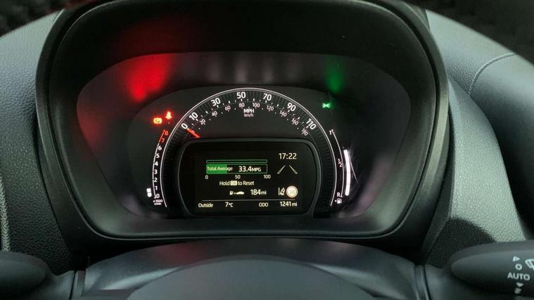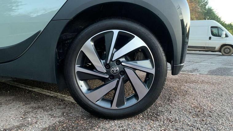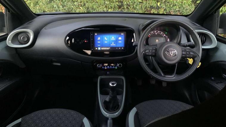 4.2" TFT colour screen, Adjustable speed limiter, Analogue speedometer, Bluetooth connectivity, Digital tachograph, Driver attention alert system, eCall emergency call system, Electric power steering, Intersection turn assist, Key reminder warning, Noise reduction kit, Pre collision system with emergency steering assist, Reversing camera with static guide lines, Smart phone integration with Apple car play/Android Auto, Speed limit display, Start and stop, Vehicle Stability Control (VSC), 4 speakers, 9" HD multimedia display touch screen with Toyota smart connect, DAB digital audio broadcast, USB connector, Auto headlights, Auto wipers, Automatic headlights cut-off, Bicycle towing hook, Black contrast roof, Black side protection mouldings, Black wheel arch mouldings, Body colour door handles, Body coloured front bumper, Boot door scuff plate, Eclipse black rear bumper, Electric heated door mirrors, Follow me home headlights, Front fog lights, Front power windows, Gloss black door mirrors, Gloss black upper front grille, Headlight cut-off reminder, LED daytime running lights, LED front light guide, LED High mounted stop lamp, Manual day/night rear view mirror, Manual headlight levelling, Pagoda roof, Power adjustable door mirrors, Power back door, Privacy glass, Projector halogen headlights, Rain sensor, Rear combination lights LED bulb type, Rear side wing doors, Rear windscreen defogger, Rear windscreen wiper, Short antenna, Variable intermittent windscreen wipers, 12v power outlet - front, 2 seat bench in 2nd row, 3 spoke leather steering wheel, 50/50 split folding rear seat, Adhesive roof headlining, Adjustable speed limiter switch on steering wheel, Audio and telephone switches on steering wheel, Auto air conditioning, Black insert on steering wheel, Black roof lining, Boot light, Centre room light, Chrome interior door handles, Chrome surround on air conditioning buttons, Clean air filter, Console box storage in body color, Fabric upholstery, Floor mats, Front and rear cup holders, Front head rest deco art, Front head restraints, Height adjustable driver seat, Intelligent adaptive cruise control switch on steering wheel, ISOFIX child restraint system on rear seats, Lane departure alert switch on steering wheel, Leather gearshift knob, Manual tilt steering wheel, Manually reclining and sliding driver seat, Manually reclining and sliding front passenger seat, Multimedia switches on steering wheel, Pollen filter, Rear door pockets, Rear head restraints, Satin silver insert on gear shift knob, Single compartment glovebox with lights, Single front passenger seat, Soft tonneau cover, Sun visors with mirror on driver and passenger side, Voice recognition switch on steering wheel, Toyota safety sense pack - Aygo X, Anti lock braking system + Electronic brake force distribution, Child safety door lock, Emergency brake light signal (EBS), Hill start assist control (HAC), Passenger airbag on/off switch, Seat belt reminder for front and rear seats, Supplement restraints system (SRS) - 6 airbags, Traction control, Tyre pressure warning system, Immobiliser, Remote power door locks, Black wheel centre caps, Tyre repair kit,