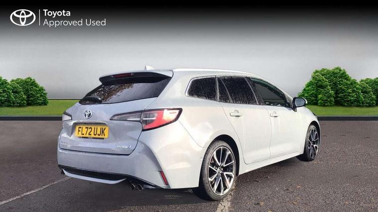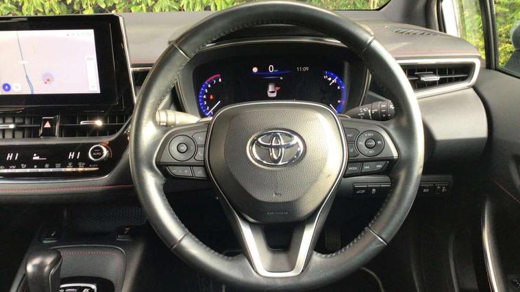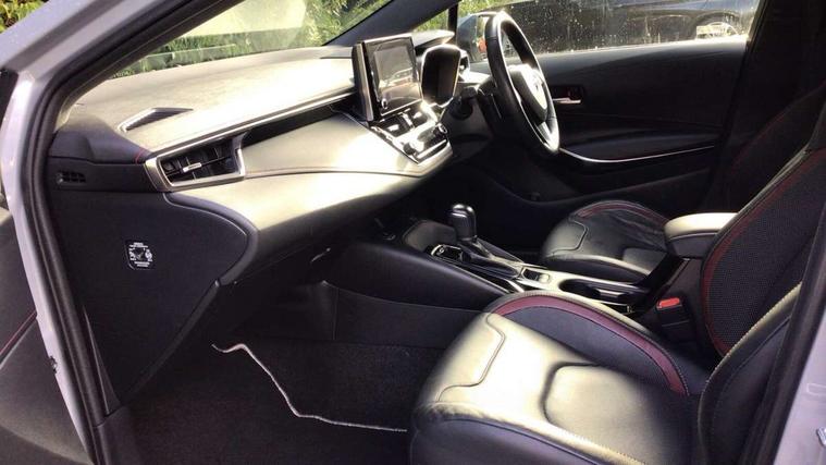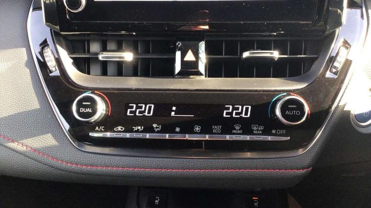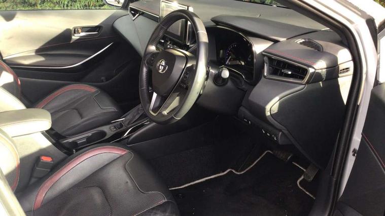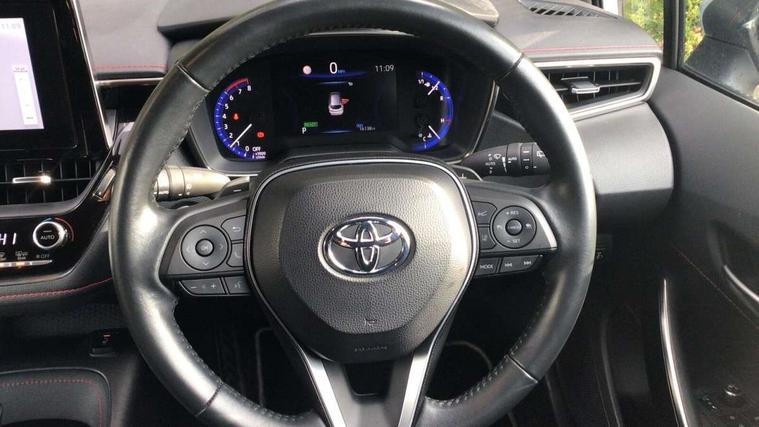 7" Multi information display screen, Bluetooth telephone connectivity, Connected car functionality upgrade, tracker, remote status and e-care, Dynamic radar cruise control (with RSA) including switch on steering wheel, E-call, Electrically assisted power steering, EV drive indicator, Intelligent park assist, Kick sensor for power tailgate, Lane Departure Alert (LDA) switch on steering wheel, Memory on adjustable speed limiter, Push button start, Reversing camera, Smartphone integration with Apple CarPlay and Android auto, Gasoline particulate filter, Vehicle Stability Control (VSC), 6 speakers, 8" Touchscreen with MM19 Multimedia system and voice recognition, AM/FM radio, DAB Digital radio, Toyota touch 2 with go navigation system, USB and Aux in connectors + 12V front outlet, USB charging port in centre storage box, Aluminium roof rails, Anti-jam protection on power windows, Auto dimming inside rear view mirror, Auto up and down function on all power windows, Automatic folding mirrors, Automatic headlights with high beam assist, Bi-LED headlights with LED lightguide, Black toyota logo in front, Body colour rear spoiler, Body coloured bumpers, Body coloured door mirrors, Body coloured outside door handles, Chrome door scuff plates, Follow me home headlights, LED daytime running lights, LED front fog lights, LED High mounted stop light, LED rear combi lights with LED lightguide, Noise reduction layer on front windows, Power adjustable heated door mirrors, Power front windows, Power rear windows, Privacy glass, Rain sensing wipers, Rear side wing doors, Rear window defogger, Rear window wiper, Reverse tilting door mirrors, Satin chrome surround on lower front grille, Shark fin antenna, Time adjustment on intermittent wiper, Turning signal integrated indicators in door mirrors, Unique lower skirt, Unique side rocker with black insert, UV-filter on driver and passenger windows, 12v power outlet - luggage side, 3 rear headrests, 3 seat bench in 2nd row, 3 spoke leather steering wheel + gear knob, 60/40 split folding rear seat, Adjustable speed limiter switch on steering wheel, Audio, multimedia and telephone switches on steering wheel, Blue ambient interior illumination to centre tray, front cup holders and front door trim, Boot underfloor storage, Clean air filter, Driver and front passenger personal light, Driver and passenger assist grip, Driver and passenger seatback pockets, Driver and passenger sun visor with mirror and light, Dual sided deck board in boot, Dual zone automatic air conditioning with ECO mode switch, Front and rear cup and bottle holders, Front and rear door pockets, Front head restraints, Front passenger seat, Full leather upholstery, Heated driver and front passenger seats, Illuminated entry system in room lamp, ISOFIX seat fixing (2 fixings on rear outer seats), Leather gear shift with satin chrome on gear shift console, Leather style armrests, LED boot light, Luggage utility boot rails, Manual height adjustable for driver and front passenger seat, Paddle shifts, Pollen filter, Power adjustable lumbar support on driver seat, Power window switches with satin chrome inserts, Rear armrest with 2 cupholders, Rear passenger air vents, Rear passenger coat hooks (2), Rear passenger personal lights, Retractable tonneau cover with luggage partition net, Satin chrome inside door handles, Shopping bag hooks in luggage compartment, Sliding armrest on centre console box, Slow opening glovebox with lights, Sports seats, Tilt/telescopic steering column, Tonneau cover with under floor storage, Voice recognition switch on steering wheel, Whiplash Injury Lessening (WIL) feature (active headrest) for seats, Parking pack - Corolla, Toyota safety sense 2 pack - Corolla, 3x3 point rear seatbelts, Adjustable driver and front passenger seat belt extender to top anchor point, Anti lock braking system + Electronic brake force distribution, Brake assist function, Child locks on rear doors, Downhill Assist Control (DAC), Electronic parking brake, Emergency brake light signal (EBS), Front passenger airbag on/off switch, Front seatbelt reminder, HAC-Hill-start Assist Control, Rear seat belt reminder, Seatbelt pretensioners and force limiters, Supplemental restraint system (SRS) 7 airbags - dual driver, dual side curtain, side impact and driver knee airbags, Traction control, Tyre pressure warning system, Acoustic vehicle alert system (AVAS), Alarm with motion sensor and immobilizer, Remote central locking + deadlocks, Smart entry, Satin chrome dash trim, Soft touch texture on upper dashboard, Stitching on lower dashboard, Stitching on upper dashboard, Tyre repair kit, Unique wheel finish with red wheel cap,