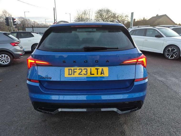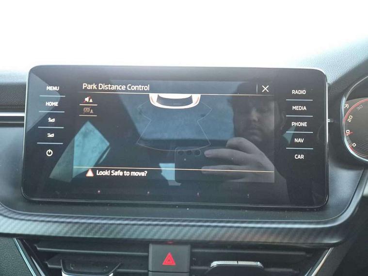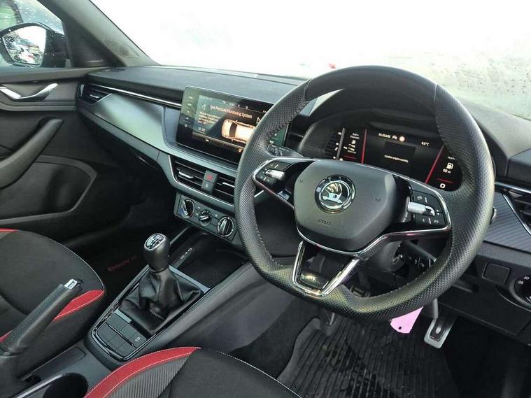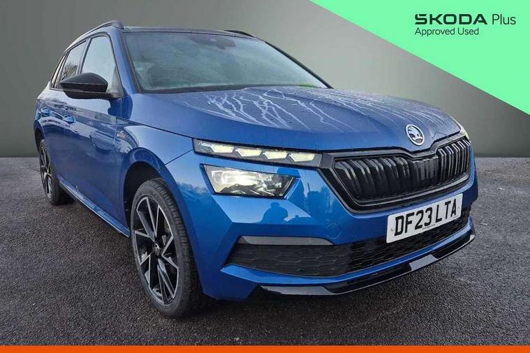 Amundsen satellite navigation with 9.2" glass colour touchscreen display, web radio, voice control and traffic sign recognition, Bluetooth system, E-call, Front assist system, Gesture control, PAS, Service indicator, Speed limiter, Wireless Smartlink for Apple CarPlay (wired for Android Auto), 8 Speakers, Auxiliary input socket, DAB Digital radio, Black door mirrors, Black radiator grille, Black rear diffuser, Body colour bumpers, Body colour door handles, Body colour roof spoiler, Boot lettering in black, Chrome grille surround, Dimming rear view mirror with black surround, Electrically adjustable and heated door mirrors, Fixed panoramic sunroof with black roof rails, Front and rear electric windows, Front sport bumper, Full LED headlights with adaptive front light system, cornering function, fog lights and dynamic indicators, Headlight range control, Heated rear window, High functionality rear led lights with dynamic indicators, KAMIQ Door sills, LED daytime running lights, LED third brake light, Light sensors, Monte carlo plaque, Privacy glass, Rain sensor, Rear fog lights, Rear side wing doors, Rear wiper, 12V Accessory socket in centre console, 3 seat bench in 2nd row, Aluminium pedals, Black ceiling for black/beige interior, Black roof lining, Chrome inner door handles, Cloth upholstery, Front head restraints, Glove compartment with illumination, Ice scraper, Isofix child seat fittings on outer rear seats, ISOFIX on front passenger seat, Leather gear lever, Manual lumbar support for front seats, Rake/reach adjustable steering wheel, Reading lights, Single front passenger seat, Sports seats, Sun visors with illumination on front passenger, Textile floor mats, Third rear headrest, Top tether for front passenger seat, Umbrella in driver's door, 3x3 point rear seatbelts, Airbags - driver and front passenger, ESP, Front passenger airbag deactivation switch, Front side airbags with curtain airbags, Hill hold control, Manual parking brake, Manual rear child locks, One tone horn, Rear disc brakes, Seatbelt reminder for driver an co-driver, Traction control, Tyre pressure monitor, Anti-theft alarm system with interior monitoring, backup horn, towing protection and remote central locking with SAFE system, Anti-theft wheel bolts, Electronic engine immobilizer, Chrome air vent surrounds, 18" Vega alloy wheels in black,