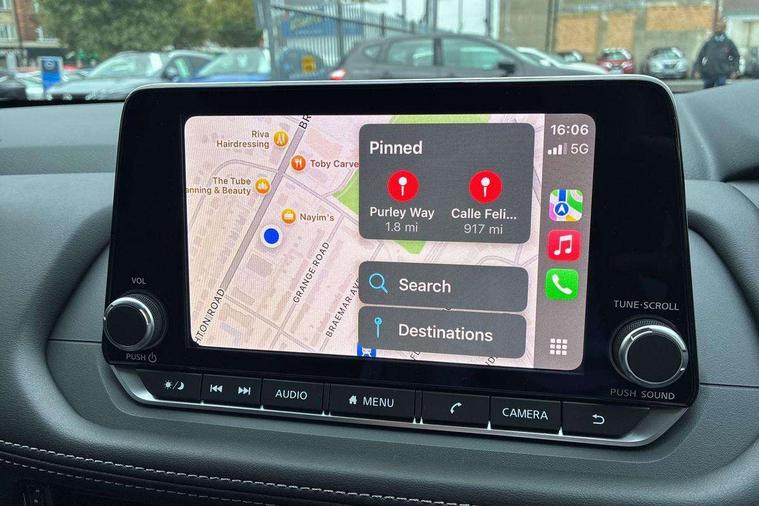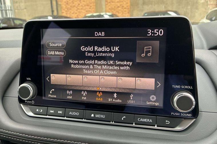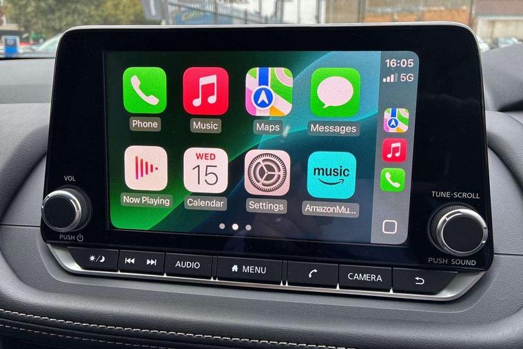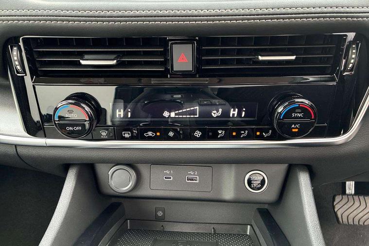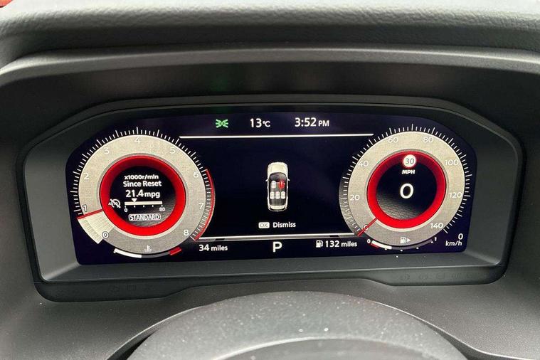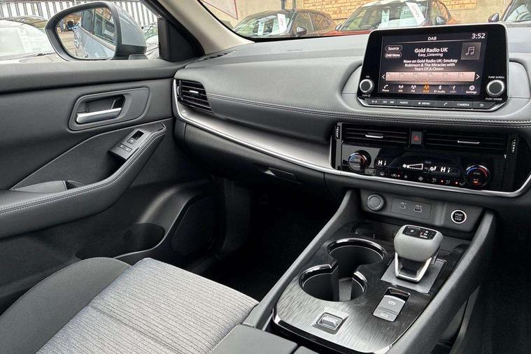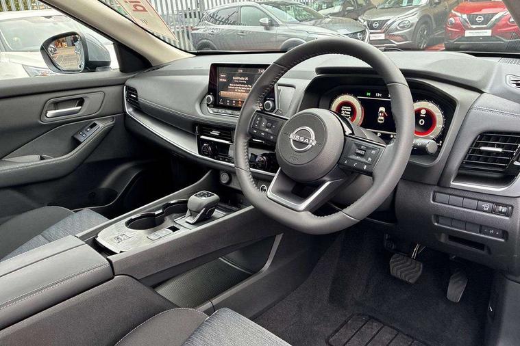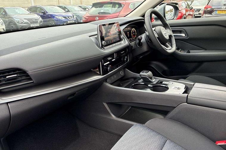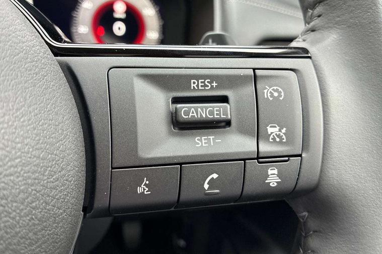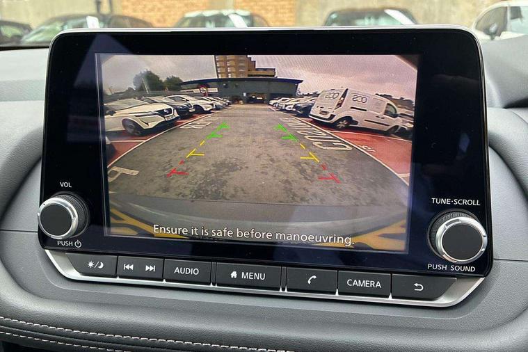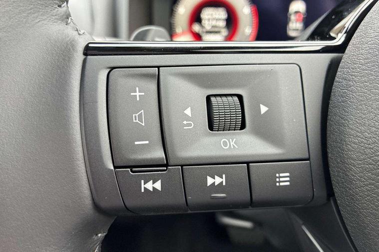 Android auto/Apple CarPlay (Wired), Blind spot warning, Drive assist custom mode, Drive modes (sport, normal, eco), Driver drowsiness and attention warning, Electric speed sensitive power steering, Emergency and breakdown call, Event data recorder, Front and rear parking sensors, Full Digital 12.3" TFT Digital Combimeter, Idle stop/start system, Intelligent driver alert system, Intelligent forward collision warning, Intelligent lane departure warning, Intelligent lane intervention, Intelligent lane keep assist, Maximum speed limiter, Moving object detection, Nissan connect 8" touchscreen infotainment system, Push button starter, Rear cross traffic alert, Rear view camera, Reversing detection, Traffic sign recognition with legal speed adjustment, Trip computer, Wireless charging pad, 6 speakers, AM/FM audio system with DAB, Bluetooth audio streaming, Front USB connections (Type-A and Type-C), Rear USB charging only ports 2 Type-C, Auto dimming rear view mirror, Auto rear wiper when reversing, Body colour mirror caps, Body coloured door handles, Bodyside mouldings, Chrome side window finisher, Electric auto folding door mirrors, Electrically adjustable and heated door mirrors, Follow me home headlights, High beam assist, Intelligent auto headlights, LED 3rd brake light, LED daytime running lights, LED Headlights, LED rear lights, One touch front and rear electric windows with remote opening and closing, Partially body coloured bumpers, Rain sensing wipers, Rear reversing light (bulb lighting), Rear roof spoiler, Rear side wing doors, Rear styling plate, Shark fin antenna, Splash free wipers, Three blink turn signal, 12v power socket in dashboard and luggage, 3 bench rear seats in 2nd row, 3 rear headrests, 60/40 split folding rear seat bench, Butteryfly console, Chrome interior door handles, Cloth monoform upholstery, Driver and front passenger sunvisors with illuminated vanity mirrors, Driver seat back pocket, Dual zone automatic climate control with pollen filter, Front centre console and armrest, Front cupholders, Front door with bottle holders, Height adjustable driver's seat, Height adjustable front headrests, Height adjustable passenger seat, Leather shift knob, Leather steering wheel, Luggage space lighting, Multifunction steering wheel, Passenger seat back pocket, Rear armrest with 2 cupholders, Rear door bottle holders, Single front passenger seat, Tilt/telescopic adjustable steering wheel, Two rear isofix child seat anchorage points with top tether, 3x3 point rear seatbelt pretensioners + load limiters, ABS with EBD and brake assist, Active brake limited slip, Auto hold function, Child locks on rear doors, Curtain and front side, far side airbags, Driver and passenger airbags, Driver, passenger and 2nd row rear seat belt reminder, Electronic parking brake, Front seatbelt pretensioners + load limiters, Height adjustable front seatbelts, Hill start assist, Intelligent blind spot intervention, Intelligent front emergency braking with pedestrian, cyclist recognition and junction assist, Intelligent rear automatic braking, Tyre pressure monitoring system, Vehicle dynamic control, Approach unlock and walk away lock, Engine immobiliser, Remote central door locking with deadlocking, Thatcham Cat.1 alarm, 18" Diamond cut alloy wheels, Tyre puncture repair kit,