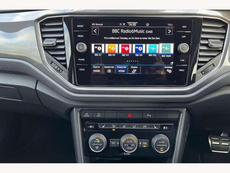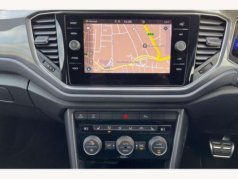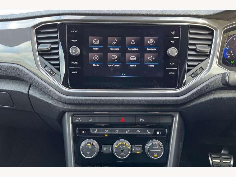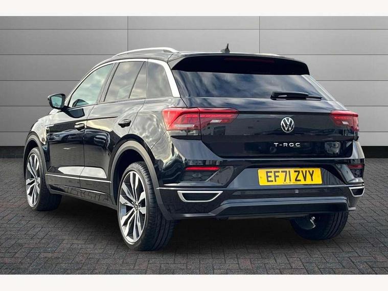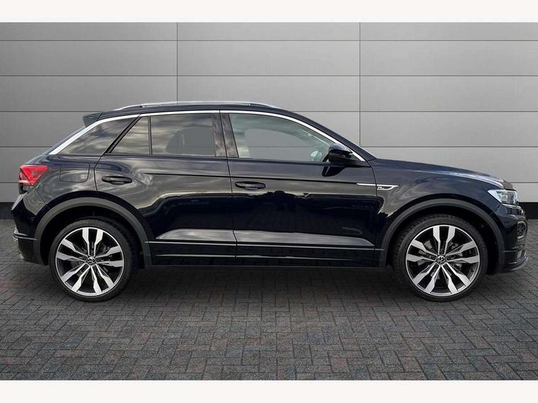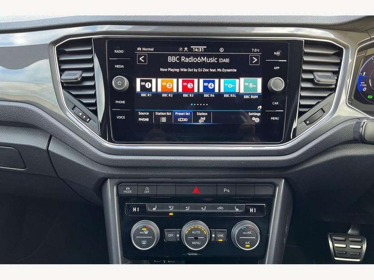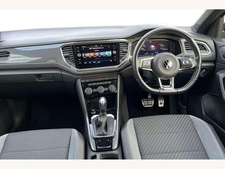 'Lights On' Reminder warning buzzer, Adaptive cruise control, Bluetooth telephone and audio connection for compatible devices, Car information display, Digital Cockpit Pro - Active info display, Driver alert system with audible and visual fatigue detection system, Driver tips and journey analysis, Dusk sensor, Emergency call service, Lane assist with warning text instrument cluster, Modified key software - reduce switch off time for key status change to Long no motion, Multifunction camera, Multifunction computer with visual gear change recommendation for fuel consumption, Navigation system discover media including streaming and internet, Service interval indicator, Think blue trainer driver tips and journey analysis, Traffic sign recognition, Voice activation, Warning sound and light for front seatbelts unfastened, Wireless app connect for apple carPlay, Battery regeneration during braking, Misfuel prevention device for diesel engine, Rear shock absorption for sports version, Start/stop function with battery regeneration, DAB Digital radio, Disk brakes in front, Diversity antenna for FM reception, Music playback - MP3, WMA and AAC files, Premium USB cable in choice of either Apple or Android smartphone compatibility, SD card slot, Simultaneous pairing of 2 compatible mobile devices, SMS functionality - read, compose and send SMS messages using touch-screen display, Storage compartment with longitudinal and height adjustable in armrest and two rear air vents, Three route options - Fast, Short, Eco, Title and cover art display, USB-C Interface and USB charging socket, Auto dimming interior rear view mirror, Automatic coming/leaving home lighting function and daytime running lights, Automatic hazard lights activation under emergency braking, Black grained lower door protectors, Body colored door lower parts, Body colour door handles, Body colour rear roof spoiler, Chrome effect left and right trapezoid exhaust tailpipe fascia surround, Chrome plated moldings, Chrome plated radiator grille inserts, air vent surrounds and light switch surrounds, Chrome trim on upper and lower radiator grille, Dynamic headlight range control with self adjusting whilst driving, Electrically foldable, adjustable and heated door mirrors with puddle lights and reverse activated kerb-view adjustment on passenger's door mirror, External USB type C socket and charging sockets, Front and rear electric windows, Front fog lights with static cornering function, Front windscreen wiper with intermittent wipe and 4 position delay, Fully galvanised body, Heated rear window, Heated windscreen washer jets, High level 3rd brake light, LED darkened rear light clusters, LED headlamps with automatic range adjustment and unique signature LED separate daytime running lights, LED rear number plate lights, LED tail lamp rear comination lamps, Privacy glass, R-Line design body coloured bumpers, Rain sensor, Rear tinted glass from B-pillar backwards approx 65% tinted, Rear wash/wipe with intermittent wipe setting, Silver anodised roof rails, Volkswagen roundel, 12V socket in centre console storage area, 3 rear head restraints, 4 load lashing points in luggage compartment, Aluminium pedals, Black roof lining and sun visors, Branded points of interest, Carbon flag cloth upholstery, Climate control - 2 zone electronic air conditioning with automatic air recirculation and allergy filter, Door and side trim panel, Door and side trim panel in foam film, insert in leatherette, Drawer under drivers seat, Front + rear carpet mats, Front centre armrest, Front cupholders x 2, Front seat back storage pockets, Front sports seats with R-Line logo on seat backrest, Glovebox, Heated front seats, Height adjustable front seats, Height/reach adjust steering wheel, Instrument lighting, white adjustable panel illumination, Interior light delay, Interior light in footwell, Isofix easy fit child seat preparation for 2 outer rear seats, Leather gearshift knob, Leather multi function sport steering wheel with gear change selection via paddle shift on steering wheel, LED interior light with switch off delay/dimmer and 2 front/rear LED reading lights, Load through provision with single cup holder when folded down, Luggage compartment cover, removable, Luggage compartment lighting, R Line badge, Scuff plates in door apertures, Split folding rear seat backrests with centre armrest, Stainless steel pedals, Storage compartment in left and right luggage area, Storage compartment in rear doors, Storage compartments in driver and front passenger doors, Sunvisors with illuminated vanity mirrors, Unique R Line door sill protectors, White ambient lighting, R line styling pack - T-Roc, Winter pack - T-Roc, 3 rear three point seatbelts, ABS, Curtain airbags, Driver and front passenger safety-optimised head restraints, Drivers and front passengers airbags with passengers deactivation switch, Drivers seatbelt reminder, Electronic parking brake with auto hold, Electronic stability control (ESC) includes ASR, EDL, EDTC and trailer stabilisation function, Front assist with city emergency braking and pedestrian monitoring, Front seat side impact airbags, Hill start assist, Predictive pedestrian protection, Rigid safety cell with front and rear crumple zones, Single tone horn, Three point height adjust front seatbelts + pretensioners, Tyre pressure loss indicator, Ventilated front and rear disc brakes, Volkswagen roadside assistance, Alarm with remote central locking and interior protection, Electronic engine immobiliser, Remote central locking with SAFELOCK, radio remote control with 2 remote control folding keys, Shadow grey decorative inserts in dash, centre console and door panel, 19" Suzuka alloy wheels with low rolling resistance tyres and anti wheel bolts,
