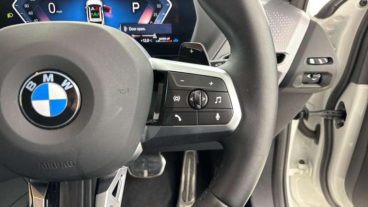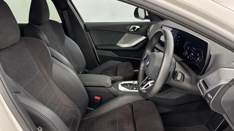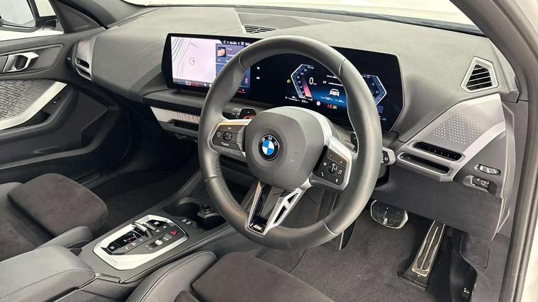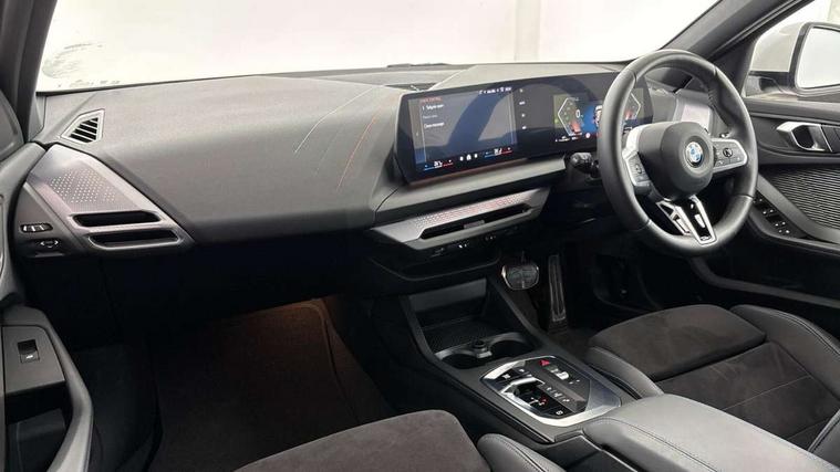 Active guard plus, Attentiveness assist, Bluetooth / WiFi interface for wireless connection of mobile terminal devices and audio streaming, BMW ConnectedDrive online services, BMW Live cockpit plus, BMW Teleservices, Check Control warning system for monitoring of lights and door/luggage compartment open warning, Eco pro mode, Electric power steering with Servotronic steering optimised at all speed ranges, Evasion assistant, Flat airvents in instrument panel with adjustable slats, Front and rear parking sensors, Front axle single joint with specific axle kinematics to minimise drive influences on steering + provide increased rigidity agile driving behaviour, Gearshift time display in manual mode, Integrated owners handbook, Left turn warning with brake function, My modes (Personal / Efficient / Sport), Oil sensor for level and grade, On board computer, Optimum shift indicator, Park assist including reversing assistant, lateral parking aid and reversing assist camera, Personal e-SIM, Personal Profile, Pull away assistant, Rigidly mounted rear subframe - Multi link construction with separate spring / damper configuration and excellent driving characteristics, Speed limit Info including no-overtaking indicator, Speed limiter, 49 litre fuel tank, Aluminium lightweight construction, Anti roll bar front and rear, Balancer shaft, Double VANOS twin scroll turbocharging system, Drive Performance Control, Electronic differential lock, Electronic selector lever, High precision injection, M Adaptive suspension, Petrol Particulate Filter, Steptronic transmission with double clutch, Twin tube gas filled shock absorbers with degressive characteristic curve, VALVETRONIC engine management, DAB Digital radio, Auto dimming rear view mirror, Automatic windscreen wipers and automatic headlight, Body colour door handles, Body colour mirror caps, Body colour roof trims, Chrome 'M' logo side designation, Chrome exhaust twin tailpipes round 90mm in left, Chrome kidney grille frame with Satin Aluminium struts, Direction indicator side lights in exterior mirrors, Electrically adjustable exterior mirror with mirror adjustment switch on drivers armrest and aspheric on driver side, convex on passenger side, Exterior M sport design elements, Fading support, Folding side mirrors with auto dimming/folding wing mirrors with auto dimming, Follow me home headlights, Front and rear bumper system with replaceable deformation elements, Front and rear electric windows with open and close fingertip control, anti trap facility and comfort closing, Front bumper panel with M specific design in vehicle colour with inserts in black high gloss, Front door sill finishers in black plastic with M designation in metallic look, Green tinted heat protection glazing, Heated rear window, High gloss black exterior mirrors, High gloss shadowline window frame, Recess cover mirror frames and B/C pillar embelisher trim, High level third brake light, Integrated front windscreen with washer jets, LED daytime running lights, LED eyebrow turn indicators, LED front fog lights, LED Headlights, Lightweight engineering, M identification on the sides, Matt black air guide grilles, Matt black wheel arch trim, Model badge on tailgate right, Nearside reverse light in rear light cluster, Preparation for high beam assistant, Rain sensor, Rear bumper panel with M-specific design in vehicle colour with inserts in black high gloss, Rear fog lights, Rear side wing doors, Rear window wiper, Shark fin antenna, Side sill covers with M specific design in body colour, Trailer stabilisation logic, Visible VIN plate, Welcome lighting, 12V power socket in front centre console with blanking plug, 3 rear seat head restraints, 3 seat bench in 2nd row, 3 spoke sports leather steering wheel with black leather and stitching, pearl chrome decorative finish, specific M Badge, Anthracite front and rear floor mats, Anthracite headlining, Black boot net with lashing eyes, Cargo function on 2nd seat row, Child seat ISOFIX attachment for two outer rear seats and front passenger seat with anchorage points, Conditioned based service, Driver and front passenger backrest net on rear, Driver and front passenger seat heating, Driver side folding compartment in instrument panel, Folding rear clothes hook, Footrest and pedals in black plastic, Four grab handles integrated in roof lining, Front and rear door pockets with bottle holders, Front and rear side armrest integrated into door trim, Front armrest with storage compartment, Gearshift paddles on steering wheel, Glove compartment, Height adjustable front head restraints, Luggage compartment for bag hooks on left and right, foldable luggage compartment liner and four lashing eyelets, Manual adjust steering wheel, Multi-function controls for steering wheel, Rear seat backrest with manual 60:40 split folding with 3 top tether clips integrated on rear of seat panels, Single front passenger seat, Storage compartment in centre console, Storage compartment in luggage compartment, Stowage of the parcel shelf in luggage compartment trim, Sun visors with vanity mirrors and insert tab, Two front centre console cupholders, Type C two USB ports in rear centre console, Upper retaining strap integrated into backrest rear panels, Connected pack professional - 1 Series, Interior lights pack - 1 Series, M Sport exterior styling aerodynamics pack - 1 Series, 2 tone horn, 3 point seatbelts on all seats, front pyrotechnic belt tensioners, stopper and belt force limiters, rear coded belt buckles, Airbags - Front driver/passenger, front and rear curtain head protection, front side, manual deactivation of front passenger airbag, Anti lock braking system (ABS) with brake assist, BMW emergency call, Brake drying, Braking readiness, Child proof locking system in rear door, Comfort modes, Cornering brake control, Crash sensor activating of airbags, Unlocking doors, hazard warning lights, interior light, safety battery terminal, Driver and front passenger seat belt sec