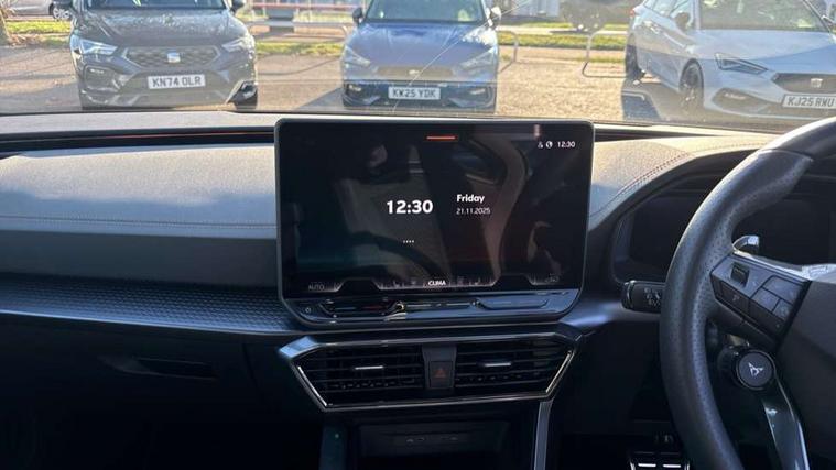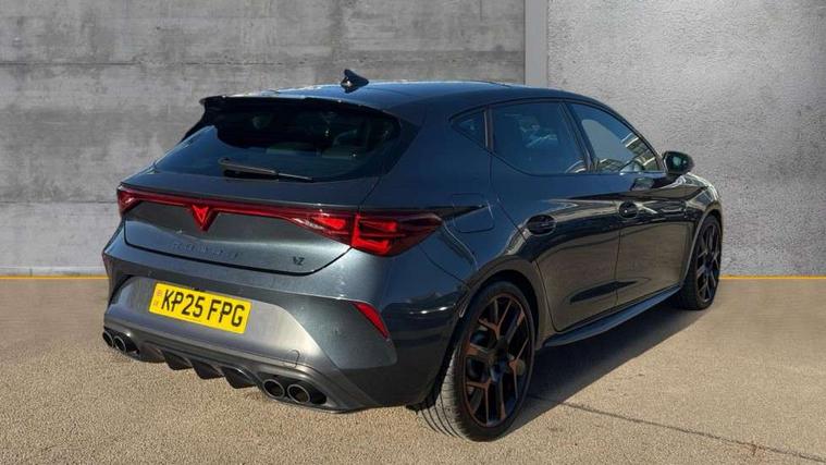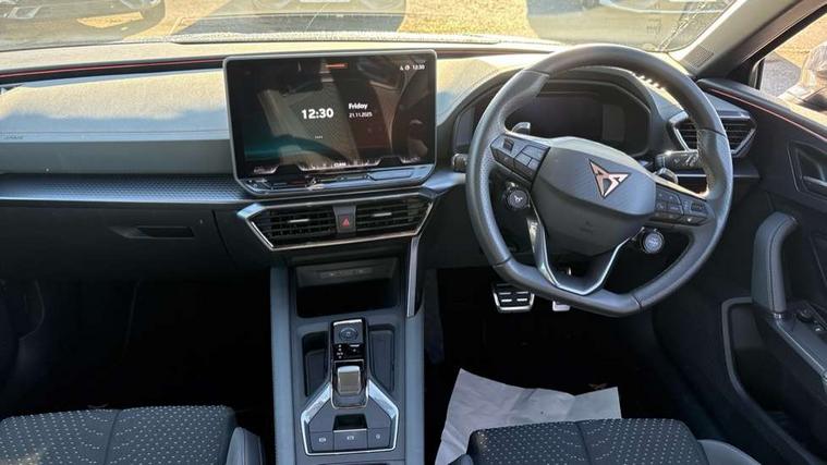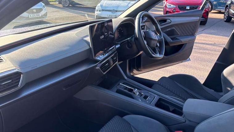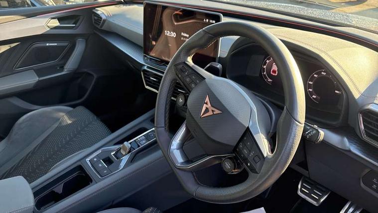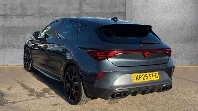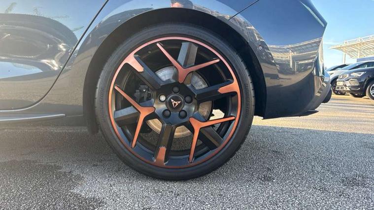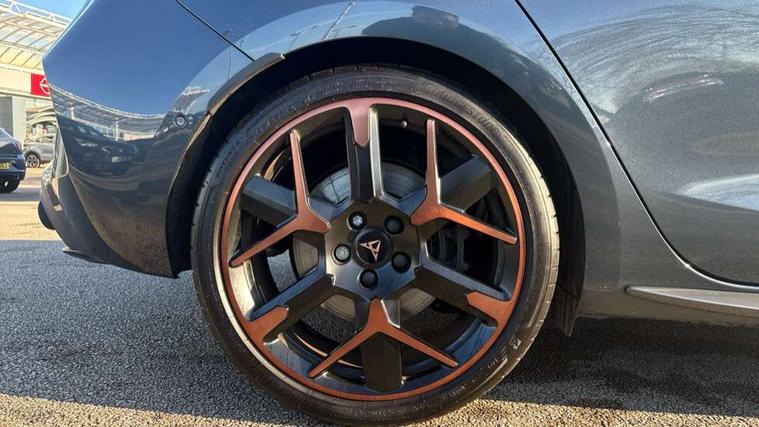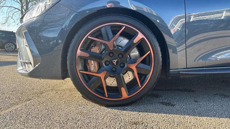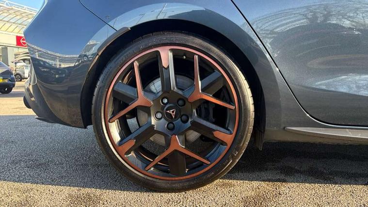 Adaptive cruise control with follow-to-stop and speed limiter, CUPRA drive profile selection with (Comfort/Sport/Individual), throttle response and gearshift mode, Digital cockpit, Dynamic road sign display, E-call, Four x USB Type C ports (2 in front and 2 in rear), Front and rear parking sensors, Front assist with forward collision warning braking reaction to vehicles, pedestrians and cyclists, Full link smartphone integration with Mirror Link, wireless Apple CarPlay and wired Google Android Auto, Intelligent park assist, Lane change assist with emergency assist, Lockable tailgate, Rear view camera, RPM, trip computer, outside temp gauge, instrument light brightness, low fuel warning light, lights on reminder, gearshift indicator, Service interval indicator, Side and exit assist, Start/stop system with regenerative braking, Wireless phone charger, Auxiliary input socket, Immersive by Sennheiser TM - 10 speakers, 1 central speaker, 1 subwoofer, Auto dimming rear view mirror, Body colour door handles, Body coloured bumpers, Cupra sports bumpers, Dark tinted rear windows, Electric front/rear windows, Electrically adjustable, heated and folding door mirrors, High beam assist, LED front fog lamps with cornering function, LED rear fog lamp, Matrix LED Headlights with variable light distribution, Matrix Beam and Dynamic headlight range control, Rain sensing wipers, Rear side wing doors, Rear wash/wipe, Separate daytime running light with automatic headlight control and coming home feature, Third brake light, Welcome light with logo projector in door mirrors, 12v power supply in centre console, 3 seat bench in 2nd row, 5 headrests, 60/40 split rear bench seat with armrest, Ambient lighting (glovebox, footwell, ambient lighting multicoloured), Black headlining, Cupra sports pedals, CUPRA Supersports, heated steering wheel with satellite buttons, Electrically adjustable driver seat and lumbar support with memory function + manually adjustable passenger seat, Folding boot cover, Front and rear reading lights X 4, Front centre armrest, Heated front seats, Height/reach adjust steering wheel, Illuminated interior front door sills, Interior wraparound lighting, ISOFIX points in outer rear seats with top tether anchorage points, Single front passenger seat, Sunvisors with illuminated mirror, Textile cloth upholstery, Three zone climate control, Dynamic and comfort pack - Leon Cupra, Media system plus with 12.9" display + navigation pack - Leon Cupra, 3 point seatbelts on all rear seats, ABS, Akebono performance brake calipers, Brake control system - ESC and brake booster, Child proof door locks, Driver and front passenger airbags with front passenger airbag de-activation, front side and curtain airbags, Electronic parking brake, Hill hold control, Pre-crash front and rear seat belt tensioner, window closure and hazard lights, Rear disc brakes, Seat belt reminder for front and rear seats, Tiredness recognition system, Tyre pressure monitoring system, Anti theft alarm system with interior monitoring in cab, backup horn and towing protection, KESSY Advanced - Keyless start, keyless entry, Locking wheel bolts, Chrome and copper interior detailing, 19" Hailstorm forged machined R black and copper alloy wheel with 91Y tyres, Breakdown kit, Tool kit,