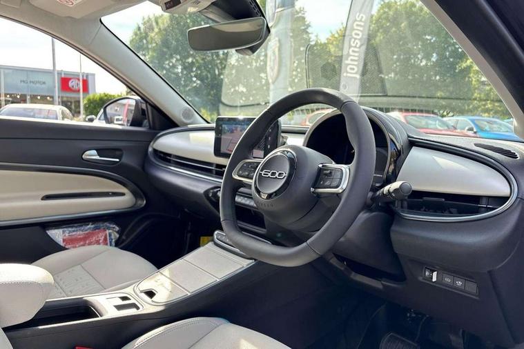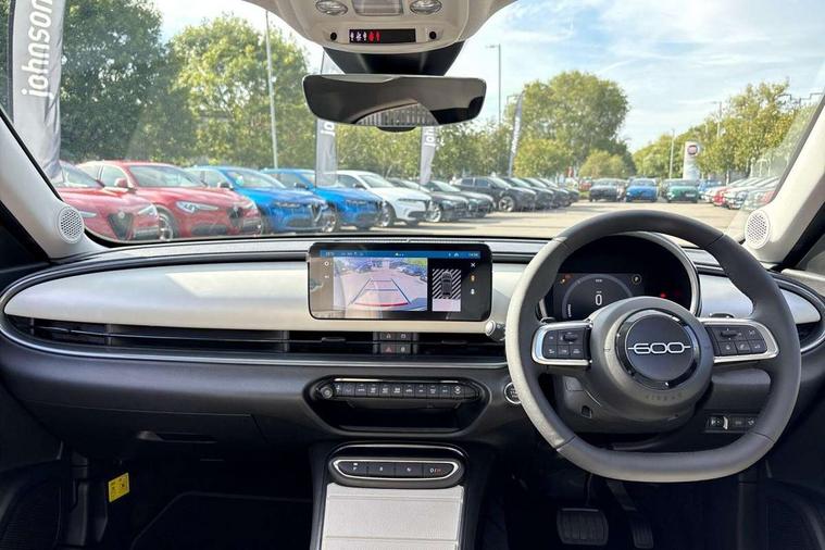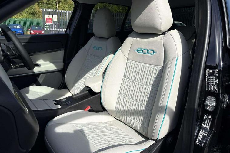 360 degree parking sensors with 180 degree rear view camera, 7" TFT digital cluster, Autonomous driving level 2: Adaptive cruise control with stop & go and lane centering, Blind spot detection, Bluetooth connectivity, BSRF connectivity box, Connected services, Drowsy driver detection, Emergency E-call assist, Engine emission level default, GSR II step 1, Hands free power liftgate, Intelligent speed assist, Lane keeping assistant (LKA), Odometer, Power assist steering, Rain and dusk sensors, Semi-automatic parking with Visiopark 1 system, Traffic sign recognition, Wireless apple car play/android Auto, Wireless charging pad for smartphones, Without drive mode selector, L2-AGM 12V battery, 1st Row USB type-A and USB type-C, 2nd Row USB type-C, 6 speaker audio system, Radio, Uconnect infotainment 10.25" touchscreen with integrated navigation system and DAB, All power windows express Up/Down, Auto dimming frameless rear view mirror, Automatic headlights, Automatic high/low beam, Body coloured door handles, Chrome day light openings, Chromed exhaust tip, Electric adjustable/heated/folding door mirrors, Exterior chrome accents, Front and rear Chromed 600 logo, Gloss black finish B pillar, Gloss black shark fin antenna, Glossy black door mirrors, Heated windscreen wiper blade area, LED 3rd brake light, LED daytime running lights, LED Fog lamps with cornering function, LED front signature lighting, LED front turn indicators and position lights, LED rear lights, LED rear signature lighting, LED reflector headlamps, Matt black side skirts with 600 chromed logo, Privacy glass, Puddle lights, Rear bumper embossed 600 logo, Rear roof spoiler, Rear side wing doors, Rear wiper, 2 Spoke synthetic leather steering wheel with audio control, 3 rear headrests, 3 seat bench in 2nd row, 6 way manually adjustable front passenger seat, 6 way power adjustable driver seat with lumbar support and massage function, Adjustable trunk floor, Automatic climate control, Auxilliary 12V power socket, Cargo flex fit, Chrome interior door handles, Dark metachrome dashboard ring, English handbook, Front centre armrest, Front headrests, Front passenger grab handle, Front seatback pockets, Heated front seats, ISOFIX attachment on front passenger and rear passenger seats, Matt Ivory painted dashboard fascia, Metachrome central compartment bezel, Monogram Synthetic leather upholstery, Paddle shifts, Partial body cover for shipment, Predisposal for accessory upgrade to default tunnel pad cover (dedicated prnd bezel), Rear seat 40/60 split, Single front passenger seat, Smart 15L storage central tunnel with La prima tunnel pad cover, Sunvisor label ciao Fiat, Sunvisors with vanity mirrors, Velour floor mats, 3x3 point rear seatbelts, 6 airbags, ABS, Autonomous Emergency Brake (AEB) & Vulnerable Road User (VRU) Protection, Child locks on rear doors, Electronic parking brake with auto hold, ESC (Electronic Stability Control), Front passenger airbag deactivation, Seatbelt reminder and pretensioners for all seats, Anti-theft volumetric alarm, Anti-theft wheel bolts, Passive entry and keyless go, 18" Diamond cut alloy wheels, Fix and go puncture repair kit,