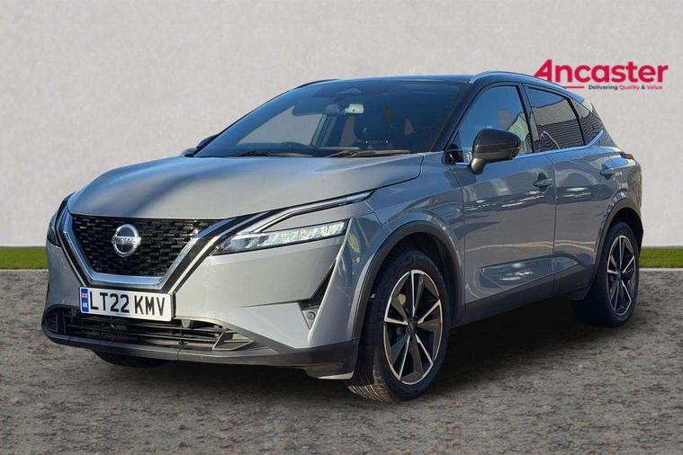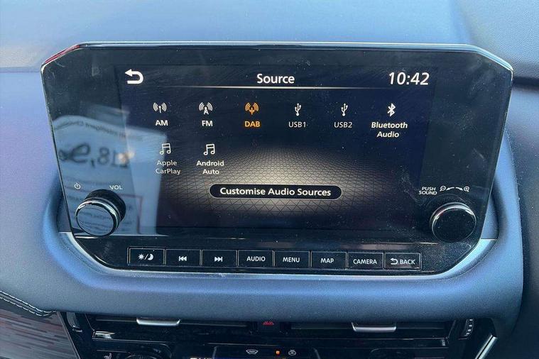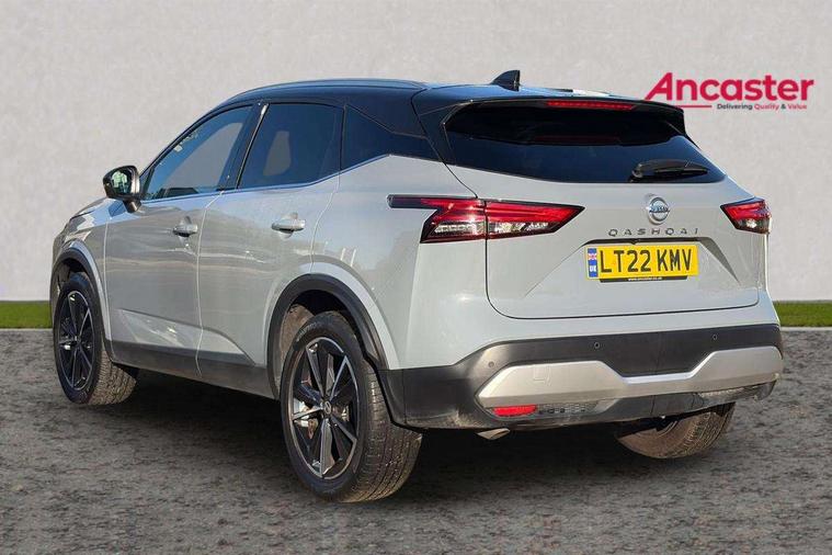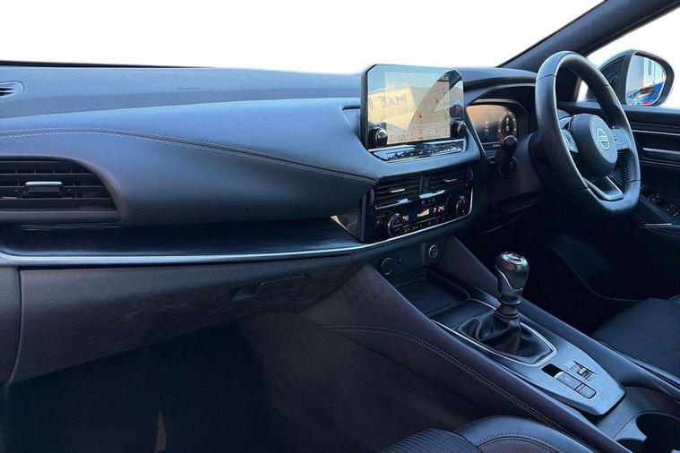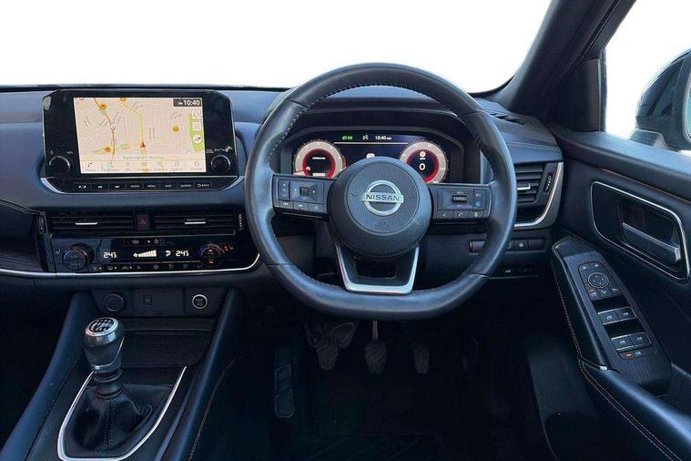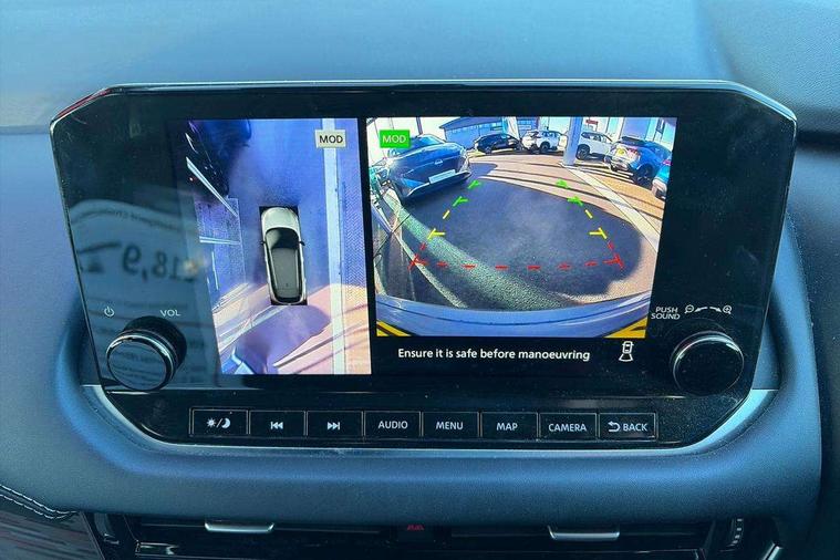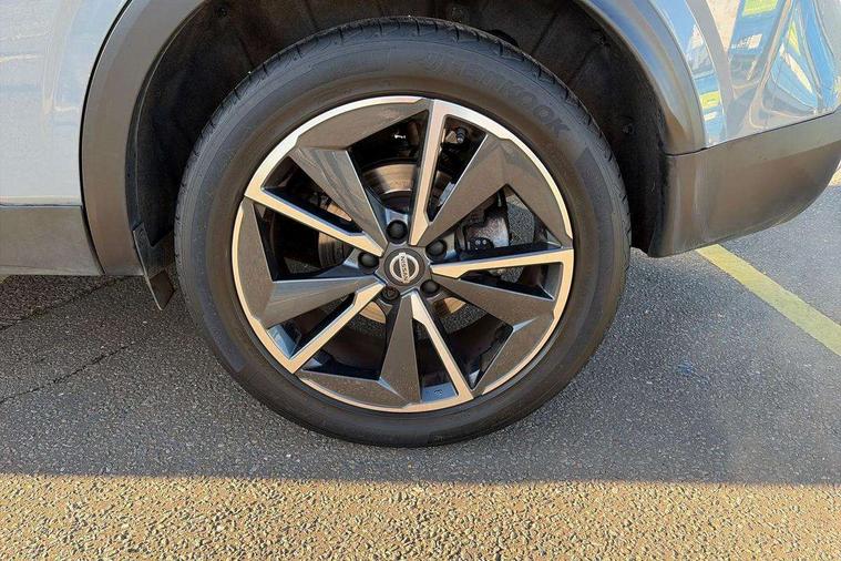 Blind spot warning, Drive modes (sport, normal, eco), Electric speed sensitive power steering, Emergency and breakdown call, Front and rear parking sensors, Full Digital 12.3" TFT Digital Combimeter, Google maps services - search, weather, 3D maps and Google street view, Hands free power tailgate, Idle stop/start system, Intelligent around view monitor, Intelligent Cruise control (ICC), Intelligent driver alert system, Intelligent forward collision warning, Intelligent lane intervention, Lane departure prevention, Lane departure warning system, Moving object detection, Nissan connect 9" touchscreen infotainment system, Nissan connect navigation, Push button starter, Rear cross traffic alert, Remote control services - door locks, lights, horn and car locator, Telematics - notifications and connectivity services, TomTom live traffic services, Traffic sign recognition with legal speed adjustment, Trip computer, Virtual personal assistant and firmware over the air capability, Wireless Apple CarPlay and wired Android Auto, Wireless charging pad, 6 speakers, AM/FM audio system with DAB, Bluetooth audio streaming, Front USB connections (Type-A and Type-C), Rear USB charging only ports (Type-A and Type-C), Auto dimming rear view mirror, Auto rear wiper when reversing, Body colour mirror caps, Body coloured door handles, Bodyside mouldings, Chrome side window finisher, Door handle with button, Dusk sensor, Electric auto folding door mirrors, Electrically adjustable and heated door mirrors with LED turn indicator, Fixed panoramic glass roof with electric sunshade, Follow me home headlights, Front and rear LED turning signals, Intelligent auto headlights, LED daytime running lights, LED rear lights, One touch front and rear electric windows with remote opening and closing, Partially body coloured bumpers, Privacy glass, Rear roof spoiler, Rear side wing doors, Rear styling plate, Roof rails, Shark fin antenna, Splash free rain sensing wipers, Super UV and infrared cut glass, Three blink turn signal, 12v power socket in dashboard and luggage, 2 way electrical driver lumbar adjustment, 2x Rear coat hooks, 3 bench rear seats in 2nd row, 3 rear headrests, 4 folding assist grip, 6 Luggage hooks - 4 on floor, 2 on side, 60/40 split folding rear seat bench, 8 way electric adjustable drivers seat, Ambient lighting around centre console, Ambient lighting in front doors, Centre console storage tray, Chrome interior door handles, Cloth/syntech leather monoform upholstery, Dark headlining, Driver and front passenger sunvisors with illuminated vanity mirrors, Driver seat back pocket, Dual zone automatic climate control with pollen filter, Front and rear door storage, Front cupholders x 2, Front door with bottle holders, Glovebox with light, Hard trunk cover, Height adjustable front headrests, Leather shift knob, Leather steering wheel, Luggage board system, Luggage space lighting, Manual lumbar support on passenger seat, Manually adjustable passenger (slide recline + lifter), Multifunction steering wheel, Passenger seat back pocket, PVC front centre console and armrest, Rear armrest with 2 cupholders, Rear door bottle holders, Single front passenger seat, Soft PVC kneepad, Steering wheel switches, Tilt/telescopic adjustable steering wheel, Two rear isofix child seat anchorage points with top tether, Welcome light and doors with console tray ambient lighting, Drive assist pack - Qashqai, Heat pack - Qashqai, Tech Pack (Drive Assist + HUD), 3x3 point rear seatbelt pretensioners + load limiters, ABS, ESP, EBD and brake assist, Active brake limited slip, Auto hold function, Child locks on rear doors, Curtain and front side, far side airbags, Driver and passenger airbags, Driver, passenger and 2nd row rear seat belt reminder, Electronic parking brake, Front seatbelt pretensioners + load limiters, Height adjustable front seatbelts, Hill start assist, Intelligent blind spot intervention, Intelligent front emergency braking with pedestrian, cyclist recognition and junction assist, Intelligent rear automatic braking, Tyre pressure monitoring system, Vehicle dynamic control, Capless fuel filler, Engine immobiliser, Nissan i-key, Rear bumper with silver insert, Remote central door locking with deadlocking, Thatcham Cat.1 alarm, 19" Alloy wheels,