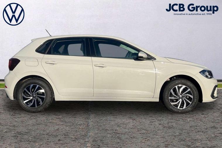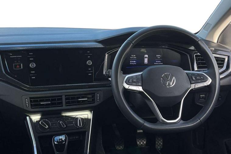 Advanced driver attention and drowsiness monitor, Bluetooth mobile phone interface, Cruise control + speed limiter, Dynamic road sign display, Emergency call service, Lane keeping system Lane Assist, Multifunction camera, Power assisted speed sensitive steering, Preparation for navigation system with media and internet package, Preparation for We connect and We connect plus, Speedo and rev counter, electronic odometer, trip, service interval display and exterior temperature gauge, Standard rear axle, Trip computer, Warning signal and warning light for front and rear seatbelts not fastened, Washer fluid level indicator, Wireless app connect, Front wheel drive, Rear shock absorpion, Start-stop system with battery regeneration (recuperation - energy recovery during braking), DAB Digital radio, Diversity antenna for FM reception, Front and rear 6 speakers, Automatic dimming interior rear view mirror, Automatic headlight control with LED separate daytime running lights with coming/leaving home function, Body colour bumpers with chrome inserts, Body colour door handles, Body colour door mirrors, Electric front windows, Engine badge deletion, Headlight range adjustment, Heat insulating and laminated safety glass windshield, Heat insulating darkened glass in side and rear windows, LED Headlights, LED rear combination lamps, Power folding adjustable/heated exterior mirrors and front passenger exterior mirror lowering function, Rain sensor, Rear electric windows, Rear fog light, Rear side wing doors, Rear windscreen washer and wiper with interval delay, Third brake light, 12V power socket in centre console, 2 front and 2 rear reading lights with switch off delay and dimmer, 2 USB-C ports in the front, 2 USB-C charging sockets on the center console in the rear, 3 rear head restraints, 60/40 split folding rear seat and rear seat bench not split, Ceramique roof lining, Chrome plated radiator grille inserts, air vent surrounds and light switch surrounds, Door and side trim panel, Driver and front passenger seat height adjustment, Driver/passenger sunvisors with illuminated vanity mirrors, Front centre armrest, Front seat backrest storage pockets, Front standard seats, Handbrake lever handle in leather, Hartley/Thomas cloth upholstery, Headliner in recycled material, Isofix child seat preparation easy-fit (for two outer rear seats, and front passenger seat) compatible with I-size, Leather trimmed gear knob, Luggage compartment cover, Luggage compartment lighting, Removable luggage compartment floor, Single front passenger seat, Standard climatic zones, Standard pedal cluster, Three spoke leather wrapped multifunction steering wheel, Light and vision pack - Polo, 3 point height adj front seatbelts + pretensioners, 3x3 point rear seatbelts, ABS, Driver and front passenger airbag with front passenger airbag deactivation, Drivers and front passengers safety optimised head restraints, ESC (Electronic stability control) + EDL (Electronic Differntial lock) and ASR (Traction control), Extended and predictive pedestrian/ cyclist protection, Front assist with autonomous emergency braking (for Adaptive Cruise Control ACC up to 130 mph), Front curtain and side airbags with center airbag, Front disc brakes, Hill hold control, Manual child lock in rear doors, Rear drum brakes, Single tone horn, Tyre pressure loss indicator, Alarm with interior protection, Anti-theft alarm system with interior monitoring, backup horn, and towing protection, Anti-theft wheel bolts, Electronic engine immobiliser, Lava stone black gloss/matt decorative inserts in dash and front door panels, Low rolling resistance tyres,
