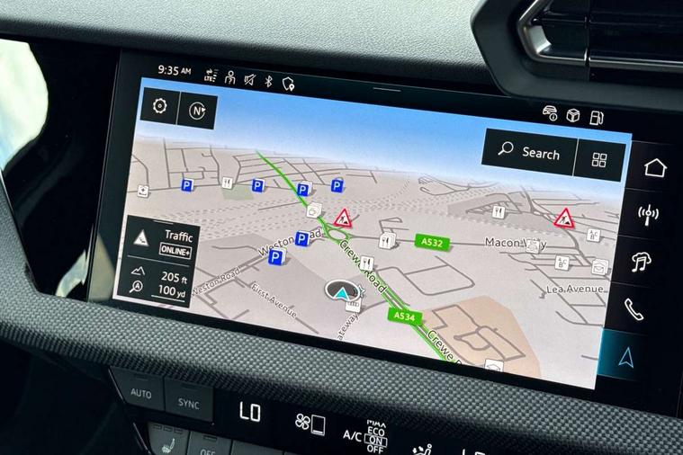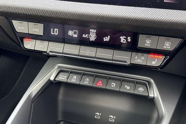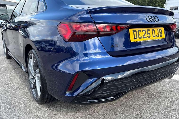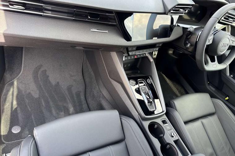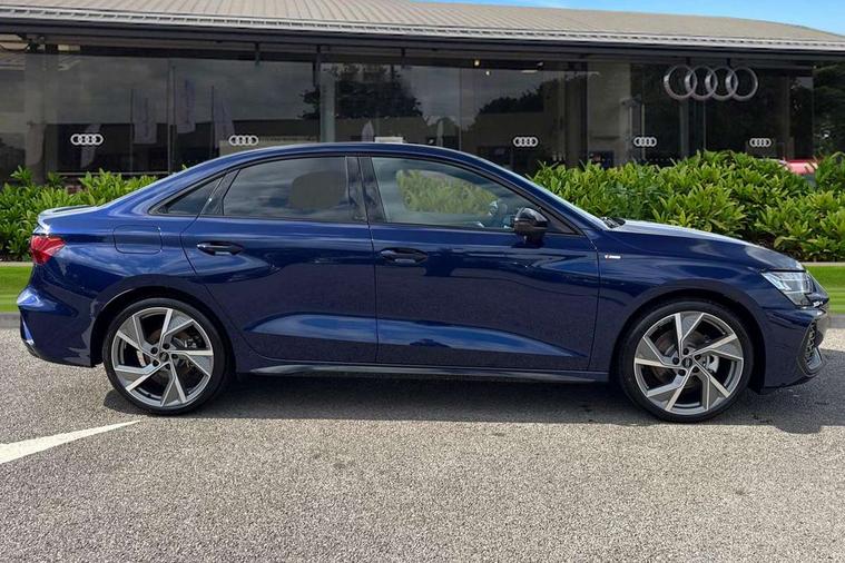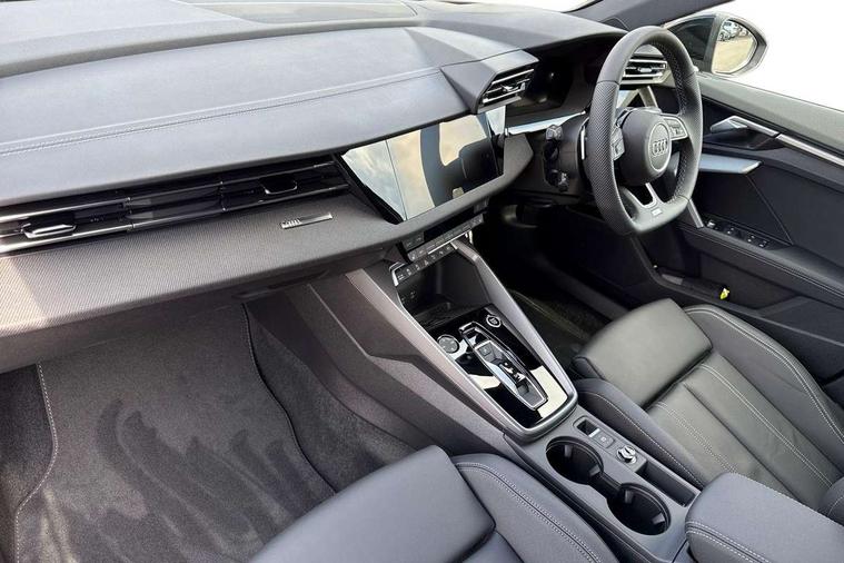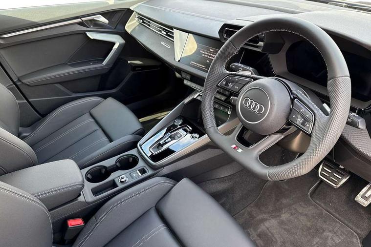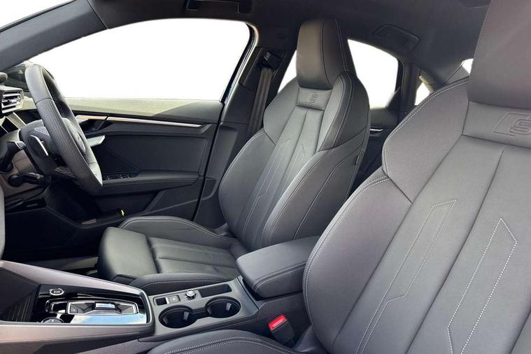 Adjustable speed limiter, Audi drive select, Audi smartphone interface with app store includes wireless Apple carplay, Android auto and Amazon alexa integration, Audi virtual cockpit plus - 12.3" full HD resolution dynamic digital instrument cluster, Automatic start/stop system with recuperation, Bluetooth interface, Camera based traffic sign recognition, Collision avoidance assistant, Cruise control, Distraction and Fatigue warning, e-Call (emergency call), Electromechanical power speed sensitive steering, Emergency assist, Lane departure warning system, MMI Navigation Plus with high resolution 10.1" colour touch screen display, Park Assist with parking system Plus, Service indicator, Trip computer, Voice control system with natural language interaction, Sports suspension, Audi Phonebox light with wireless charging, Audi sound system - 10 loudspeakers including centre loudspeaker and subwoofer, DAB Digital radio, USB ports with charging function in the rear, Acoustic glass windscreen, All weather light, Anthracite grey Audi rings (front and rear), Audi beam uses LEDs to project the Audi logo onto the ground as you exit your A3, Auto dimming frameless rear view mirror, Automatic dynamic range control, Black accents front and rear bumpers, Black accents in the area of the Audi single frame grille, Black accents window trims strips, Dipped beam, main beam, position light and turning light, Electrically adjustable/heated/folding/auto dimming door mirrors with integrated LED indications + kerb view function for passenger side, Exterior model badging, Front and rear side air inlets in grained matt black with dark liquid chrome frame, Front electric windows, Heat insulating glass windscreen, Illuminated door sills with aluminium inserts at the front with S logo, Intersection light, LED 3rd brake light, LED brake lights, LED daytime running x3, LED headlights with LED rear lights and dynamic rear indicators, LED rear number plate lights, LED reverse light, LED tail lights, Light and rain sensors, Manoeuvring light, Motorway light, Privacy glass - dark tinted rear window, rear door and side windows, Rear boot, Rear diffuser and grill in grained matt black with inlay in dark liquid chrome, Rear electric windows, Rear side wing doors, Static Cornering lights, 12V socket and storage compartment in front centre console, 3 seat bench in 2nd row, 3 spoke flat bottomed leather multifunction sport steering wheel with gear shift paddles, 3-zone deluxe automatic air conditioning, 4 way electrically adjustable lumbar support for driver and front passenger, 40/20/40 split folding rear seat bench, Black cloth headlining, Black front and rear floor mats, Front and rear centre armrest in artificial leather with contrasting stitching on armrests and instrument panel, Front and rear headrests, Heated front seats, Height and reach adjustable steering wheel, Manual boot compartment lid, Manually adjustable front seats, Rear centre armrest with cupholder, S badging on the steering wheel, Seat side bolsters, Single front passenger seat, Stainless steel pedals and front footrest in black, Twin leather upholstery with front sports seats S embossed logo, Aluminium interior elements pack - A3, 3x3 point rear seat belts, Driver and front passenger airbag with passenger airbag deactivation, Electronic Stabilisation Control (ESC) including ABS, ASR and EDL, First aid kit with warning triangle and 2 safety vests, Front side airbags with head airbags and interaction airbag, Hill hold assist, Pre-sense front with pedestrian and cyclist detection, Seatbelt monitoring, Tyre pressure loss indicator, Anti theft alarm, Anti-theft wheel bolts, Electronically operated child locks, Immobiliser, Remote central locking with safelock, Black dashboard,