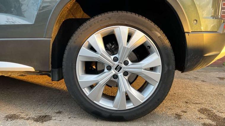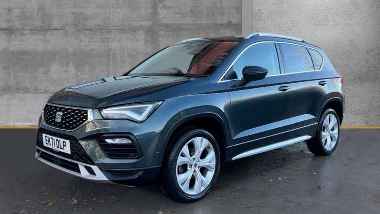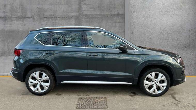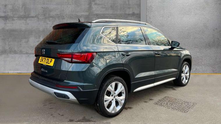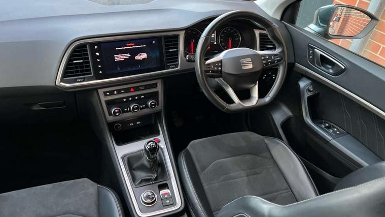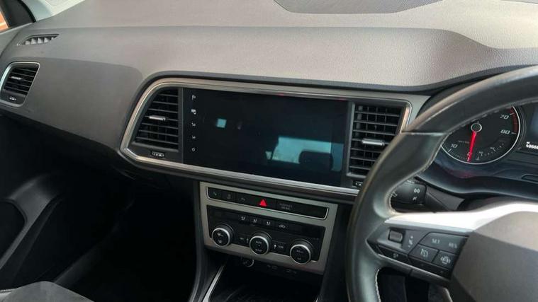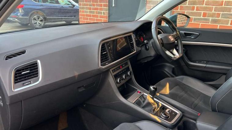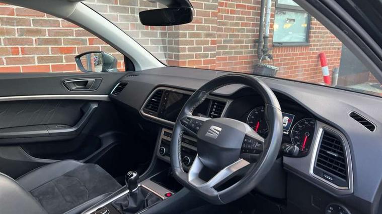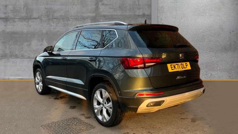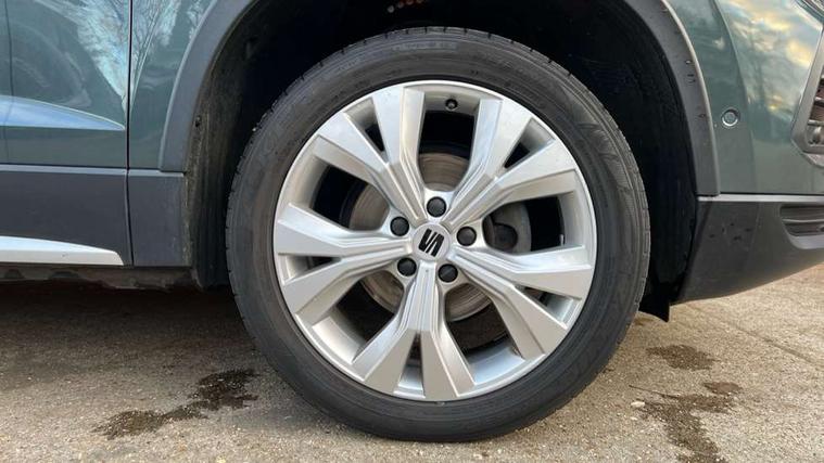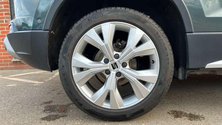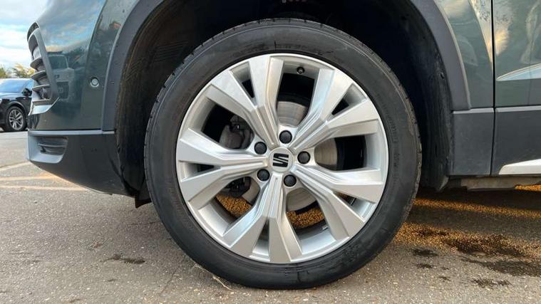 E-call, Outside temperature gauge, Progressive power assisted steering, Rear view camera, SEAT drive profile with driving experience button - Normal, Sport, Eco and Individual mode, steering and throttle response, Self parking functionality (includes front and rear parking sensors), Trip computer, Wireless full link smartphone integration, Wireless phone charger, Steering wheel mounted audio/phone controls, Black simulated exhaust pipes, Body colour bumpers, Body coloured wheel arch surrounds, Chrome front grille frame, Chrome roof rails, Chrome side window trim, Dark tinted rear windows, Daytime running lights, Door mirrors with welcome light silhouette, Dynamic headlight range control with self adjusting whilst driving, Electric adjustable/heated/folding door mirrors, Front and rear electric windows, Front grille hot stamping, Full LED headlamps with lens and LED front fog lamps with cornering function, Illuminated aluminium front door sill, LED rear tail lights with dynamic indicators, Rear fog lights, Rear side wing doors, Rear wash/wipe, Reflex silver side mouldings, 12V socket in front, 3 seat bench in 2nd row, 60/40 split folding rear seat, Dual zone climate control, Front and rear head restraints, Front centre armrest, Front seat back storage pockets, Height adjustable driver and passenger seat with lumbar adjustment, ISOFIX points in outer rear seats with top tether anchorage points, Leather steering wheel and gear knob, Microsuede upholstery with front comfort seats, Rear armrest and easy back seat release mechanism from boot, Single front passenger seat, Storage compartment under driver's seat, Convenience pack - Ateca, Interior lighting pack - Ateca, Navigation system pack with DAB - Ateca, Safe and driving pack - Ateca, 3x3 point rear seatbelts, ABS, Traction control system (TCS), Electronic stability control (ESC) and Electronic differential lock system (XDS), Airbags - Driver and front passenger airbag with deactivation, front side, two curtain and driver's knee airbags, Electric parking brake with auto hold function, Front and rear seatbelt reminder, Hill hold control, Manual rear child locks, Tiredness recognition system, Traction control, Tyre pressure monitoring system, Alarm, Keyless entry, Locking wheel bolts, Chrome interior detailing, 18" Brillaint silver alloy wheels,