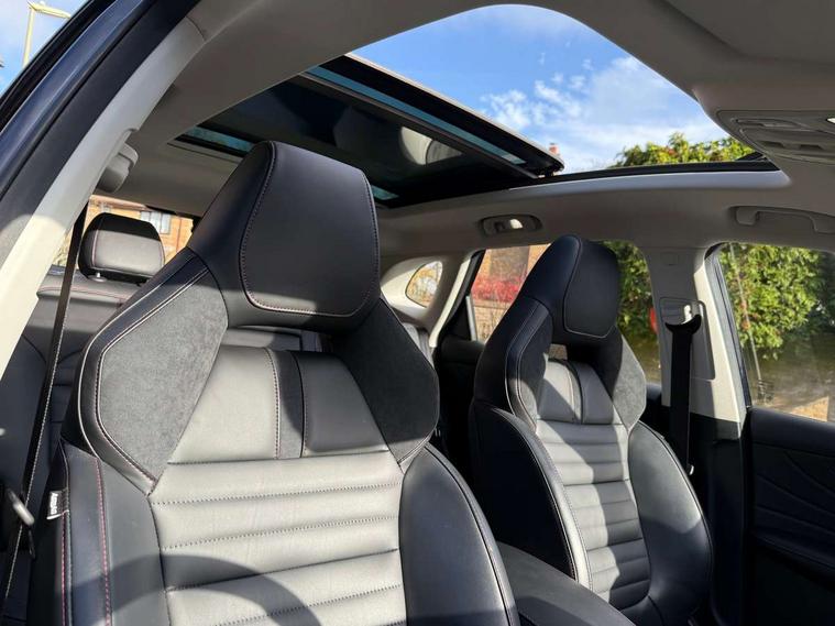 10.1" colour touchscreen, 12.3" Full digital driver information display, Adaptive cruise control, Android Auto, Apple CarPlay, Blind Spot Detection (BAS), Bluetooth connectivity, Driving modes, Emergency call service, Intelligent speed assist, Lane keep assist system (LAS) with Lane departure warning system (LDWS), PAS, Power tailgate, Rear cross traffic alert, Rear parking camera, Rear parking sensors, Satellite navigation system, Traffic jam assist, Trip computer, USB mobile phone charging function, 6 speaker audio system, DAB audio, Auto dimming rear view mirror, Automatic headlights, Body colour electric adjustable heated door mirrors, Electric folding door mirrors, Follow me home headlights, Front and rear aero wiper, Front and rear electric windows with one-touch up/down, Front fog lights, Intelligent high beam, LED Bi-Function headlights, LED centre brake light, LED daytime running lights, LED front and rear sequential indicators, Panoramic sky roof, Rain sensing wipers, Rear side wing doors, Silver roof rails, 12V power sockets, 2nd row 60/40 split fold seat, 2nd row seat with 2 stage incline adjustment, 3 rear headrests, 3 seat bench in 2nd row, 4 way electric adjustable passenger seat, 6 way electric adjustable drivers seat + lumbar support, Ambient lighting, Dual zone automatic air conditioning, Front centre sliding armrest with storage compartment, Front headrests, Heated front seats, Height and reach adjustable steering wheel, ISOFIX restraints on outer rear seats x2, Leather steering wheel, Metal sports pedals, Single passenger seat, Sports Style Front Seats with One-Piece Back, Steering wheel paddle shift, 3x3 point rear seatbelts, ABS/EBD, Active emergency braking with pedestrian/Bicycle detection, Anti rolling protection, Cornering brake control (CBC), Driver, passenger and 2nd row rear seat belt reminder, Dual front airbags, Electric parking brake with auto hold function, ESP, Front passenger airbag deactivation switch, Front seat belt height adjuster, Front seatbelts (3-point + pretensioner + load limiter), Front side airbags, Hill descent control, Hill launch assist, Manual rear child locks, Rear outer seatbelt pretensioner and load limiter, Side curtain airbags, Tyre pressure monitoring system, Alarm system and engine immobiliser, Keyless entry and push button start system, Remote central locking, Speed sensing door locks, 18" Hurricane diamond cut alloy wheels, Tyre repair kit,