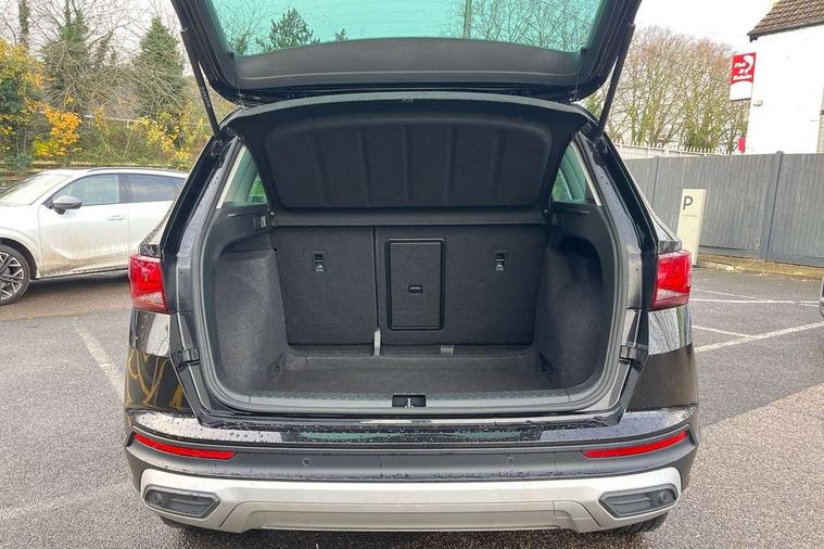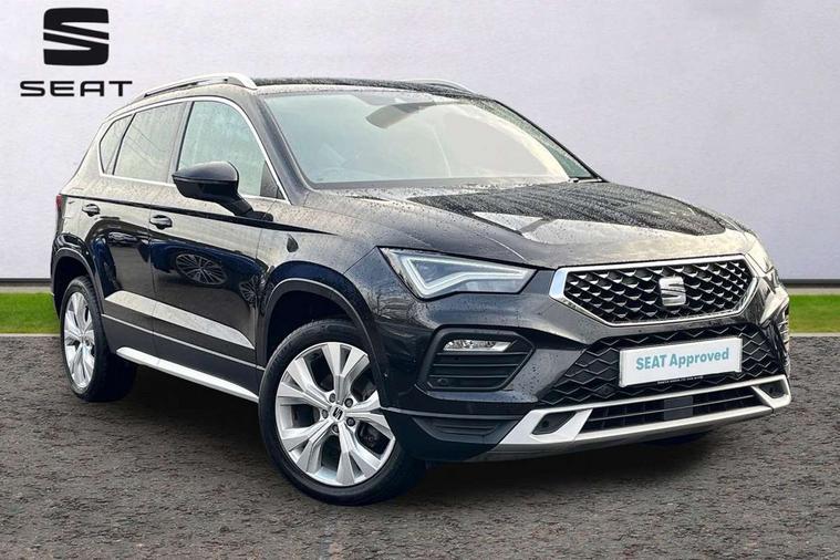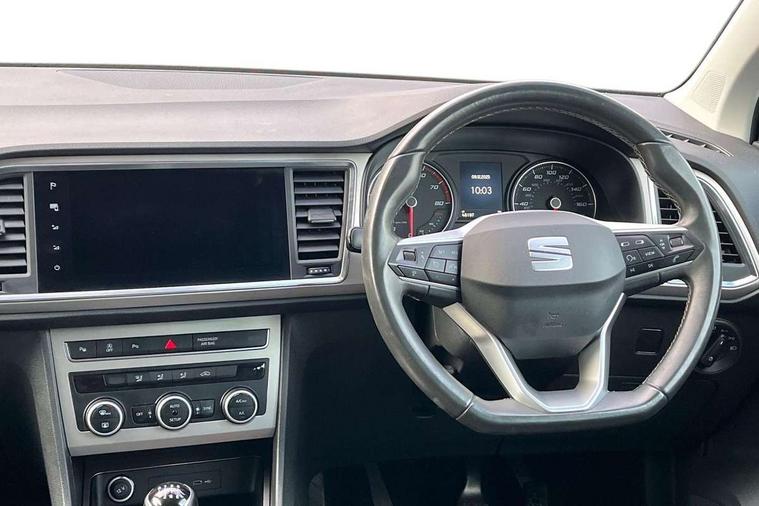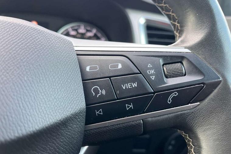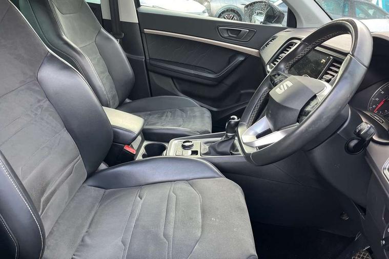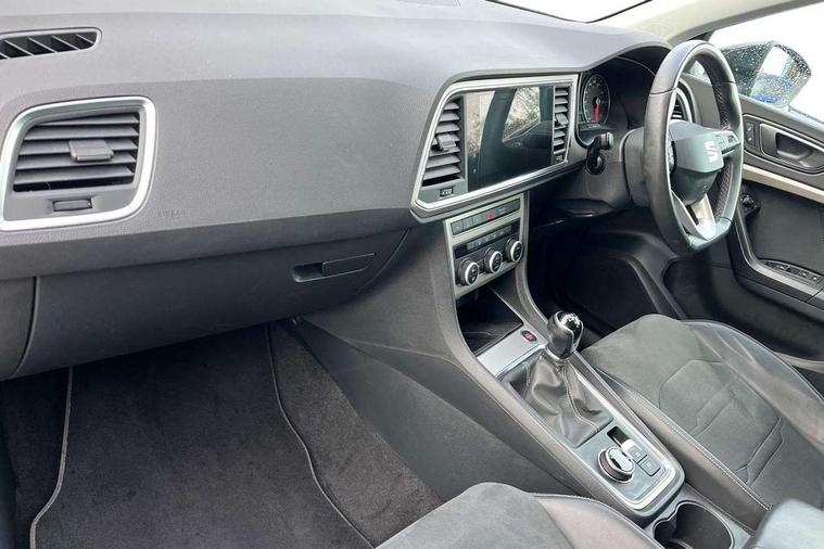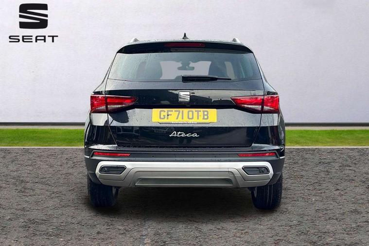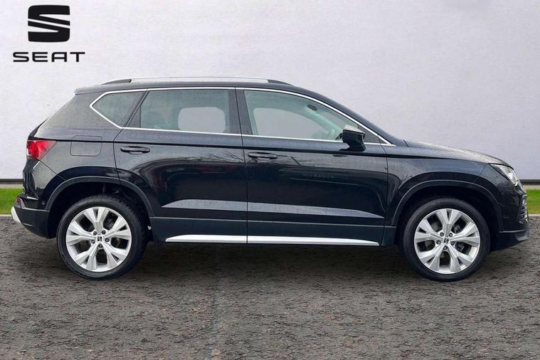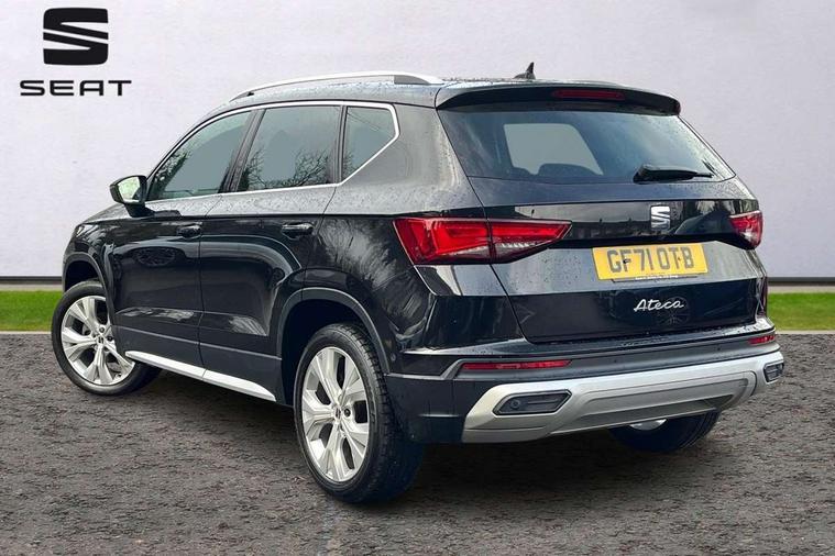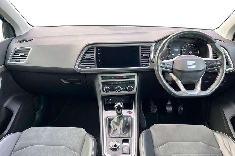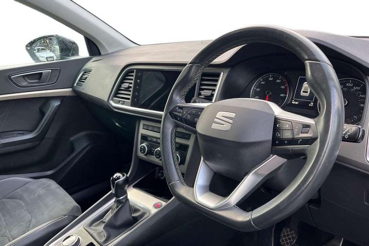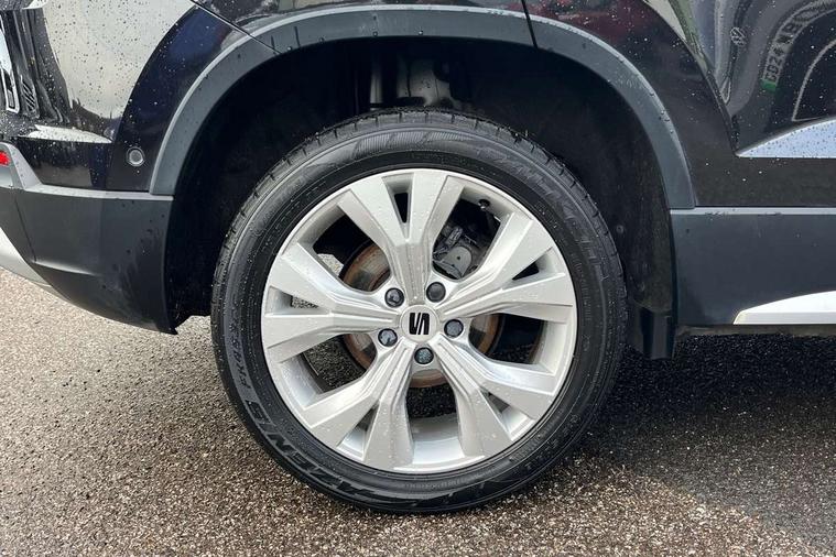E-call, Outside temperature gauge, Progressive power assisted steering, Rear view camera, SEAT drive profile with driving experience button - Normal, Sport, Eco and Individual mode, steering and throttle response, Self parking functionality (includes front and rear parking sensors), Trip computer, Wireless full link smartphone integration, Wireless phone charger, Steering wheel mounted audio/phone controls, Black simulated exhaust pipes, Body colour bumpers, Body coloured wheel arch surrounds, Chrome front grille frame, Chrome roof rails, Chrome side window trim, Dark tinted rear windows, Daytime running lights, Door mirrors with welcome light silhouette, Dynamic headlight range control with self adjusting whilst driving, Electric adjustable/heated/folding door mirrors, Front and rear electric windows, Front grille hot stamping, Full LED headlamps with lens and LED front fog lamps with cornering function, Illuminated aluminium front door sill, LED rear tail lights with dynamic indicators, Rear fog lights, Rear side wing doors, Rear wash/wipe, Reflex silver side mouldings, 12V socket in front, 3 seat bench in 2nd row, 60/40 split folding rear seat, Dual zone climate control, Front and rear head restraints, Front centre armrest, Front seat back storage pockets, Height adjustable driver and passenger seat with lumbar adjustment, ISOFIX points in outer rear seats with top tether anchorage points, Leather steering wheel and gear knob, Microsuede upholstery with front comfort seats, Rear armrest and easy back seat release mechanism from boot, Single front passenger seat, Storage compartment under driver's seat, Convenience pack - Ateca, Interior lighting pack - Ateca, Navigation system pack with DAB - Ateca, Safe and driving pack - Ateca, 3x3 point rear seatbelts, ABS, Traction control system (TCS), Electronic stability control (ESC) and Electronic differential lock system (XDS), Airbags - Driver and front passenger airbag with deactivation, front side, two curtain and driver's knee airbags, Electric parking brake with auto hold function, Front and rear seatbelt reminder, Hill hold control, Manual rear child locks, Tiredness recognition system, Traction control, Tyre pressure monitoring system, Alarm, Keyless entry, Locking wheel bolts, Chrome interior detailing, 18" Brillaint silver alloy wheels,