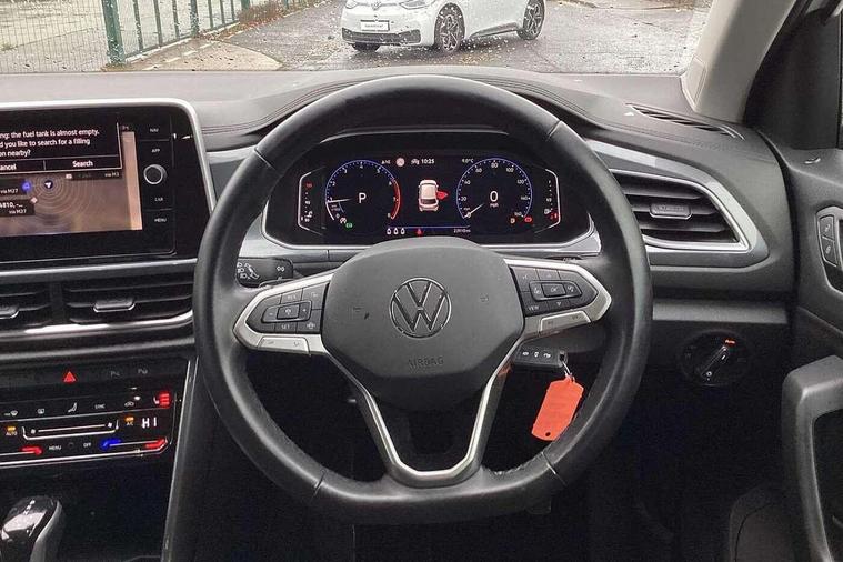 10.25" Digital cockpit pro, Bluetooth mobile phone interface, Driver alert system with fatigue detection, Driver tips and journey analysis, Emergency call service, Lane keeping system Lane Assist, Modified key software - reduce switch off time for key status change to Long no motion, Online services, Park assist including front and rear parking sensors, Service interval indicator, Tailgate/trunk lid release from outside, Think blue trainer driver tips and journey analysis, Warning sound and light for front seatbelts unfastened, Wireless app connect, Battery regeneration during braking, Start/stop function with battery regeneration, Diversity antenna for FM reception, Front and rear 6 speakers, Music playback - MP3, WMA and AAC files, Premium USB cable in choice of either Apple or Android smartphone compatibility, SD card slot, Simultaneous pairing of 2 compatible mobile devices, Title and cover art display, We Connect and We Connect Plus functionality, 3rd brake light, Auto dimming interior rear view mirror, Automatic hazard lights activation under emergency braking, Automatic headlight control with LED separate daytime running lights with coming/leaving home function, Body colour sports bumpers with silver metallic underbody fascia, Dynamic headlight range control with self adjusting whilst driving, Extended roof spoiler, Exterior mirrors aspherical on driver side, convex on front passenger side, External USB type C socket and charging sockets, Front windscreen wiper with intermittent wipe and 4 position delay, Heated rear window, LED Plus headlamps, LED rear combination lamps, LED rear number plate lights, LED tail lamp rear comination lamps, Light mode for poor weather, rain, fog or snow, Power windows with comfort operation and circuit breaker, Rain sensor, Rear exhaust tailpipe, Rear fog light on one side and reversing lights on both sides, Rear side wing doors, Rear wash/wipe with intermittent wipe setting, Remote electrically foldable door mirrors, puddle lights and reverse activated passenger's door mirror, 12V power socket in centre console, 3 rear head restraints, 3 seat bench in 2nd row, 4 load lashing points in luggage compartment, Air care climatronic air conditoning system with active combination filter and 2-zone temperature control, Chrome plated radiator grille inserts, air vent surrounds and light switch surrounds, Door and side trim panel with leatherette insert, Drawer under drivers seat, Front + rear carpet mats, Front centre armrest, Front comfort sports seats, Front cupholders x 2, Front footwell illumination, Instrument lighting, white adjustable panel illumination, Interior ambient lighting and surround lighting, Interior light delay, Isofix child seat preparation, Leather gearshift handle, LED interior light with switch off delay/dimmer and 2 front/rear LED reading lights, Load-through provision with cup holder when folded down ('Unsplit rear seat bench, split folding backrest, with centre armrest), Luggage compartment lighting, Non-folding front passenger seat backrest, Single front passenger seat, Storage compartment in left and right luggage area, Storage compartment in rear doors, Storage compartments in driver and front passenger doors, Sunvisors with illuminated vanity mirrors, Variable boot floor, height adjustable and removable, Driver assistance pack without proactive passenger protection - T-Roc, 3 point height adj front seatbelts + pretensioners, 3 point seatbelts in outer rear with ECE label, ABS, Child locks on rear doors, Driver and front passenger airbag with front passenger airbag deactivation, Driver and front passenger safety-optimised head restraints, Drivers seatbelt reminder, Electronic parking brake, Electronic Stability Control (ESC) inc EDL (Electronic Differential Lock) and ASR (Traction Control), Front and rear passengers curtain airbag system including front side airbags, Front assist with city emergency braking and pedestrian monitoring, Front seat side impact airbags, Predictive pedestrian protection, Rear disc brakes, Single tone horn, Tyre pressure loss indicator, Volkswagen roadside assistance, Alarm with interior protection, Anti-theft alarm system with interior monitoring, backup horn, and towing protection, Remote central locking with SAFELOCK, radio remote control with 2 remote control folding keys, Trims for alloy wheels,