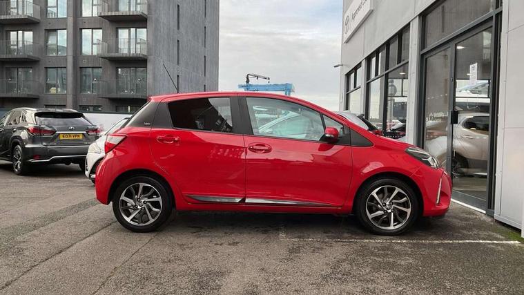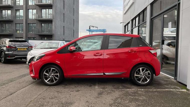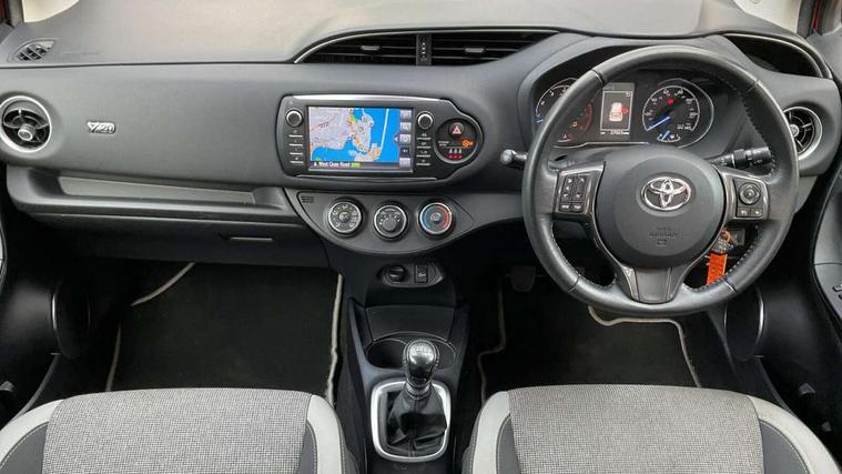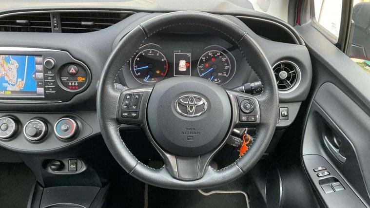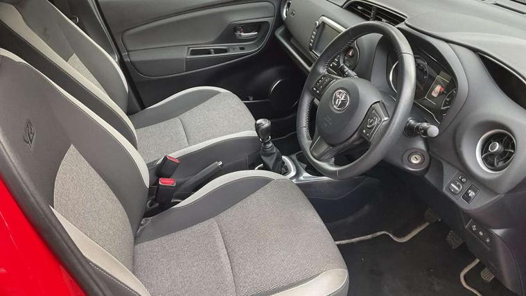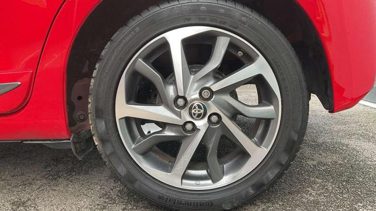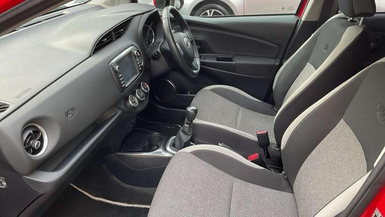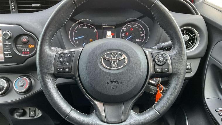 4.2" coloured LED TFT multi information display, Analogue speedometer, Analogue tachometer, Auto speed limiter, Bluetooth connectivity, Cruise control, External temperature gauge, Fuel indicator with low level warning, Key reminder warning, Lights on warning, Multi information display switches on steering wheel, Power Steering, Reversing camera, Trip computer, 6 speakers, Auxiliary input socket, Steering wheel mounted audio/telephone switches, Toyota Touch 2 with DAB, USB connection, Auto up and down function on drivers window, Automatic wipers, Bi-tone grey roof, Black lower front grille, Body colour bumpers, Body colour door handles, C pillar decal, Daytime running lights, Electric adjustable heated door mirrors, Electric front windows, Follow me home headlights, Front fog lights, Grey contrasting colour door mirrors, Grey door moulding, Grey door side sills, Grey front grille and fogs, Headlight cut-off reminder, LED High mounted stop lamp, Manual dimming rear view mirror, Privacy glass, Projector headlights, Rain sensitive windscreen wipers, Rear combination lights bulb type, Rear window defogger, Rear wiper, Turning signal integrated indicators in door mirrors, Y20 Badging, 12v power outlet - front, 3 adjustable rear headrests, 3 spoke leather steering wheel, 60/40 split folding rear seat, Active headrests, Boot light, Data Communication Module (DCM) connected services, Driver and front passenger personal light, Driver and front passenger Whiplash Injury Lessening seats, Fabric upholstery, Front and rear cup holders, Front map reading lights, Front seats with lumbar support, Glovebox, Height adjustable driver's seat, Height adjustable front head restraints, Illuminated entry system, Isofix seat fixing, Leather gearshift, Manual air conditioning, Map pockets on the backs of the front seats, Pollen filter, Removable rear parcel shelf, Sliding front seats, Soft touch inner door garnish, Tilt/telescopic steering column, Y20 badge interior and in seat trim, 3 point seatbelts on all rear seats, ABS+EBD+Brake assist, Collision mitigation braking system, Emergency brake light system (EBS), Front passenger airbag on/off switch, Front seatbelt reminder, Height adjustable front seatbelts with pre-tensioners and load limiters, Hill start assist control (HAC), Rear child proof door locks, Rear seat belt reminder, Road sign information display, Seatbelt warning lamp and buzzer, Supplemental restraint system (SRS) airbags - 7 airbags including driver, front passenger, curtain, side and knee airbags, Toyota safety sense including Road sign assist, Pre collision system, auto high beam and lane departure alert), Tyre pressure warning system, Vehicle stability control VSC + traction control, Engine immobiliser, Power and remote door locking, Interior satin accents, Soft touch instrument panel, 16" 10 spoke grey machined alloy wheels, Space saver spare wheel,