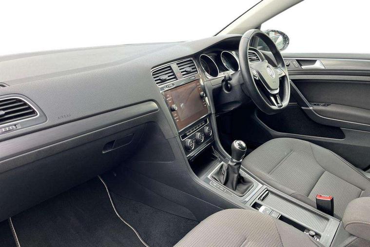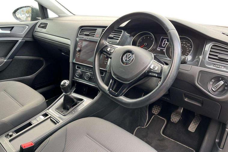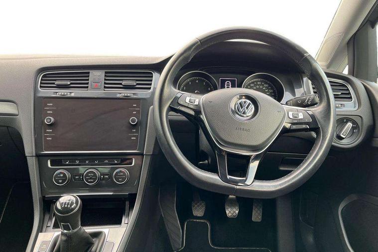 Brushed dark silver decorative inserts in dash and door panels, Chrome plated air vent surround, Chrome-plated light switch surround, Polar night black decorative inserts in centre console, Convenience Pack - Golf, Mirror pack - Golf, Winter pack - Golf, Steel space saver spare wheel, Alarm with interior protection and deactivation via infotainment system, Electronic engine immobiliser, Composition media system, DAB Digital radio receiver, Driver Personalisation profile selection, MP3/WMA compatability, Multi device interface (MDI) via USB connection, Premium USB cable in choice of either Apple or Android smartphone compatibility, SMS Functionality, Title and cover art display, USB and SD card connectivity, Volkswagen media control, 3 rear three point seatbelts, Airbags - Driver's and front passenger's, curtain airbag, Driver's knee, front side impact and passenger's airbag deactivation switch, Anti-lock Braking System (ABS) with Hydraulic Brake Assist (HBA), Automatic post collision braking system, Child locks on rear doors, Driver/Passenger optimised head restraints, Electronic parking brake with auto hold, Electronic stability control (ESC) including Electronic differential lock (EDL) and ASR (Traction control) with deactivation via infotainment system, Front ventilated disc brakes and rear disc brakes, Pre crash preventive occupant protection, Three point height adjustable front seatbelts with tensioners, Tyre pressure loss indicator, Black front air intake and radiator grille with chrome insert, Black rear diffuser, Body colour bumpers, Body colour door handles, Body colour door mirrors with integrated indicators, Dusk sensor + automatic driving lights, Electric front windows, Electric rear windows, Electrically adjustable and heated door mirrors, Fully galvanised body, Heated rear windscreen, High level 3rd brake light incorporating LED Technology, LED front fog lights with static cornering light function, Range adjustable headlights via infotainment system with LED daytime running lights, Rear fog lamp, Rear number plate lights incorporating LED technology, Rear tinted glass 65% light absorbing from B pillar backwards, Rear window aerial, Rear window wash/wipe with intermittent wipe, Reflectors in all doors, Tailgate with integrated rear roof spoiler, Windscreen wipers/ intermittent wipe + 4 position delay, 12V socket in luggage compartment, 3 rear headrests, 4 load lashing points in luggage compartment, 60/40 split folding rear seat backrest, Bag hook in luggage compartment x 2, Climate control - 2 zone electronic air conditioning with automatic air recirculation and allergy filter, Cooled glovebox, Cover for storage compartment in centre, Dust/pollen filter, Front and rear reading lights X 2, Front centre armrest with storage compartment and two rear air vents, Front seat back storage pockets, Grab handles front x 2, rear x 2 with integrated coat hooks, Height and reach adjustable steering wheel, Illuminated vanity mirrors, Instrument lighting white adjustable panel illumination, Interior light delay, Isofix preparation for 2 rear child seats, Load through provision with rear centre armrest and cupholders x2, Luggage compartment lighting, Overhead storage box, Pearl grey headlining, Storage box in luggage compartment, Storage compartment in roof console with cover, Storage compartments in centre console, Storage compartments in front doors, Storage compartments in rear doors, Stowable luggage compartment cover, Sun visors, Variable boot floor, height adjustable and removable, 'Lights On' Reminder warning buzzer, ACC - Adaptive cruise control with front assist, forward collision warning, distance monitoring, city emergency brake and speed limiter, Bluetooth telephone and audio connection for compatible devices, Brake pad wear indicator warning light, Driver alert system, Driving Mode Selection with four preset modes - Eco, normal, sport or individual modes, Multifunction computer with visual gear change recommendation for fuel consumption, Power assisted speed sensitive electro-mechanical steering, Push tank flap, Speed limit display, Speedo, rev counter, electronic odometer, trip, service interval display, exterior temperature and fuel gauge, Stop/start system, Think blue trainer driver tips and journey analysis, Warning buzzer and light for front seatbelts unfastened, Battery regeneration during braking, XDS electronic differential lock,