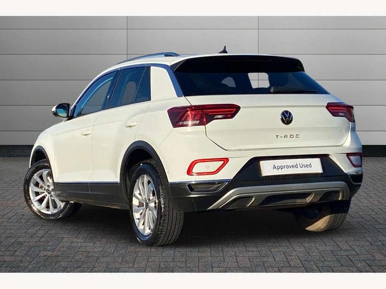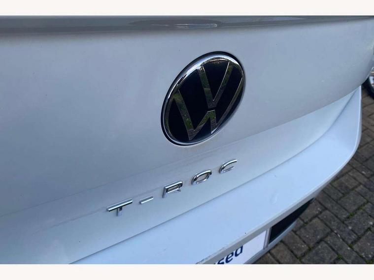 10.25" Digital cockpit pro, Bluetooth mobile phone interface, Driver alert system with fatigue detection, Driver tips and journey analysis, Dynamic road sign display, Emergency call service, Lane keeping system Lane Assist, Modified key software - reduce switch off time for key status change to Long no motion, Online services, Park assist including front and rear parking sensors, Power assisted speed sensitive steering, Service interval indicator, Tailgate/trunk lid release from outside, Think blue trainer driver tips and journey analysis, Warning sound and light for front seatbelts unfastened, Wireless app connect, Battery regeneration during braking, Front shock absorption, Rear shock absorption chassis with increased ride height, Start/stop function with battery regeneration, Diversity antenna for FM reception, Music playback - MP3, WMA and AAC files, Premium USB cable in choice of either Apple or Android smartphone compatibility, SD card slot, Simultaneous pairing of 2 compatible mobile devices, Title and cover art display, We Connect and We Connect Plus functionality, 3rd brake light, Auto dimming interior rear view mirror, Automatic hazard lights activation under emergency braking, Automatic headlight control with LED separate daytime running lights with coming/leaving home function, Body colour sports bumpers with silver metallic underbody fascia, Dynamic headlight range control with self adjusting whilst driving, Extended roof spoiler, Exterior mirrors aspherical on driver side, convex on front passenger side, External USB type C socket and charging sockets, Front windscreen wiper with intermittent wipe and 4 position delay, Heated rear window, LED rear combination lamps, LED rear number plate lights, LED tail lamp rear comination lamps, Light mode for poor weather, rain, fog or snow, Power windows with comfort operation and circuit breaker, Rain sensor, Rear exhaust tailpipe, Rear fog light on one side and reversing lights on both sides, Rear side wing doors, Rear wash/wipe with intermittent wipe setting, Remote electrically foldable door mirrors, puddle lights and reverse activated passenger's door mirror, 12V power socket in centre console, 3 rear head restraints, 3 seat bench in 2nd row, 4 load lashing points in luggage compartment, Air care climatronic air conditoning system with active combination filter and 2-zone temperature control, Chrome plated radiator grille inserts, air vent surrounds and light switch surrounds, Door and side trim panel with leatherette insert, Drawer under drivers seat, Front + rear carpet mats, Front centre armrest, Front comfort sports seats, Front cupholders x 2, Front footwell illumination, Instrument lighting, white adjustable panel illumination, Interior ambient lighting and surround lighting, Interior light delay, Isofix child seat preparation, Leather gearshift handle, LED interior light with switch off delay/dimmer and 2 front/rear LED reading lights, Load-through provision with cup holder when folded down ('Unsplit rear seat bench, split folding backrest, with centre armrest), Luggage compartment lighting, Non-folding front passenger seat backrest, Single front passenger seat, Storage compartment in left and right luggage area, Storage compartment in rear doors, Storage compartments in driver and front passenger doors, Sunvisors with illuminated vanity mirrors, Variable boot floor, height adjustable and removable, Driver assistance pack without proactive passenger protection - T-Roc, 3 point height adj front seatbelts + pretensioners, 3 point seatbelts in outer rear with ECE label, ABS, Child locks on rear doors, Driver and front passenger airbag with front passenger airbag deactivation, Driver and front passenger safety-optimised head restraints, Drivers seatbelt reminder, Electronic parking brake, Electronic Stability Control (ESC) inc EDL (Electronic Differential Lock) and ASR (Traction Control), Front and rear passengers curtain airbag system including front side airbags, Front assist with city emergency braking and pedestrian monitoring, Front disc brakes, Front seat side impact airbags, Predictive pedestrian protection, Rear disc brakes, Single tone horn, Tyre pressure loss indicator, Volkswagen roadside assistance, Anti-theft alarm system with interior monitoring, backup horn, and towing protection, Remote central locking with SAFELOCK, radio remote control with 2 remote control folding keys, Trims for alloy wheels,