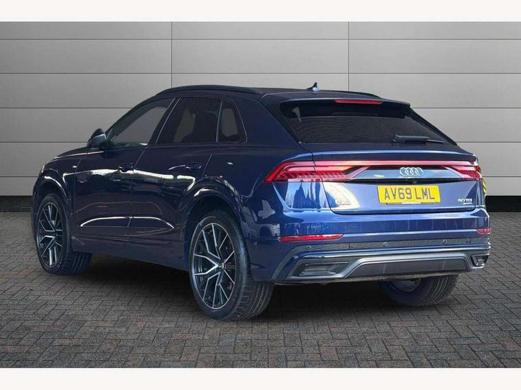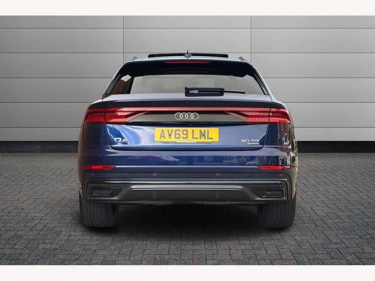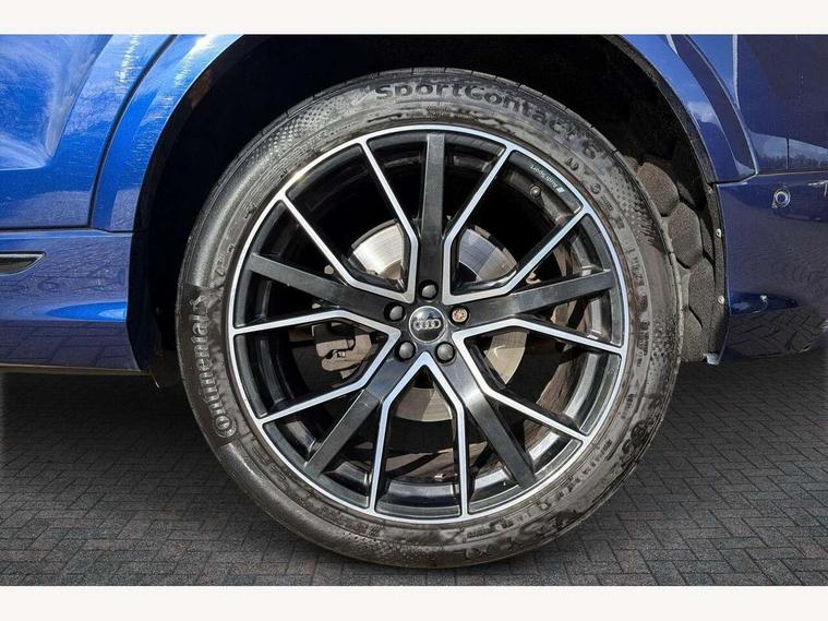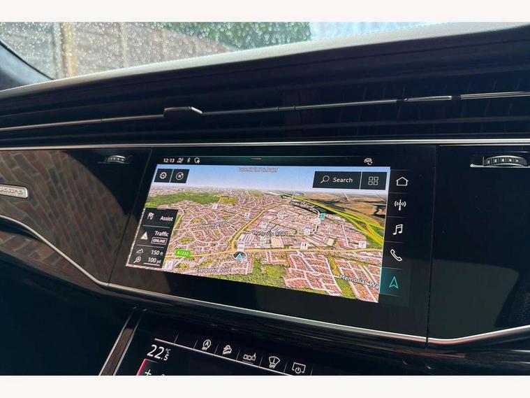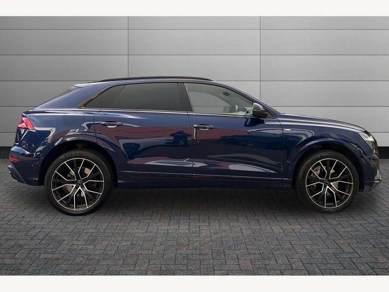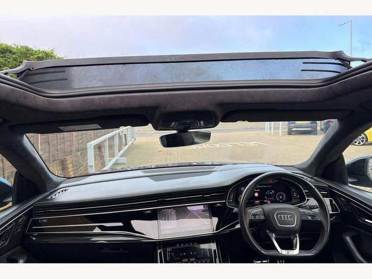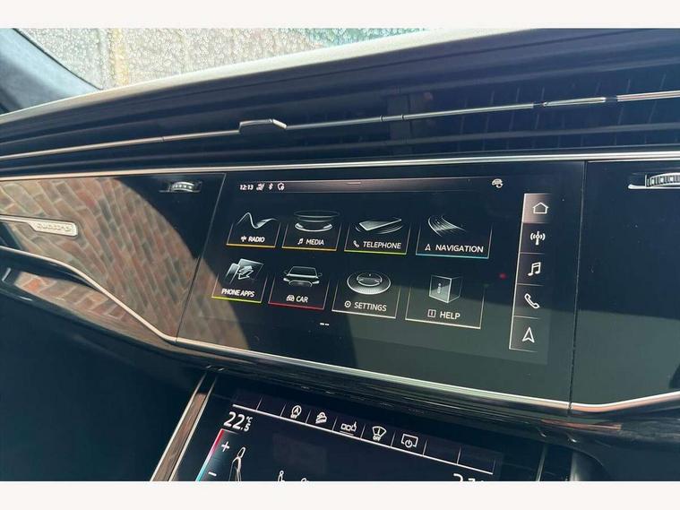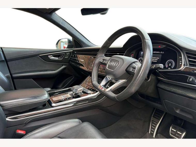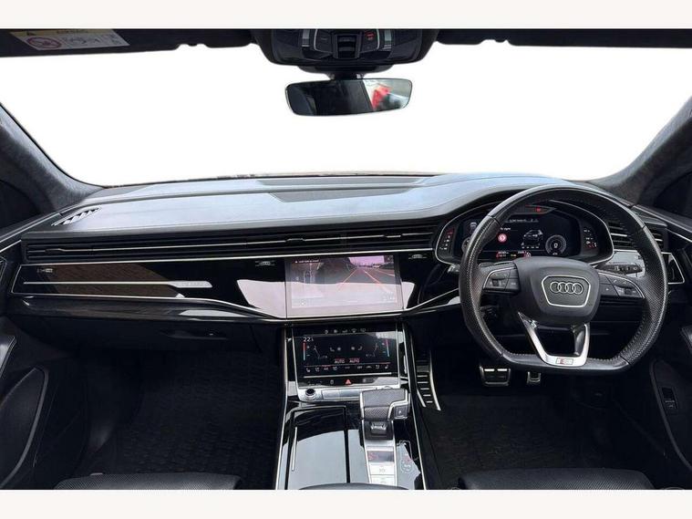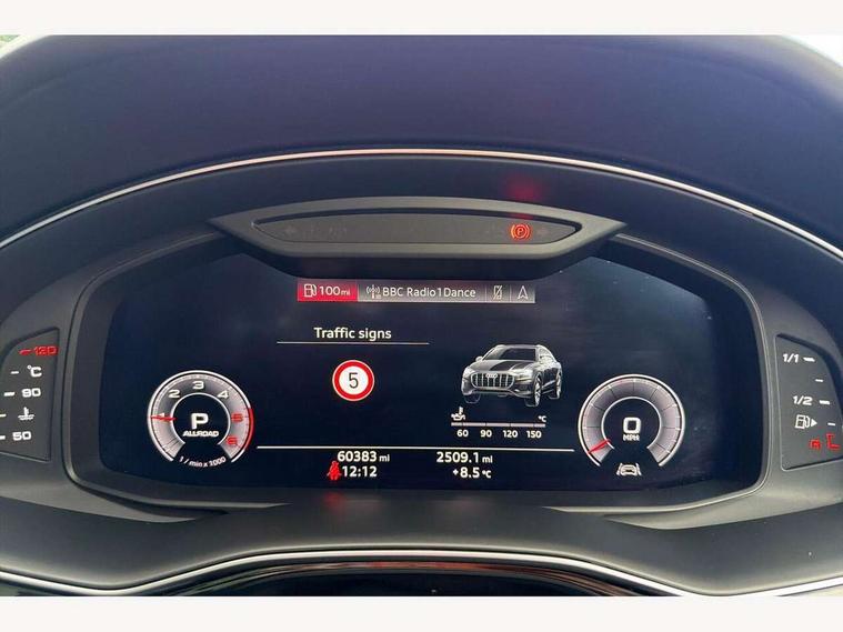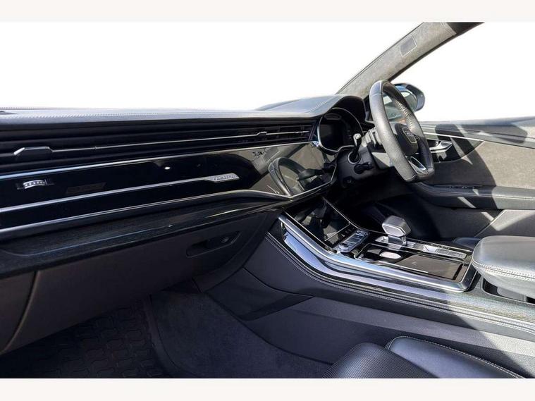 10.1" and 8.6" Dual colour touchscreens, All wheel steering, Audi connect safety and service (e-call), Audi drive select, Audi parking system plus with front and rear sensors, Audi phone box with wireless charging, Audi smartphone interface, Audi virtual cockpit plus, Automatic start/stop system, Electro-mechanical PAS, Head up Display, Low washer fluid indicator, MMI - Multi Media Interface control system, MMI navigation plus with MMI touch, Natural voice recognition, On board computer, Operating buttons in black, glass look with haptic feedback, Power door closure, Power operated tailgate, Service interval indicator, Adaptive air suspension, Diesel particulate filter, Audi music interface at rear, Audi music interface with 2 USB ports with charge and data functions in the rear, Aux-in socket, DAB Digital radio, Acoustic windscreen, Adaptive windscreen wipers with integrated washer jets, Audi HD Matrix LED headlights with dynamic front and rear indicators, Auto dimming frameless rear view mirror, Coming/leaving home lighting function, Electric front+rear windows, Electric panoramic glass sunroof, Electrically adjustable/heated/folding/dimming door mirrors with kerb view includes integrated LED indications + kerb view function for passenger side, Headlight washers, Heat insulating glass in windshield, LED signature daytime running lights, Platinum grey front spoiler lip and diffuser insert with honeycomb grille in black, Privacy glass - dark tinted rear and rear side windows from B-pillar backwards, Rain and light sensors, Rear wiper, S line side ventilation grille, 3 spoke flat bottomed high multi-function leather sport steering wheel with gearshift paddles, 4 zone deluxe automatic climate control, 4-way lumbar support for front seats, 40:20:40 split folding rear seat, Black Alcantara headlining, Comfort front centre armrest, Double sun visor with illuminated vanity mirror on driver and passenger side extendable, Driver and front passenger seat memory function for electrically adjustable front seats, Electric adjustable steering column with memory functionality, Electric sunblind for the rear side windows and manual sunblind for the rear window, Front head restraints, Front/rear floor mats, Heated front and outer rear seats, ISOFIX child seat mounting for front passenger seat and 2 outer rear seats with top tether child seat mounting for all 3 rear seats, Luggage compartment sill protection in stainless steel, Massage and ventilation function for front seats, Rear centre armrest with 2 cupholders, Rear headrests, Rear seat bench plus, Self-locking centre differential, Stainless steel pedals, Tool kit, Valcona leather upholstery + super sports seats with S embossed logo, City assist pack - Q8, Comfort and sound pack - SQ8, Extended leather pack - Q8, Titanium Black Styling Pack - Q8, Tour pack - Q8, 3 point seatbelts on all seats, Audi pre sense front, Driver and front passenger, front side and curtain airbags, Electromechanical parking brake, Electronic Stability Control (ESC) including ABS, ASR and EDL, Front passenger airbag deactivation, Hill descent control, Hill hold assist, Predictive pedestrian protection, Seatbelt monitoring, Traction control, Tyre pressure loss indicator, Warning triangle and first aid kit, Anti theft alarm with tow away protection, Anti-theft wheel bolts and wheel loosening detection, Immobiliser, Keyless go with remote central locking, Polished oak trim with grey finished, Tyre repair kit,