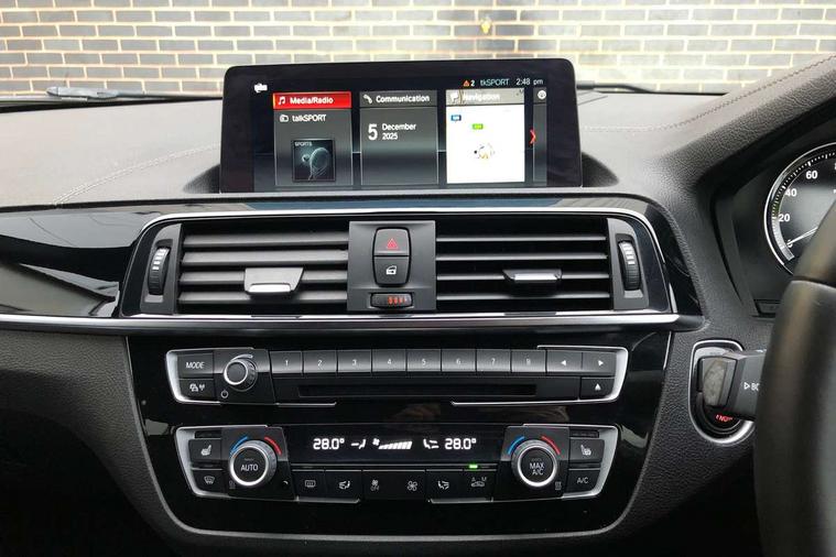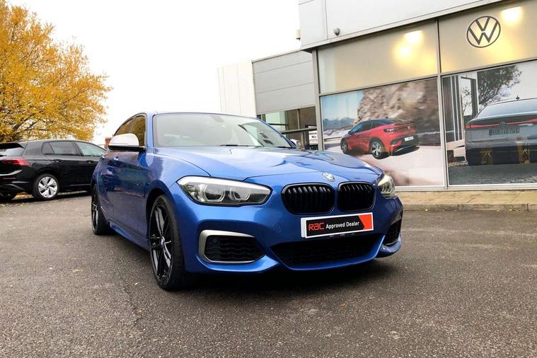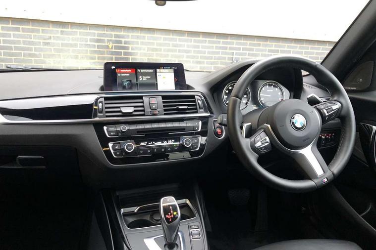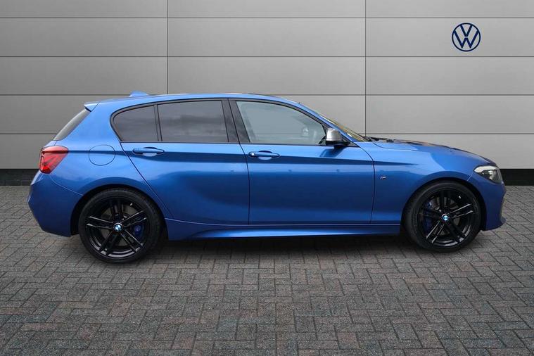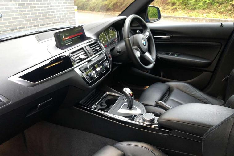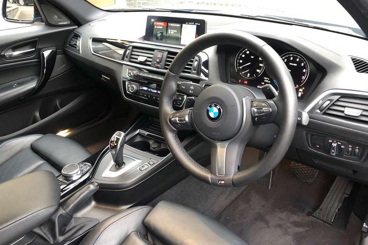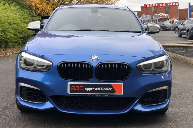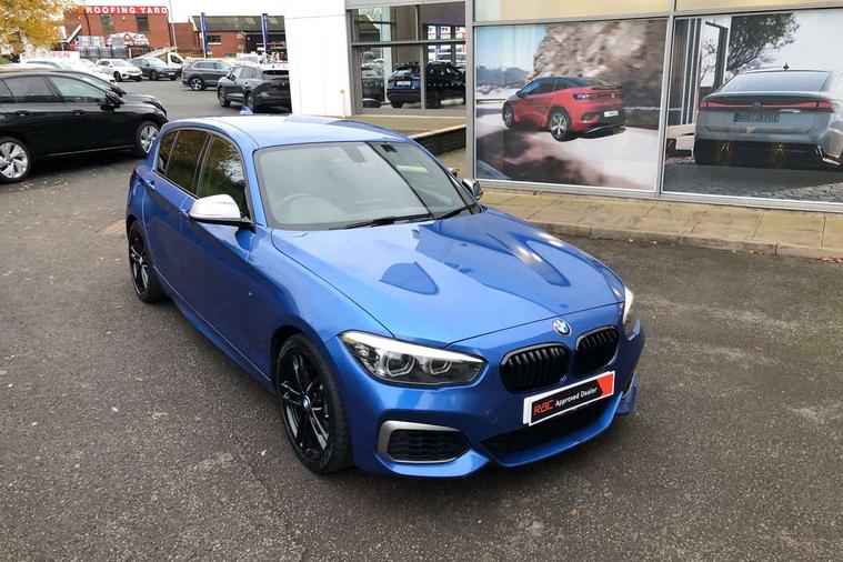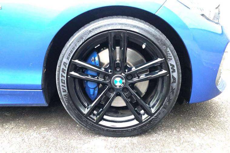 Automatic start/stop system, BMW Online services, BMW remote services, BMW Teleservices, Brake force display, Brake pad wear indicator in front and rear, Check Control warning system for monitoring of lights and door/luggage compartment open warning, Cruise control with brake assist, Eco pro mode, Instrument cluster with speedometer with miles per hour read out, tachometer and fuel gauge, Lights on warning by audio warning signal when ignition is switched off, Oil temperature display via on board computer in instrument cluster, On board computer - average speed+fuel consumption, service interval, clock/date, odometer/trip meter, outside temperature display and ice warning, On board diagnostics, Optimum shift indicator, Personal Profile, Real time traffic information, Speed limiter, Variable sport steering, Battery age recognition function, Drive Performance Control, Sport automatic transmission with Launch Control, Sports function on gearbox with steering wheel mounted gearshift paddles, BMW professional radio with CD player, DAB Digital radio, Harman/Kardon loudspeaker system, Body colour door handles, Body colour front and rear bumpers, Body colour roof mouldings, Clear lenses direction indicator lights, Dark chrome exhaust tailpipes in dual, round and split, Darkened rear lights with LED light bars, Daytime driving lights, Direction indicator side lights in exterior mirrors, Dynamic brake lights, Electrically adjustable heated door mirrors and washer jets, Ferric grey air blades, Ferric grey mirror caps, Follow me home headlights, Front and rear bumper system with replaceable deformation elements, Front and rear electric windows with open and close fingertip control, anti trap facility and comfort closing, Green tinted heat protection glazing, Headlight beam throw control, Heated windscreen washer jets, High gloss black kidney grille with black slats, High level third brake light, Lightweight engineering, M aerodynamic bodystyling, Nearside reverse light in rear light cluster, Offside rear fog lights, Rain sensor including auto headlights activation, Rear window aerial, Rear window wiper, Shark fin antenna, Sun protection glass, Visible VIN plate, Welcome lighting, 12V power socket in centre console, 12V power socket in passenger footwell, 60/40 split folding rear seat, Anthracite headlining, Anthracite Velour floor mats, Conditioned based service, Dakota leather upholstery, Door sill finishers with M140i designation, Four grab handles integrated in roof lining, Front and rear side armrest integrated into door trim, Front folding sliding armrest with storage compartment, Front head restraints, Front sports seats with electric side bolster adjustment, Front storage compartment in centre console and in door trim, Front/rear courtesy lights with soft on/off dimming, Glove box handle with chrome surround, Glovebox, Interior light in front centre interior mirrors and rear centre auto interior light activation when door is opened when ignition switched off, Isofix child seat for two outer rear seats, Leather gear knob and handbrake grip, Luggage compartment access via BMW roundel, M sports multi function leather steering wheel, Manually adjustable steering column, Multi-function controls for steering wheel, Rear folding head restraints, Sunvisors with vanity mirrors and ticket pocket, Two cupholders with sliding cover and inlay mat, Two sills lashing eyes in the luggage compartment, Two zone automatic air conditioning, Interior comfort pack - 1 Series, 3 point seatbelts on all seats, front pyrotechnic belt tensioners, stopper and belt force limiters, rear coded belt buckles, Active differential brake (ADB), electronic differential lock in DSC-OFF mode, Airbags - Front driver and passenger, front and rear head, front side, curtain head protection, Anti lock braking system (ABS) with brake assist, Automatic Stability Control (ASC), Battery safety cut-off, BMW emergency call, Brake drying, Brake energy regeneration, Braking readiness, Cornering brake control (CBC), Crash sensor activating central locking release, hazard warning lights, Driver and front passenger seat belt security check, DSC+, Dynamic brake control, Dynamic Traction Control - DTC, Front passenger manual airbag deactivation, Front ventilated brake disc, Hill start assist, M Sport braking system, Rear brake discs, Rear child proof door locks, Side impact protection, Twin horns, Tyre pressure monitoring system, Warning triangle and first aid kit, Automatic drive away locking facility, Central locking switch for all doors, fuel filler cap and luggage compartment, Locking wheel bolts, Remote central locking with two Integrate key, one button for opening and closing all lock, open and close window, button for open luggage compartment, Remote control integrated key with blue inset, Start/stop button with comfort go keyless engine start and auto start stop deactivation button, Thatcham Cat.1 alarm and immobiliser, High performance tyres, Reduced rolling resistance tyres,