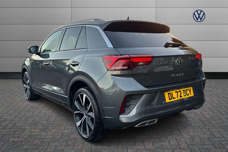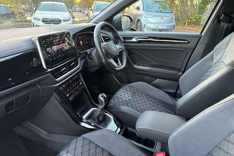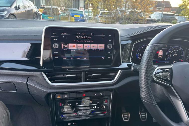 10.25" Digital cockpit pro, Bluetooth mobile phone interface, Driver alert system with fatigue detection, Driver tips and journey analysis, Emergency call service, Lane keeping system Lane Assist, Modified key software - reduce switch off time for key status change to Long no motion, Online services, Park assist including front and rear parking sensors, Service interval indicator, Tailgate/trunk lid release from outside, Think blue trainer driver tips and journey analysis, Warning sound and light for front seatbelts unfastened, Wireless app connect, Battery regeneration during braking, Start/stop function with battery regeneration, Diversity antenna for FM reception, Front and rear 6 speakers, Music playback - MP3, WMA and AAC files, Premium USB cable in choice of either Apple or Android smartphone compatibility, SD card slot, Simultaneous pairing of 2 compatible mobile devices, Title and cover art display, We Connect and We Connect Plus functionality, 3rd brake light, Auto dimming interior rear view mirror, Automatic hazard lights activation under emergency braking, Automatic headlight control with LED separate daytime running lights with coming/leaving home function, Extended roof spoiler, Exterior mirrors aspherical on driver side, convex on front passenger side, External USB type C socket and charging sockets, Front windscreen wiper with intermittent wipe and 4 position delay, Heated rear window, LED Plus headlamps, LED rear combination lamps, LED rear number plate lights, LED tail lamp rear comination lamps, Power windows with comfort operation and circuit breaker, R-Line design body coloured bumpers, Rain sensor, Rear exhaust tailpipe, Rear fog light on one side and reversing lights on both sides, Rear side wing doors, Rear wash/wipe with intermittent wipe setting, Remote electrically foldable door mirrors, puddle lights and reverse activated passenger's door mirror, 12V power socket in centre console, 3 rear head restraints, 3 seat bench in 2nd row, 4 load lashing points in luggage compartment, Air care climatronic air conditoning system with active combination filter and 2-zone temperature control, Black roof lining, Chrome plated radiator grille inserts, air vent surrounds and light switch surrounds, Door and side trim panel with leatherette insert, Drawer under drivers seat, Front + rear carpet mats, Front centre armrest, Front cupholders x 2, Front footwell illumination, Front reading light, Front scuff plates with R logo, Instrument lighting, white adjustable panel illumination, Interior ambient lighting and surround lighting, Interior light delay, Isofix child seat preparation, Leather gearshift handle, Load-through provision with cup holder when folded down ('Unsplit rear seat bench, split folding backrest, with centre armrest), Luggage compartment lighting, Single front passenger seat, Stainless steel pedals, Storage compartment in left and right luggage area, Storage compartment in rear doors, Storage compartments in driver and front passenger doors, Sunvisors with illuminated vanity mirrors, Variable boot floor, height adjustable and removable, Driver assistance pack without proactive passenger protection - T-Roc, 3 point height adj front seatbelts + pretensioners, 3 point seatbelts in outer rear with ECE label, ABS, Child locks on rear doors, Driver and front passenger airbag with front passenger airbag deactivation, Driver and front passenger safety-optimised head restraints, Drivers seatbelt reminder, Electronic parking brake, Electronic Stability Control (ESC) inc EDL (Electronic Differential Lock) and ASR (Traction Control), Front and rear passengers curtain airbag system including front side airbags, Front assist with city emergency braking and pedestrian monitoring, Front seat side impact airbags, Hill start assist, Predictive pedestrian protection, Rear disc brakes, Single tone horn, Tyre pressure loss indicator, Volkswagen roadside assistance, Alarm with interior protection, Anti-theft alarm system with interior monitoring, backup horn, and towing protection, Remote central locking with SAFELOCK, radio remote control with 2 remote control folding keys, Trims for alloy wheels,