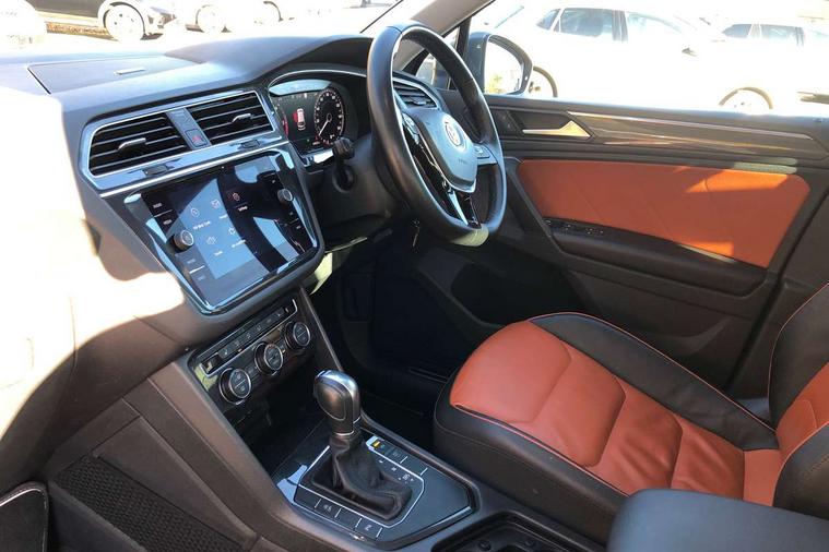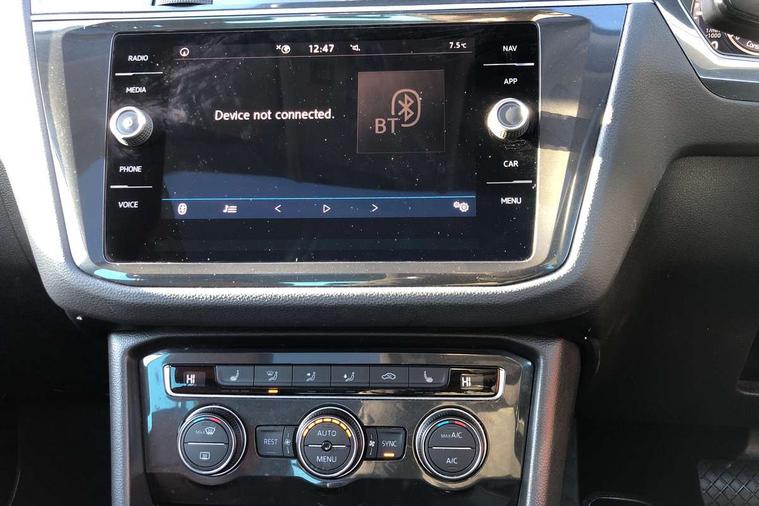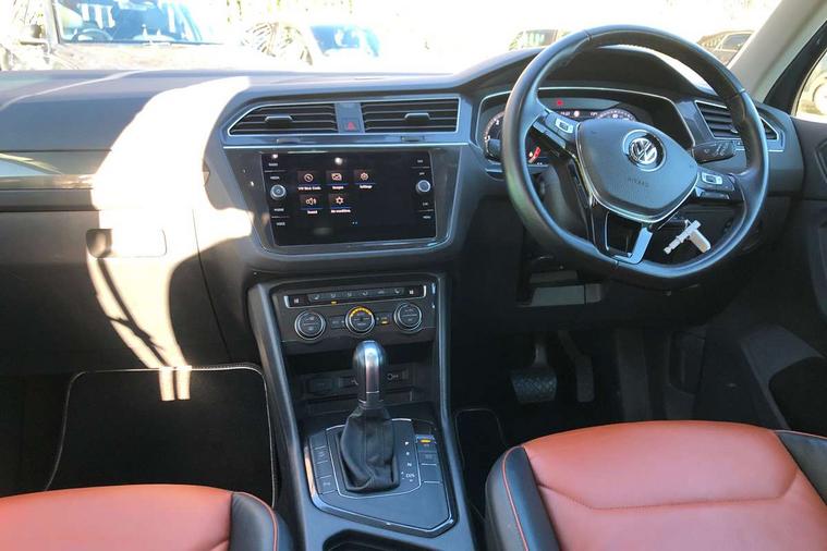 Active information display, Adaptive cruise control, App-Connect, Bluetooth phone integration system, Distance control assist, Fatigue detection system, Instrument cluster, Lane assist, Low washer fluid warning light, Outside temperature display, Service interval indicator, Speed limiter, Warning lights, Diesel particulate filter, XDS electronic differential lock, 2x USB sockets in front, Aux-in socket, DAB Digital radio, MP3 compatible single CD player, SD card slot, Auto dimming interior mirror, Automatic activation of hazard warning lights, Black door protector with chrome inserts, Body colour door handles, Body colour door mirrors, Body coloured bumpers, Chrome side body trim, Chrome side window surrounds, Chrome trimmed radiator grille, Coming/leaving home lighting function, Dusk sensor + auto driving lights, Electric folding door mirrors, Electric heated + adjustable door mirrors, Electric panoramic sunroof with sunblind, Front and rear electric windows, Heated rear window, LED headlights with dynamic light assist daytime running lights and cornering front fog lights, LED rear lights, Rain sensor windscreen wipers, Rear windscreen washer and wiper with interval delay, Silver rear diffuser trim, Silver roof rails, Silver under body guard, Tinted windows (B pillar backwards), Windscreen wipers/ intermittent wipe + 4 position delay, 12V Accessory socket in centre console, 3 rear headrests, 3 zone climate control, 4 load lashing points, 40:20:40 split folding rear seats, Bag hook in luggage compartment, Driver + front passenger lumbar support, Foldable passenger seatback, Front + rear carpet mats, Front centre armrest with 12v socket, Front centre armrest with storage + rear 2 air vents + cupholders, Front seatback folding tables, Height/reach adjust steering wheel, Illuminated driver/passenger vanity mirrors, Illuminated scuff plates, Interior light with delay, Isofix Preparation 2 Rear child seats, Leather gear knob, Load through provision with 2 cupholders when folded, Lockable cooled glovebox, Luggage compartment lighting, Luggage compartment side storage, Map pockets on front seats, Passenger seat height adjuster, Passenger underseat drawer, Rear cupholders, Removable luggage cover, Sliding/reclining rear seats, Storage compartment in driver's door, Storage compartment in passenger's door, Storage compartment in rear doors, Storage tray on dashboard, Sunglasses storage, Variable boot floor, Ambient lighting pack - Tiguan, 3 rear 3 point seatbelts, ABS+EBD+Brake assist, Active bonnet, Active pedestrian safety system, Curtain airbags, Driver/Front Passenger airbags, Driver/Passenger whiplash optimised head restraints, Drivers knee airbag, DTC - Drag torque control, Electronic parking brake with auto hold, ESP with EDL + ASR, First aid kit, Front assist including city emergency braking, Front side airbags, Head airbag system, Height adjustable front 3 point seatbelts + pretensioners, Hill hold control, Passenger airbag deactivate switch, Passenger knee airbag, Pre crash system, Rear side airbags, Seatbelt warning lamp and buzzer, Two tone horn, Warning triangle, Alarm with interior protection, Electronic engine immobiliser, Remote central locking with 2 remote folding keys, Chrome door trim inserts, Piano black interior trim, Steel space saver spare wheel,