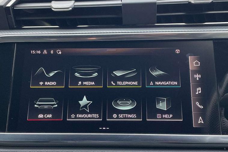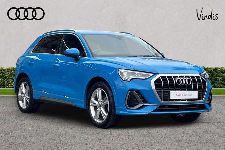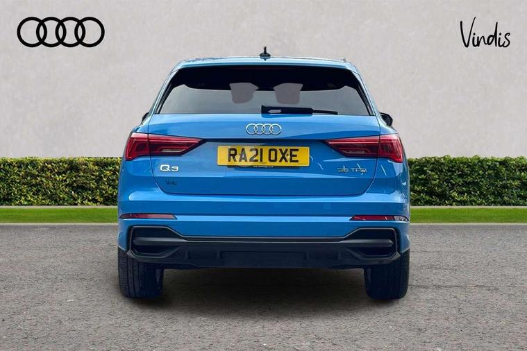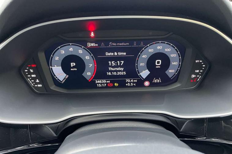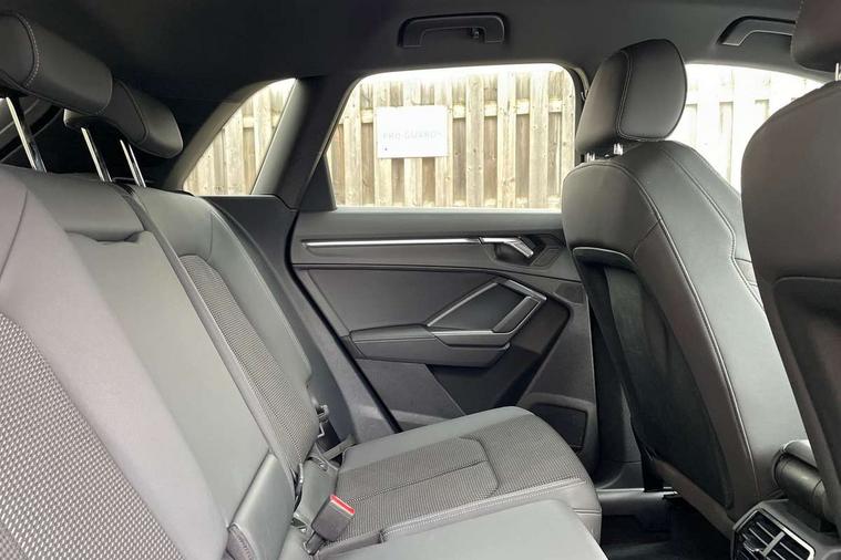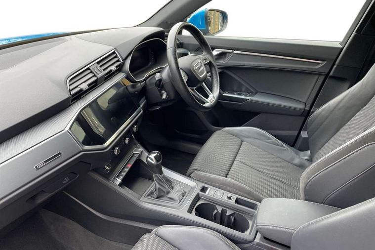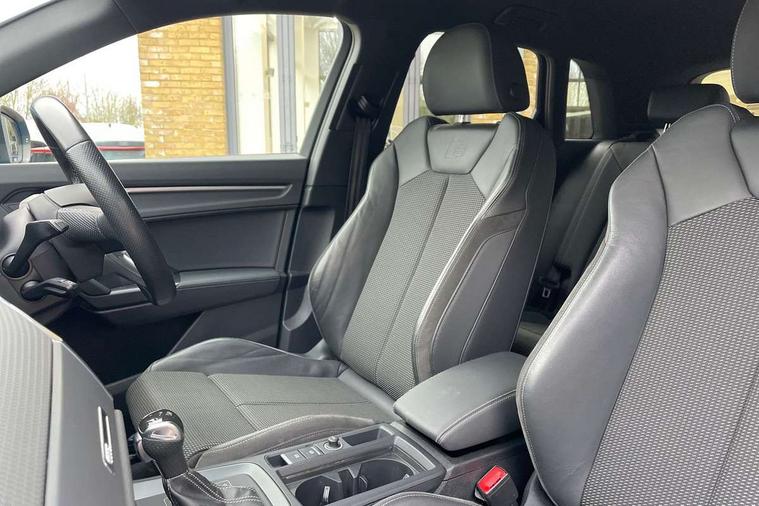 Amazon alexa Integration, Audi connect safety and service (e-call), Audi drive select, Audi lane departure warning, Audi Virtual Cockpit - 10.25" display, Bluetooth interface, Camera based traffic sign recognition, MMI Navigation Plus with high resolution 10.1 inch touchscreen colour display, Power operated tailgate, Progressive steering, Service interval indicator, Smartphone interface includes wireless Apple carplay/Android Auto, Start stop system with recuperation, Voice control system with natural language interaction, 48V Mild hybrid technology, Sports suspension, 2 USB-C ports with charge and data functions, 6 passive loudspeakers, DAB digital radio module, Acoustic windscreen, Aluminium roof rails, Aluminium window trim, Auto dimming frameless rear view mirror, Body coloured bumpers, Electrically folding, adjustable and heated door mirrors with integrated LED side indicators and kerb view function for passenger side, Front and rear electric windows, Front fog lights, Front side air inlets in matt platinum grey, Front spoiler blade in matt platinum grey, Grille vertical bars in aluminium silver/Matt, High gloss black finish B and C pillars, LED headlights with LED daytime running lights and dynamic rear indicator, LED rear lights, Privacy glass dark tinted rear and rear-side windows (from B-pillar backwards), Rain and light sensors, Rear diffuser strip in matt titanium black, S line badges on front wings, S Line front and rear bumpers, Side skirt insert in matt Platinium grey, Silver chrome grille surround, Titanium black radiator grille, 12V socket in rear centre console, 40:20:40 folding with manual adjustment for 60:40 forwards/backwards position and backrest angle, Adjustable rear seat bench/backrest with centre armrest and cupholder, Black cloth headlining, Dual zone electronic climate control, Front and rear black floor mats with contrast stitching in rock grey, Front and rear headrests, Front and rear roof module including reading lights, Front centre armrest, Glove compartment lighting, Height and reach adjustable steering wheel, Illuminated door sill trims with S logo, ISOFIX child seat mounting for front passenger with airbag deactivation and outer rear seat including top tether attachment point for outer rear seats, Luggage compartment light, Manual front seats with height adjustment, Perforated leather gearknob, Stainless steel luggage compartment sill finisher, Stainless steel pedals, Non smoking pack - Q3, 3x3 point rear seatbelts, 6 airbags - Driver, front passenger, curtain and side windows, Audi pre-sense front with pedestrain and cyclist recognition, Electrically operated child locks on rear doors, Electromechanical parking brake, Electronic stabilisation control including ABS, ASR and EDL, Hill descent control, Hill hold assist, Pre sense basic, Seatbelt monitoring, Tyre pressure warning, Warning triangle and first aid kit, Anti theft alarm, Anti theft wheel bolts, Remote central locking, Dark matt brushed aluminium inlay, Detail dashboard around MMI touch colour display in glass look, black with surround in aluminium look, Leatherette door armrest, Tool kit, Tyre repair kit,
