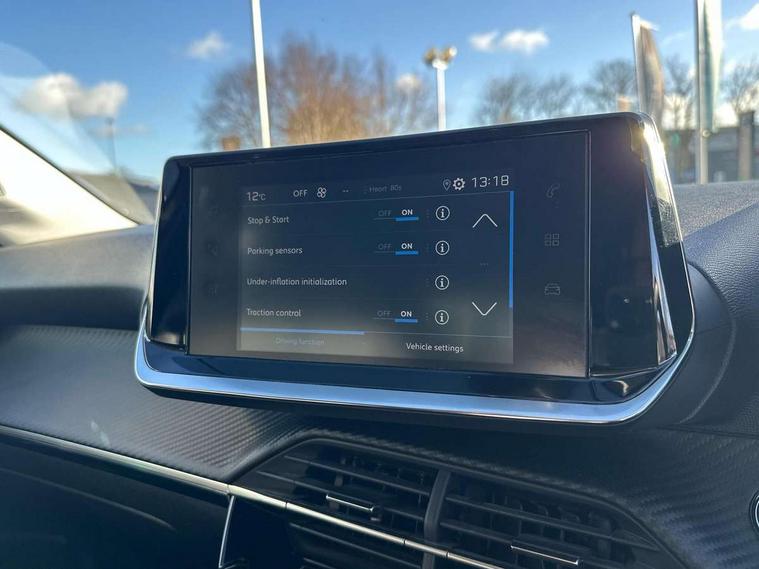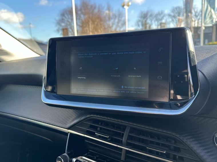Bluetooth telephone facility, Driver attention warning, Exterior temperature indicator with ice warning, Lane keep assist, Mirror screen with mirror link, apple carplay and android auto, Multi function trip computer, PEUGEOT i-Cockpit with compact steering wheel, PEUGEOT i-Cockpit with configurable 3D headup instrument panel, PEUGEOT SOS and assistance, Push button start, Rear parking sensors, Smart phone docking station, Speed limit recognition and recommendation, Visio Park 1 with 180 degree Colour reversing camera, 2 front USB socket with USB-C, 2x USB sockets in rear, 6 speakers radio with mp3 compatible, DAB Digital radio, Voice recognition for radio, navigation and telephony features, 2 X Rear number plate lights, Automatic hazard light activation upon heavy brake application, Automatic lights, Automatic windscreen wipers, Body coloured exterior door handles, Dark tinted rear side and tailgate windows, Diamond black rear spoiler (roof), Eco LED headlights, Electric front windows + one touch + anti-pinch, Electric rear windows with one touch/anti-pinch, Electrically adjustable, heated and power folding door mirrors, Electrochrome rear view mirror, Follow me home headlights, Gloss black finish on B pillar, Gloss black rear cluster connecting strip, Gloss black window surround, Headlights left on audible warning, LED daytime running lights with 3 claw headlight with distinctive tooth design, LED side indicator lights integrated into door mirrors, Model designation badges front and rear, Nera black door mirror shells, Radiator grille chrome chequered, Rear bumper with gloss black finish, Rear full LED 3D peugeot signature claw effect lights with daylight function, Rear reversing lights, Rear windscreen wiper triggered automatically in reverse gear, Roof mounted aerial, Tailgate with heated rear windscreen and wiper blade, 1/3 to 2/3 split folding rear seats, 12V socket, Automatic air conditioning, Black rods on rear headrests, Black wheel nut covers, Driver and front passenger comfort seats, Driver and front passenger seat manual adjustment in longitudinal and back rest angle, Driver seat mechanical height adjustment, Electric power steering with reach and rake adjustable steering column, Front centre armrest with storage compartment, Front LED interior light with 2 reading spotlights and rear interior light with timer, Gear shift indicator, High centre console with 2 cup holders, Leather steering wheel, Map pockets on the backs of the front seats, Piano keys gloss black plated toggle switches to access main functions of the vehicle, Roof lining - light grey, Satin chrome gear lever, Seatbelt unfastened on the move audible and visual alert for front and rear seats, Tri material cloth/leather upholstery, 2x Isofix child seat fitting on outer rear seats, 3 rear 3 point seatbelts, ABS (Anti-lock Braking System) with EBD (Electronic Brakeforce Distribution) and EBA (Emergency Braking Assistance), Adaptive driver and front passenger airbags with passenger airbag deactivation function, Child locking functionality on rear doors, Driver/front passenger side airbags, Electric parking brake, ESP with Hill Assist, Front and rear curtain airbags, Front and rear disc brakes, Front optimised safety headrests and 3 x rear retractable headrests with height adjustable, Front three point retractable seatbelts with force limiters, Pedestrians active safety brake, Tyre pressure sensor, Acoustic vehicle alert system (AVAS), Automatic door locking when moving off, Deadlock, Electronic code immobiliser, Thatcham cat. 1 alarm with anti lift sensor, Carbon effect Dashboard, front and rear door panel finish, 16" Soho diamond cut alloy wheels, Tyre puncture repair kit,