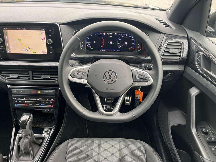 'Lights On' Reminder warning buzzer, 10.25" Digital cockpit pro, Advanced driver attention and drowsiness monitor, Car information display, Driver profile selection including ECO function, Dynamic road sign display, E-Sim card for online connectivity, eCall emergency call system, Front and rear parking sensors, Front assist, forward collision warning, autonomous emergency braking and speed limiter, Low washer fluid warning light, Mobile phone interface with inductive charging, Multifunction computer with visual gear change recommendation for fuel consumption, Multifunction front facing camera for distance control, Operating permit alteration, Power assisted steering, Predictive adaptive cruise control, Preparation for navigation system with media and internet package, Preparation for We connect and We connect plus, Semi-automated driving assistance, travel assist including lane keeping system Lane Assist and emergency assisst, Side assist, Speedo, rev counter, electronic odometer, trip, service interval display, exterior temperature and fuel gauge, Warning sound and light for doors and tailgate open, Warning sound and light for front seatbelts unfastened, Wireless Car net app connect with Apple CarPlay, combined functionality of Apple CarPlay/Android Auto and MirrorLink, Wireless charging, Misfuel prevention device, Start-stop system with battery regeneration (recuperation - energy recovery during braking), 2 USB C ports in front, 2 USB charging sockets on the centre console in the rear charging capacity upto 45W, Diversity antenna for FM reception, Music playback - MP3, WMA and AAC files, Radio, Advanced high beam control dynamic light assist, Automatic dimming interior rear view mirror, Automatic hazard lights activation under emergency braking, Automatic headlight control and coming home and leaving home feature, Black roof rails, Body colour door handles, Body coloured bumpers, Cornering light and poor weather light, Dynamic headlight range control, Electric folding door mirror, adjustable, heated with front passenger exterior mirror lowering function, Exterior mirror housings in black, Exterior mirrors convex on the left and aspherical on the right, Front and rear electric windows, Front door sill protectors with R-Line logo, Galvanised body, Heat insulating and laminated safety glass windshield, Heat insulating darkened glass in side and rear windows, Illuminated molding between headlamps, IQ.Light LED matrix headlamps with LED separate daytime running light, LED rear tail lights with dynamic turn signal, LED third brake light, Lower door sills and door pillars in black, Privacy glass for rear side windows and rear window, Rain sensor, Rear fog light on one side, reversing light on both sides, Rear side wing doors, Rear window aerial, Rear window wiper with intermittent control, Reflectors in all doors, Scuff plates, Tailgate with integrated roof spoiler, 12V Accessory socket in centre console, 2 Front and rear reading lights incorporating LED technology, 3 rear head restraints, 3 seat bench in 2nd row, 60/40 split folding rear seat backrest, Air care climatronic 2 zone air conditioning system, Ambient lighting and logo projection, Brushed stainless steel pedals, Chrome plated radiator grille inserts, air vent surrounds and light switch surrounds, Cloth upholstery, Comfort front sport seats, Door and side trim panel, Driver and front passenger sunvisor with vanity mirror, Dust and pollen filter, Front + rear carpet mats, Front centre armrest, Front centre armrest with storage compartment, Front footwell illumination, Front seat back storage pockets, Glove compartment door with light, Heated front seats, Heating and fresh air system with 4 stage blower, Height/reach adjust steering wheel, Instrument lighting white adjustable panel illumination, Interior light with switch off delay and dimmer, Isofix anchors for child seats on outer rear seats and front passenger seats, Leather gearshift handle, Leather wrapped multifunction steering wheel with paddle shift, Luggage compartment floor, Luggage compartment lighting, Manual front seats with height adjustment, Padded dashboard, Removable luggage compartment cover, Single front passenger seat, Storage compartment in drivers and front passengers door, Titanium black roof lining, Unsplit sliding rear seat bench, Without drawers under front seats, 3 point outer rear seat belts with ECE label, 3 Point seatbelt for centre rear seat, Anti-lock Braking System (ABS) with Hydraulic Brake Assist (HBA), Automatic post collision braking system, Disc brakes in front, Disc brakes in rear, Driver and front passenger safety-optimised head restraints, Drivers and Front Passengers airbags with front passengers airbag deactivation switch, ESC with EDL and ASR (traction control), Extended and predictive pedestrian/cyclist protection, Front and rear passenger curtain airbag system including front side airbags, Height adjustable front 3 point seatbelts + pretensioners, Hill start assist, Pre crash preventive occupant protection, Proactive passenger protection system in combination with front assist, Rear door child safety locks, Rigid safety cell with front and rear crumple zones, Single tone horn, Tyre pressure loss indicator, Volkswagen roadside assistance, Alarm with interior protection, Anti theft alarm system, Anti theft wheel bolts, Electronic engine immobiliser, Remote tailgate unlocking using key fob, Black decorative trims, Titanium Black Decorative inserts - R Line, 18" York alloy wheels in black, Low rolling resistance tyres,