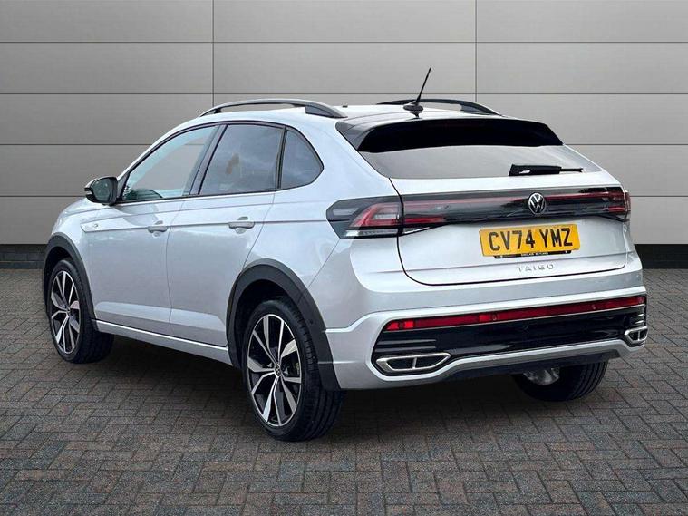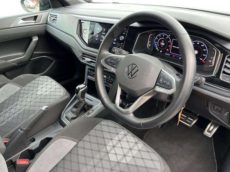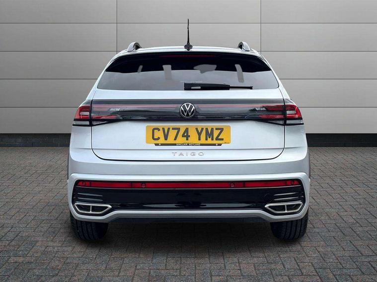 Adaptive cruise control, Advanced driver attention and drowsiness monitor, App-Connect including App-Connect Wireless, Digital cockpit pro - 10.25" high resolution TFT dash display screen with customizable menus and information, Driving profile selection, Dynamic road sign display, e-Call (emergency call), Power Steering, Travel assist including emergency assist, Washer fluid level indicator, Wireless Charging including Bluetooth, Start-stop system with battery regeneration (recuperation - energy recovery during braking), XDS electronic differential lock for improved traction and handling, Digital radio reception (DAB+), Diversity antenna for FM reception, WeConnect plus, Ambient lighting with logo projection, Aspherical driver's exterior mirror, Auto headlights, Body coloured bumpers, Bumpers in R-Line style, Electric windows, External USB type C socket and charging sockets, Front scuff plates with R-Line logo, LED rear combination lamp, LED third brake light, Left convex exterior mirror, Power folding adjustable/heated exterior mirrors and front passenger exterior mirror lowering function, Rear fog light on one side, reversing light on both sides, Rear side wing doors, Rear wash/wipe with intermittent wipe setting, 12V socket in centre console, 2 front reading lights, 3 rear head restraints, 3 seat bench in 2nd row, Air care climatronic air conditoning system with active combination filter and 2-zone temperature control, Black carpets, Black roof lining, Child seat anchor for child seat system i-Size, 2x top tether and child seat anchor in front on front passenger side, Chrome bezel for instrument cluster, vents, door handles + gear shift, Driver and front passenger seat height adjustment, Front + rear carpet mats, Front centre armrest, Front footwell illumination, Front sports comfort seats, Height and reach adjustable steering wheel, Interior ambient lighting and surround lighting, Karoso artvelours cloth upholstery, Leather trimmed gear knob, Leather wrapped multifunction steering wheel, Luggage compartment floor, Luggage compartment light, Lumbar support for driver's and front passengers seat, Seat covers in grey + titanium black, Single front passenger seat, Split folding backrest with centre armrest and unsplit rear seat bench, Stainless steel pedals, Storage compartment under front seats, Sun visors with illuminated vanity mirrors, Chrome Package - Taigo, Drivers assistance pack - Taigo, Light and Sight pack including High beam assist - Taigo, 2 x 3-point seatbelts/outer rear seats with ECE label, 3-point seat belts in front with pretensioner and height adjustment, 3-point seatbelt for centre rear seat, Adaptive driver and front passenger airbags with passenger airbag deactivation function, Driver and front passenger safety-optimised head restraints, Electronic stability control, Extended and predictive pedestrian/ cyclist protection, Front and rear disc brakes, Front curtain and side airbags with center airbag, Hill start assist, Manual rear child locks, Single tone horn, Tyre pressure loss indicator, Anti-theft alarm system with interior monitoring, backup horn, and towing protection, Grey anodised matte decorative inserts in dash and front door panels, Low rolling resistance tyres,