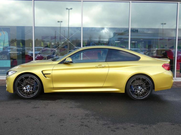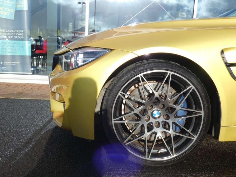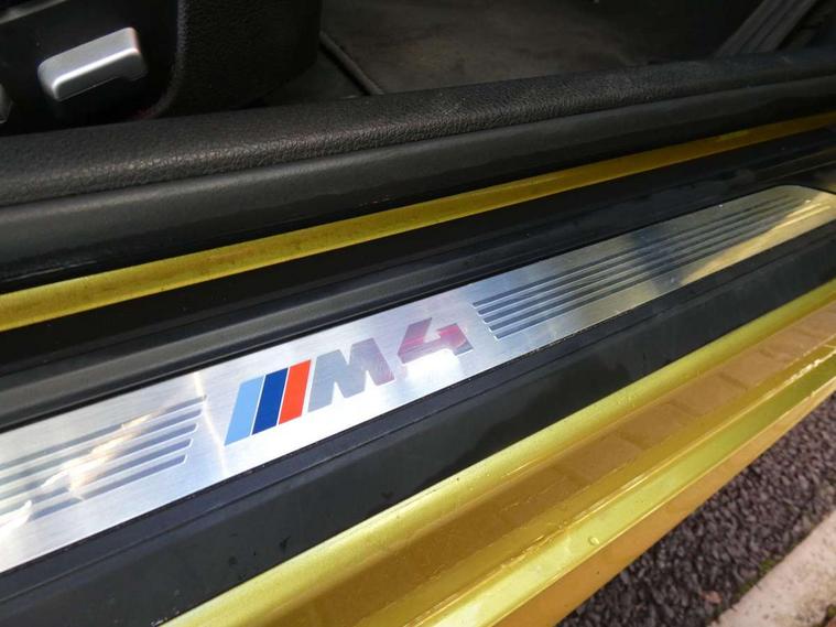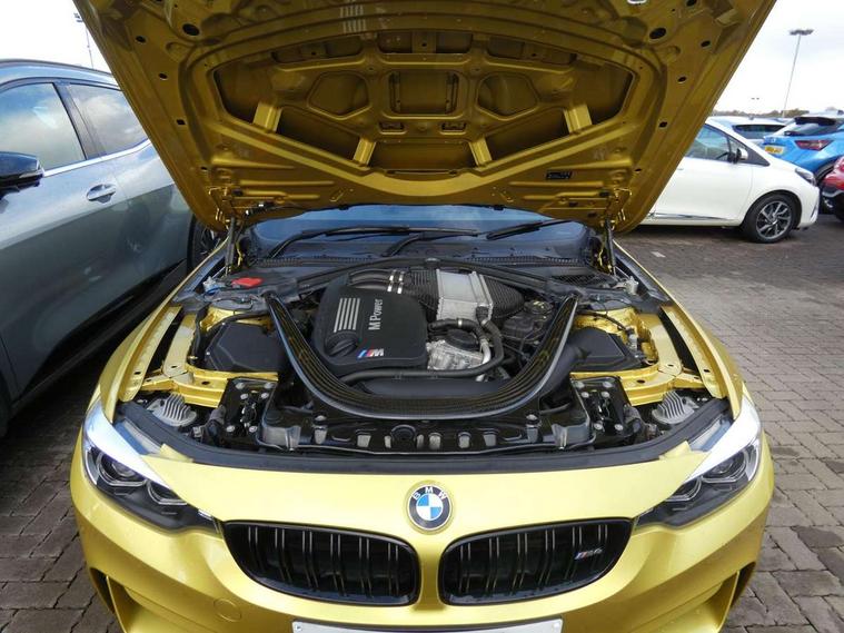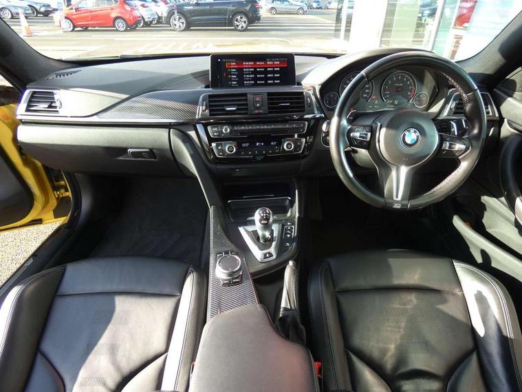 Brake pad wear indicator warning light, Cruise control with brake assist, Door/boot open warning, Electric Power Steering (EPS) with Servotronic, Enhanced bluetooth with wireless charging, Lights on warning, Oil temperature gauge, On board computer, Outside temperature display, Service interval indicator, Stop/start button, Adaptive M Sport suspension, Drive Performance Control, M differential lock, Sport exhaust system, Auxiliary point for auxiliary devices, Bluetooth audio streaming, BMW professional radio/CD/MP3, DAB Digital radio, Wi-Fi hot spot, 2 speed adjustable intermittent wipers with wash/wipe function, Auto dimming rear view mirror, Body colour door handles, Body colour door mirrors, Daytime running lights, Door sill finishers, Dynamic brake lights, Electric adjustable heated door mirrors, Electric front windows/one touch facility, Exhaust tailpipes in high gloss black, Exterior mirrors - electrically folding with anti-dazzle, Follow me home headlights, Heat insulating tinted glass, Heated windscreen washer jets, High gloss black kidney grille, High gloss black M side strakes, Individual high gloss shadow line, LED tail lights, M aerodynamic bodystyling, Rain sensor including auto headlights activation, 12V sockets in front centre console and passenger footwell, 3 spoke leather M sport multifunction sports steering wheel, 4 grab handles, Anthracite headlining, Anthracite Velour floor mats, Driver + passenger electric lumbar support, Driver/passenger sunvisors with illuminated vanity mirrors + covers, Dual zone climate control, Electrically adjustable front seats - driver seat with memory, Front centre armrest with storage compartment, Front cupholders x 2, Front head restraints, Front sliding armrest, Glovebox with lid, Heated front seats, Integrated rear head restraints, ISOFIX child seat preparation+airbag deactivation, Lashing eyelets in boot, Leather gearknob, Leather handbrake grip, M Sports seats, Reach + rake adjustable steering column, Storage compartment in rear centre console, Toolkit located in luggage compartment, Extended lights package - M Series, Media pack - Professional - M4, 3 point seatbelts on all seats, ABS/EBD, Automatic Stability Control (ASC), Cornering brake control (CBC), Crash Sensor - activates hazard/interior lighting + unlocks doors, Driver seatbelt warning indicator, Driver/Front Passenger airbags, DSC+, Dynamic brake control, Dynamic Traction Control - DTC, Front seatbelt force limiters, Front seatbelt pretensioner, Front side airbags, Hill start assist, ITS head airbags for front/rear, Tyre pressure monitor, Warning triangle and first aid kit, Drive away door locking, Electronic immobiliser, Keyless Start, Remote central locking, Remote control Thatcham category 1 alarm, M mobility system (flat-tyre repair system),