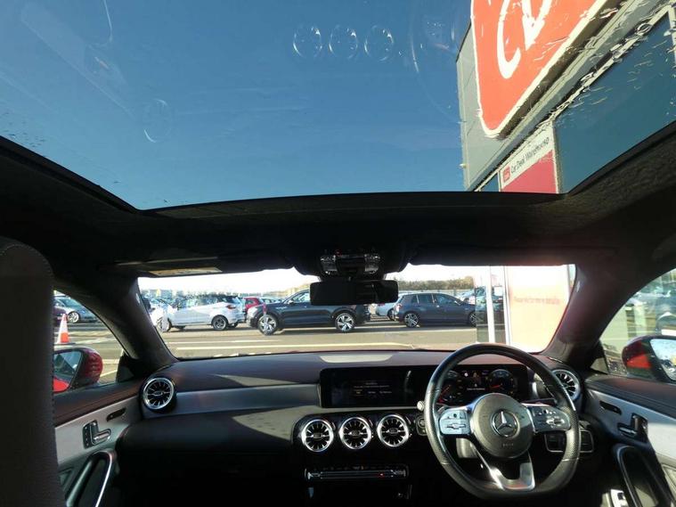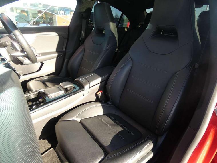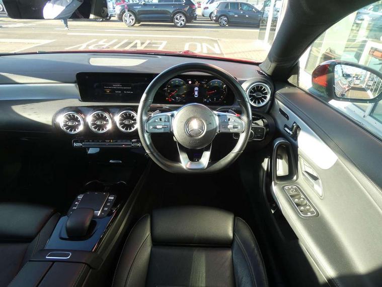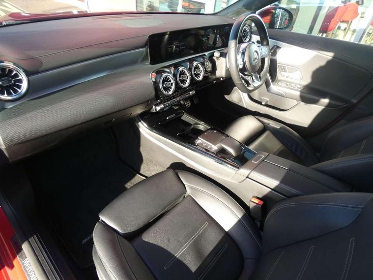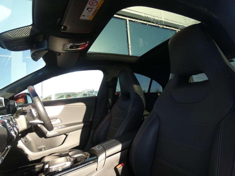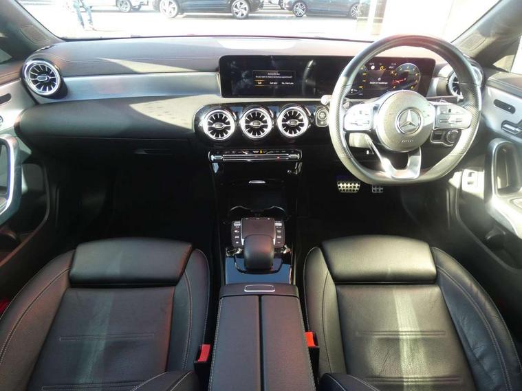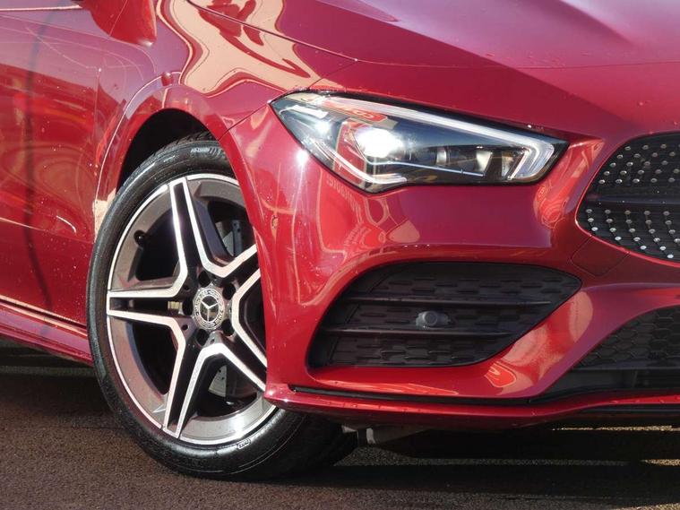10.25 inch Instrument display with digital cockpit, 10.25 inch touchscreen central media display, Attention assist - Monitors steering behaviour and long journey fatigue, Bluetooth connection, Car wash mode, DYNAMIC SELECT with a choice of driving modes (ECO, Comfort, Sport and Individual), ECO start/stop function, Fluid level warning indicator for fuel, oil, coolant and washer fluid, Hard-disk navigation, Hey Mercedes Voice activation, Lamp failure indicator, Mercedes me connect including emergency call system, accident recovery, breakdown and maintenance management, Mercedes me remote services, Outside temperature gauge, Owners manual and service booklet in English, Pre-installation of private car share, Preinstallation for Mercedes Benz link, Radio aerial integrated into front and rear windshields, Service indicator (ASSYST), Smartphone integration with Apple CarPlay and Android auto, Traffic sign assist, Trip computer in multifunction display with current consumption indicator, 7G-DCT 7 speed automatic transmission, Lowered comfort suspension, Rear axle multi-link, DAB digital radio tuner, MBUX multimedia system with DAB digital radio and touchpad including satellite navigation, Mid-range sound system, USB (type C) ports (2) in stowage compartment and 1 in front of centre console, Adaptive brake lights, AMG body styling with AMG front apron and rear apron and visible exhaust tailpipe in chrome trim elements, AMG bodystyling side skirts, Auto headlights, Body colour bumpers, Body colour door handles, Chrome beltline strips, Chrome weather strip, Diamond radiator grille pins in chrome with silver painted louvres and chrome insert, Electric panoramic sliding sunroof, Electric windows, Electrically adjustable and heated door mirrors with integrated LED indicators, Exhaust system with 2 Visible tailpipe trim elements and rear apron with trim in chrome, Headlamp assist automatic headlamp activation, Heated glass rear windscreen + timer control, High level LED third brake light, Integrated LED daytime running lights, Interior mirror with black reading lamps and frameless, LED tail lamp, Multibeam LED headlamps with adaptive highbeam assist plus, Privacy glass with dark tinting on rear side windows and rear window, Rain sensing windscreen wipers with two sensitivity settings, Rear boot, Rear fog lamp, Rear side wing doors, Window line trim strip in chrome, 3 seat bench in 2nd row, 3 spoke flattened bottom nappa leather multifunction steering wheel with perforated leather in grip area, 40:20:40 split folding rear seat backrests, Air conditioning - Two zone thermotronic luxury automatic climate control with display, Air vents with surround in silver chrome, Automatic child seat recognition sensor, Black roof lining, Brushed stainless steel sports pedals with rubber studs, Floor mats with stitched AMG lettering, Front centre armrest with stowage, Galvanished gear shift paddles on steering wheel, Heated front seats, Illuminated front door sills with changeable cover, Illuminated glove compartment stowage, Interior lighting - 64 colour Ambient lighting, Luggage net on driver/front passenger seat backrest, Manually height and reach adjustable steering column, Rear armrest with two integral cup holders for drinks, Rear head restraints, Single front passenger seat, Sport seats with fixed head restraints, Stowage compartment in centre console with retractable cover, Sunvisors with illuminated vanity mirrors, Touchpad on center console, Twin front cupholders, Two outer rear seat isofix and top tether child seat fixing points, Keyless go pack - CLA, Light and sight pack - CLA, Mirror pack - CLA, Parking package - CLA, Seat comfort pack - CLA, Active bonnet pedestrain safety measure which detects an impact and raises bonnet by 65mm, Adaptive brake assist with hold function and hill start assist, Anti-lock braking system (ABS), Black seat belts, Bonnet with power domes, Brake pad wear warning indicator, Childproof locks manually operated for rear doors and electrically operated for rear power windows, Crash responsive emergency lighting, Driver and front passenger head and sidebags, Driver and front passenger windowbags, Drivers knee airbag, Dual stage driver and front passenger airbags, Electric parking brake, Electronic stability programme with acceleration skid control, ESP curve dynamic assist, Front and rear seatbelt reminder, Front passenger seat occupancy sensor, Three point rear seat belts, Tyre pressure monitoring system, Warning triangle and first aid kit, Remote central locking and crash sensor with emergency opening function, Urban guard vehicle protection system with immobiliser and interior protection, Light aluminium with longitudinal grain interior trim, 18" 5 twin spoke design alloy wheels painted in titanium grey with high sheen finish, Summer tyres, Tirefit tyre sealant kit,