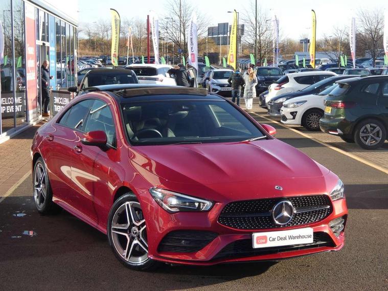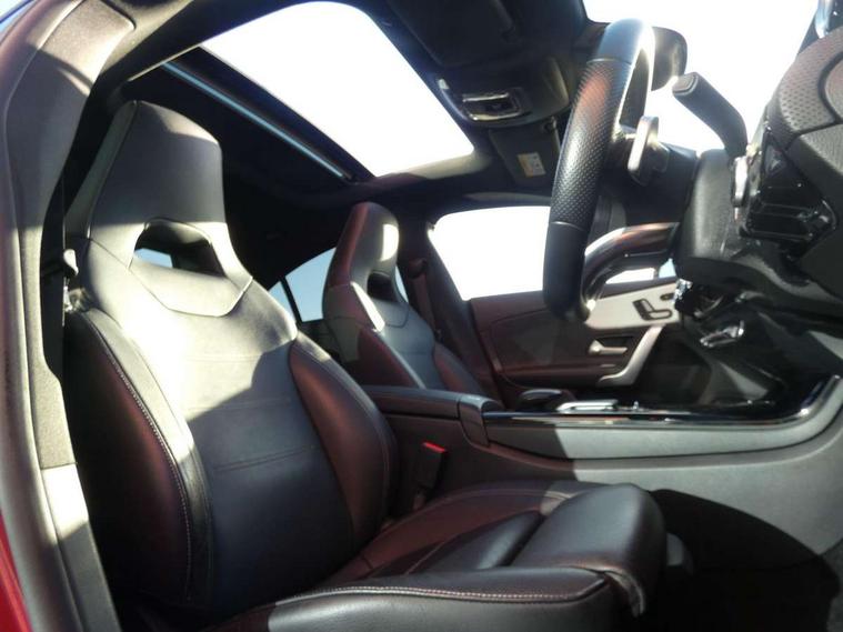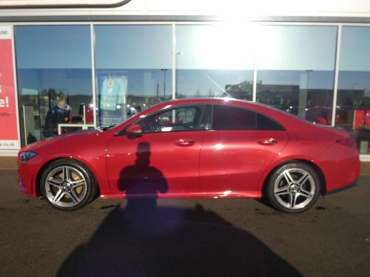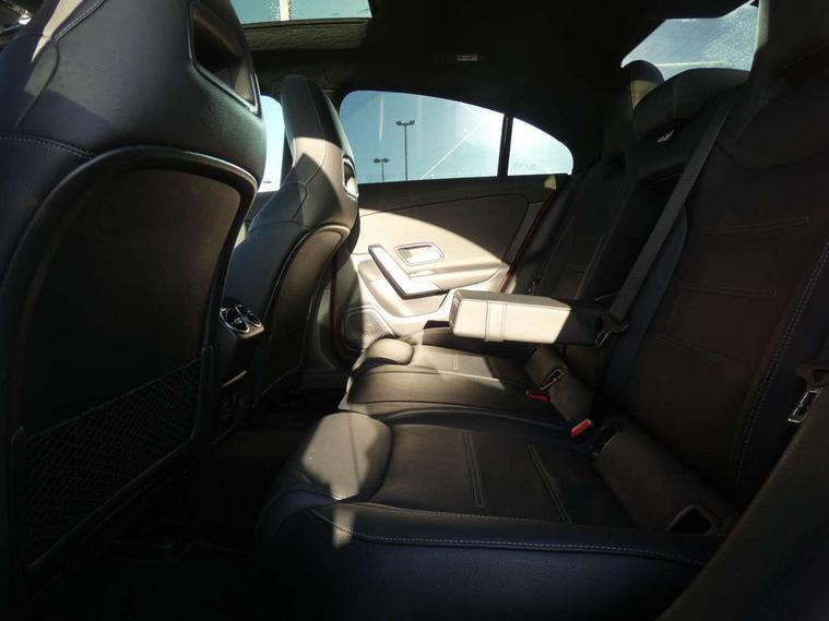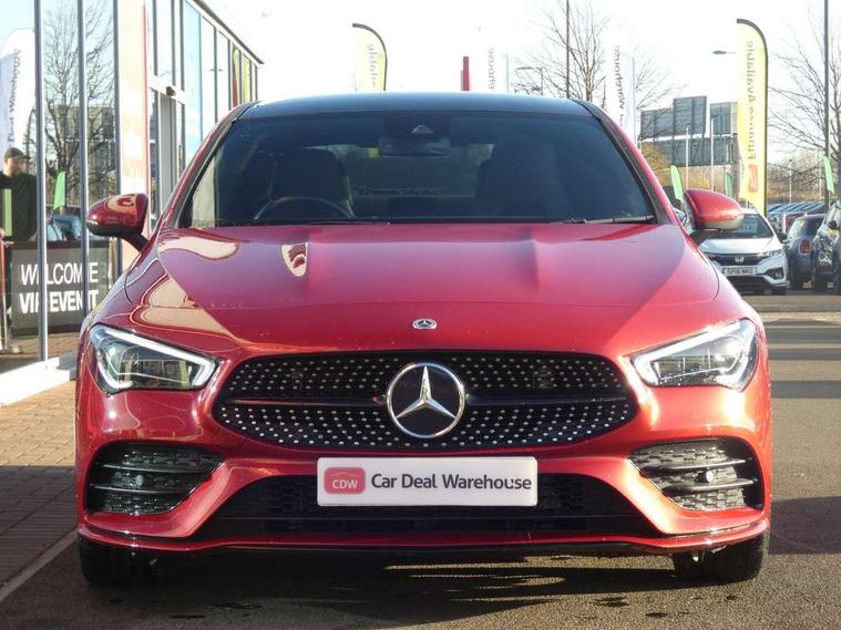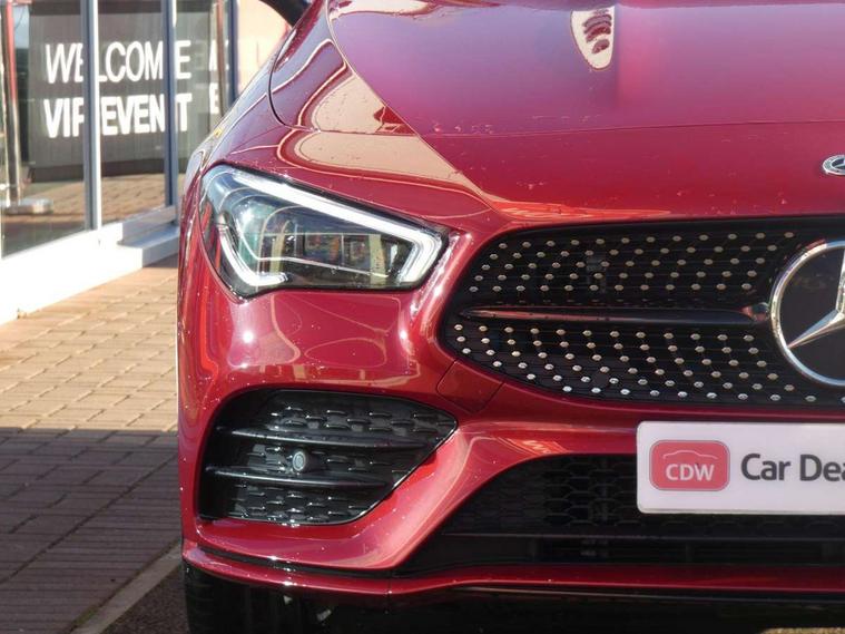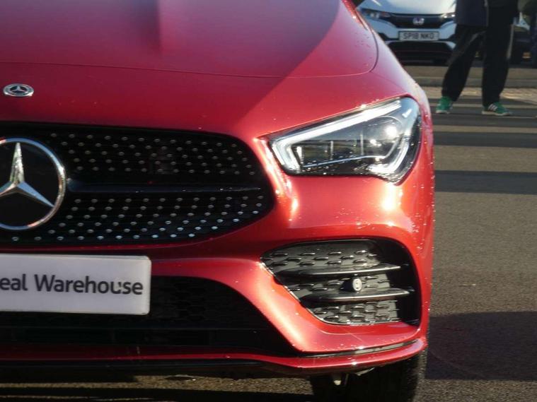 10.25 inch Instrument display with digital cockpit, 10.25 inch touchscreen central media display, Attention assist - Monitors steering behaviour and long journey fatigue, Bluetooth connection, Car wash mode, DYNAMIC SELECT with a choice of driving modes (ECO, Comfort, Sport and Individual), ECO start/stop function, Fluid level warning indicator for fuel, oil, coolant and washer fluid, Hard-disk navigation, Hey Mercedes Voice activation, Lamp failure indicator, Mercedes me connect including emergency call system, accident recovery, breakdown and maintenance management, Mercedes me remote services, Outside temperature gauge, Owners manual and service booklet in English, Pre-installation of private car share, Preinstallation for Mercedes Benz link, Radio aerial integrated into front and rear windshields, Service indicator (ASSYST), Smartphone integration with Apple CarPlay and Android auto, Traffic sign assist, Trip computer in multifunction display with current consumption indicator, 7G-DCT 7 speed automatic transmission, Lowered comfort suspension, Rear axle multi-link, DAB digital radio tuner, MBUX multimedia system with DAB digital radio and touchpad including satellite navigation, Mid-range sound system, USB (type C) ports (2) in stowage compartment and 1 in front of centre console, Adaptive brake lights, AMG body styling with AMG front apron and rear apron and visible exhaust tailpipe in chrome trim elements, AMG bodystyling side skirts, Auto headlights, Body colour bumpers, Body colour door handles, Chrome beltline strips, Chrome weather strip, Diamond radiator grille pins in chrome with silver painted louvres and chrome insert, Electric panoramic sliding sunroof, Electric windows, Electrically adjustable and heated door mirrors with integrated LED indicators, Exhaust system with 2 Visible tailpipe trim elements and rear apron with trim in chrome, Headlamp assist automatic headlamp activation, Heated glass rear windscreen + timer control, High level LED third brake light, Integrated LED daytime running lights, Interior mirror with black reading lamps and frameless, LED tail lamp, Multibeam LED headlamps with adaptive highbeam assist plus, Privacy glass with dark tinting on rear side windows and rear window, Rain sensing windscreen wipers with two sensitivity settings, Rear boot, Rear fog lamp, Rear side wing doors, Window line trim strip in chrome, 3 seat bench in 2nd row, 3 spoke flattened bottom nappa leather multifunction steering wheel with perforated leather in grip area, 40:20:40 split folding rear seat backrests, Air conditioning - Two zone thermotronic luxury automatic climate control with display, Air vents with surround in silver chrome, Automatic child seat recognition sensor, Black roof lining, Brushed stainless steel sports pedals with rubber studs, Floor mats with stitched AMG lettering, Front centre armrest with stowage, Galvanished gear shift paddles on steering wheel, Heated front seats, Illuminated front door sills with changeable cover, Illuminated glove compartment stowage, Interior lighting - 64 colour Ambient lighting, Luggage net on driver/front passenger seat backrest, Manually height and reach adjustable steering column, Rear armrest with two integral cup holders for drinks, Rear head restraints, Single front passenger seat, Sport seats with fixed head restraints, Stowage compartment in centre console with retractable cover, Sunvisors with illuminated vanity mirrors, Touchpad on center console, Twin front cupholders, Two outer rear seat isofix and top tether child seat fixing points, Keyless go pack - CLA, Light and sight pack - CLA, Mirror pack - CLA, Parking package - CLA, Seat comfort pack - CLA, Active bonnet pedestrain safety measure which detects an impact and raises bonnet by 65mm, Adaptive brake assist with hold function and hill start assist, Anti-lock braking system (ABS), Black seat belts, Bonnet with power domes, Brake pad wear warning indicator, Childproof locks manually operated for rear doors and electrically operated for rear power windows, Crash responsive emergency lighting, Driver and front passenger head and sidebags, Driver and front passenger windowbags, Drivers knee airbag, Dual stage driver and front passenger airbags, Electric parking brake, Electronic stability programme with acceleration skid control, ESP curve dynamic assist, Front and rear seatbelt reminder, Front passenger seat occupancy sensor, Three point rear seat belts, Tyre pressure monitoring system, Warning triangle and first aid kit, Remote central locking and crash sensor with emergency opening function, Urban guard vehicle protection system with immobiliser and interior protection, Light aluminium with longitudinal grain interior trim, 18" 5 twin spoke design alloy wheels painted in titanium grey with high sheen finish, Summer tyres, Tirefit tyre sealant kit,