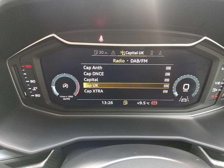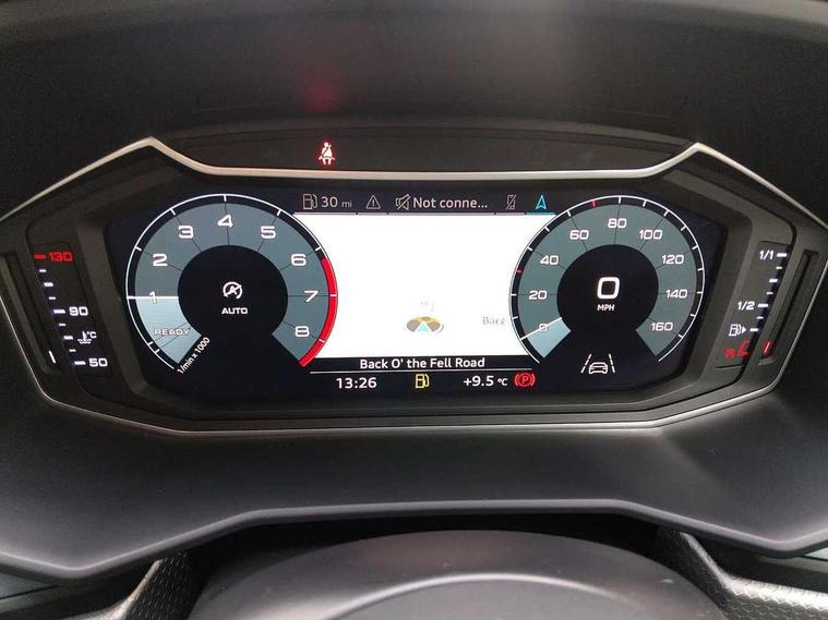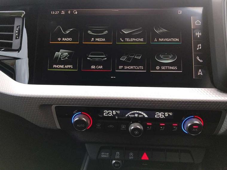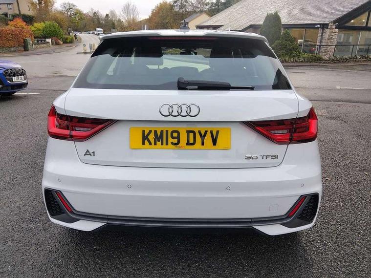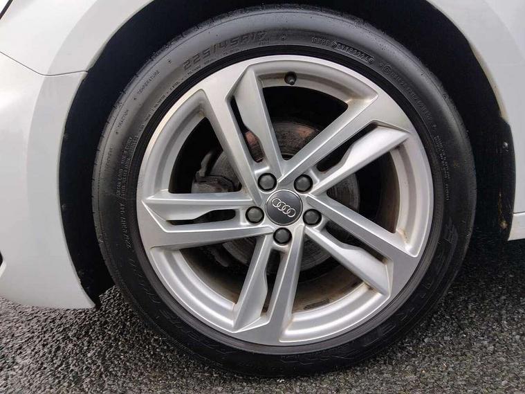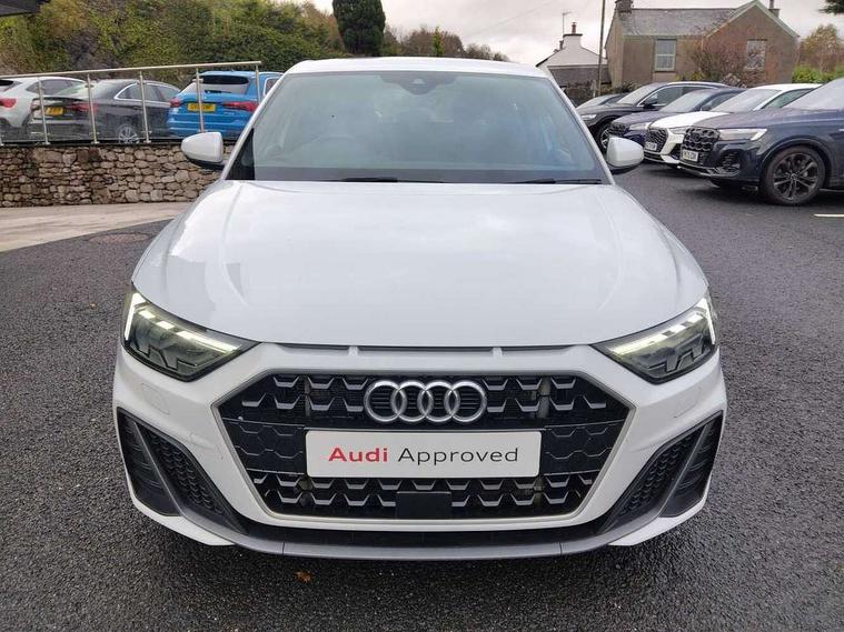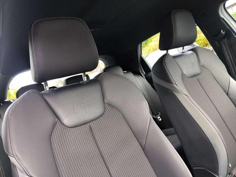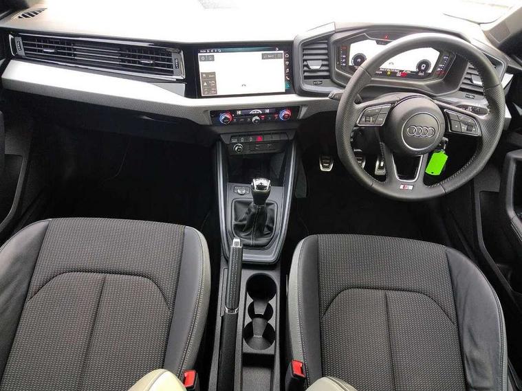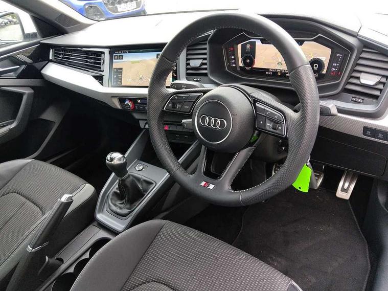 10.25" Digital instrument cluster display screen, Audi connect safety emergency and service including E-call, Audi drive select, Audi smartphone interface, Automatic start/stop system, Bluetooth interface, Driver's information system, Electromechanical power steering, Lane departure warning system, Service interval indicator, Speed limiter, Voice control system, Washer fluid level indicator, Sports suspension, 1 x SDXC card reader, 1 x USB type C and 1 USB type A charging points, Audi music interface, Bluetooth audio streaming, DAB Digital radio, MMI radio plus with 8.8" colour MMI display screen and MMI touch, Auto dimming rear view mirror, Body colour side sill mouldings, Body coloured bumpers, Body coloured door mirrors, Door sills with aluminium inlays and S Line logo, Electric front and rear windows, Front side air inlets in grained matt black and C frame in titanium black, Heat insulating glass windscreen and side windows, Heated rear windscreen, LED headlights with LED rear lights + dynamic rear indicators, Matt aluminium silver tailpipe trim, Matt black radiator grille frame, Matt platinum grey in front spoiler clip and rear diffuser clip, Rain and light sensors, Rear fog lights, Rear wiper, S line badges on front wings, S line exterior bumpers, S line roof spoiler, Side air inlet frames titanium black, Side front spoiler lips in grained matt black, 12V socket in centre console with two cup holders, 3 rear seats, Black cloth headlining, Driver and passenger seat with manual height adjust with forward and backwards adjustment, Front and rear black floor mats with contrast stitching in fine silver, Front head restraints, Height and reach adjustable steering wheel, ISOFIX child seat mounting in front passenger and rear outer seats, Leather gear knob with aluminium trim, Leatherette handbrake grip, Luggage compartment light with front and rear reading lights, Lumbar adjustment for front seats, Rear head restraints, Split folding rear seats, Stainless steel pedals, 3x3 point rear seatbelts, Audi pre-sense front with pedestrain and cyclist recognition, Brake assist function, Driver and front passenger airbag with front side and head airbags, Electronic Stability Control including ABS, EBD, ASR and EDL, Front and rear seatbelt reminder, Front passenger airbag deactivation switch, Hill hold assist, Seatbelt height adjustment for front seats, Seatbelt monitoring, Tyre pressure warning light, Warning triangle and first aid kit, Anti theft alarm, Anti theft wheel bolts and loose wheel warning, Immobiliser, Remote central locking with 2 remote folding keys, Aluminium trim for control switches, air vents and digital instrument cluster, Silver grey inlays polygon structure in diamond paint finish, Structured grey accent areas including air vents, door handle recesses and centre console in quartz paint finish,