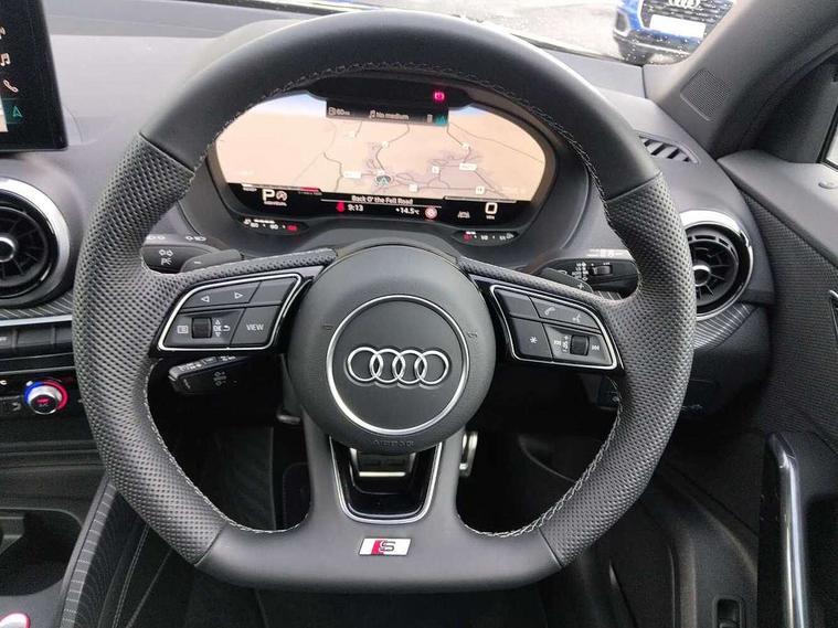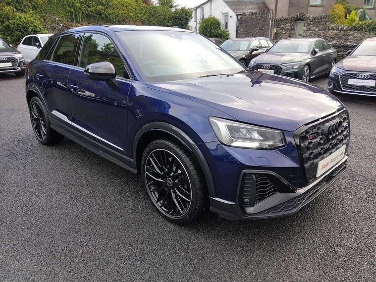 3D map display, Audi connect navigation and infotainment includes innovative services, Audi connect remote and control connects your vehicle to your smartphone, Audi drive select: S tronic - power steering assistance + engine + gearshift (modes: comfort, auto, dynamic, efficiency, individual), Audi phone box with wireless charging, Audi smartphone interface - Apple carplay/Android Auto, USB connect, 2xSDXC card readers, voice control for navi, telephone, music and 3rd party apps, Audi virtual cockpit, Automatic start/stop system with recuperation, Bluetooth interface includes bluetooth audio streaming, Camera based traffic sign recognition, Cruise control, Distraction and Fatigue warning, E-call, Instrument dials with S logo, Jukebox hard drive memory for music (10GB), Lane departure warning, MMI navigation plus with 8.8" touchscreen, Natural voice recognition, Power operated tailgate, Progressive steering, Quattro all wheel drive, S sport suspension lowered by 20mm, DAB Digital radio, USB type C port, Audi beam, Auto dimming rear view mirror, Black window trims, C-Pillar blade in Brilliant black, Electrically adjustable, folding, auto dimming and heated door mirrors with integrated LED side indicators, Exterior mirror caps in Brilliant black, Front windscreen with grey tinted sunband, LED daytime running lights, LED headlights with dipped beam, high beam, position lights, indicators, LED rear lights, LED third brake light, Privacy glass - dark tinted rear and rear side windows from B-pillar backwards, Quattro decals on rear side flank, Rear side wing doors, Rear wiper, S design body styling - SQ2 front bumper, S design underbody protection, SQ2 rear diffuser, S design radiator grille with horizontal struts and SQ2 logo, S specific dual-branch black tailpipes, with twin tailpipes on both the left and right in black, Sport bumpers in manhattan grey, Variable front intermittent wipers, Wheel arch trims in manhattan grey, 12V socket in front, 3 seat bench in 2nd row, 3 spoke flat bottom multi-fun leather sport steering with gear shift paddle and S badge grip in perforated leather with contrast stitch in rock grey, 4-way electric lumbar support for front seats including manual seat height adjustment for both front seats, 60/40 split folding rear seat bench, Black carpets, Black cloth headlining, Dual zone electronic climate control, Front and rear head restraints, Front centre armrest, Front sport seats, Front/rear floor mats, Height/reach adjust steering wheel, Illuminated door sill trims with S logo, ISOFIX child seat mounting in front passenger and rear outer seats, Single front passenger seat, Stainless steel pedals, Black styling pack - Q2, Extended interior upholstery pack - SQ2, LED interior lighting pack - Q2, Technology pack - Q2, 3x3 point rear seatbelts, 6 airbags - Front, curtain and front side airbags, Brake calipers painted black with S logo at the front, Electromechanical parking brake, Electronic stabilisation control including ABS, ASR and EDL, Front passenger airbag deactivation, Hill hold assist, Pre-sense front with pedestrian recognition, S model enhanced braking system, Seatbelt monitoring, Tyre pressure warning light with visual and acoustic warning, Warning triangle and first aid kit, Anti theft alarm, Anti theft wheel bolts, Electronically operated child locks, Remote central door locking, Aluminium interior element, Black dashboard, Gloss black centre console, Matt brushed aluminium trim inlays, Tool kit,