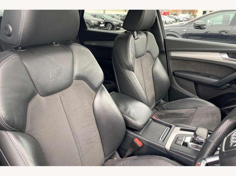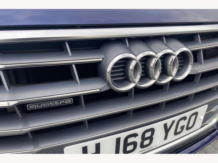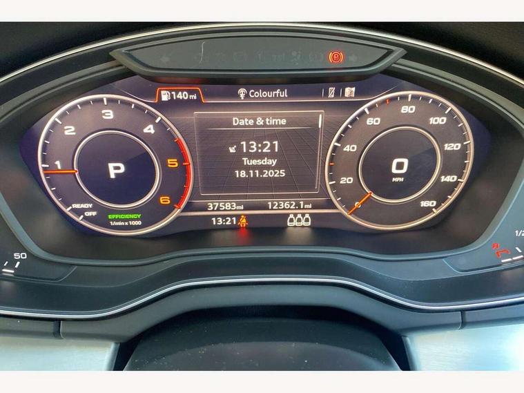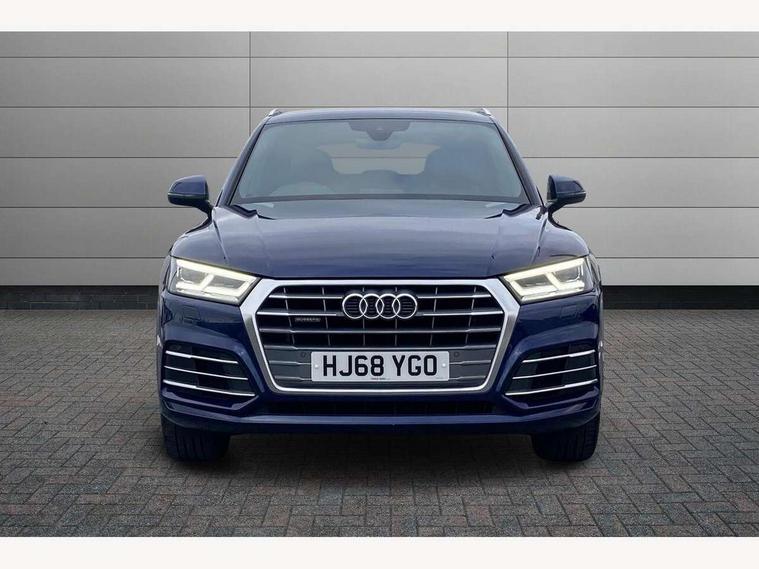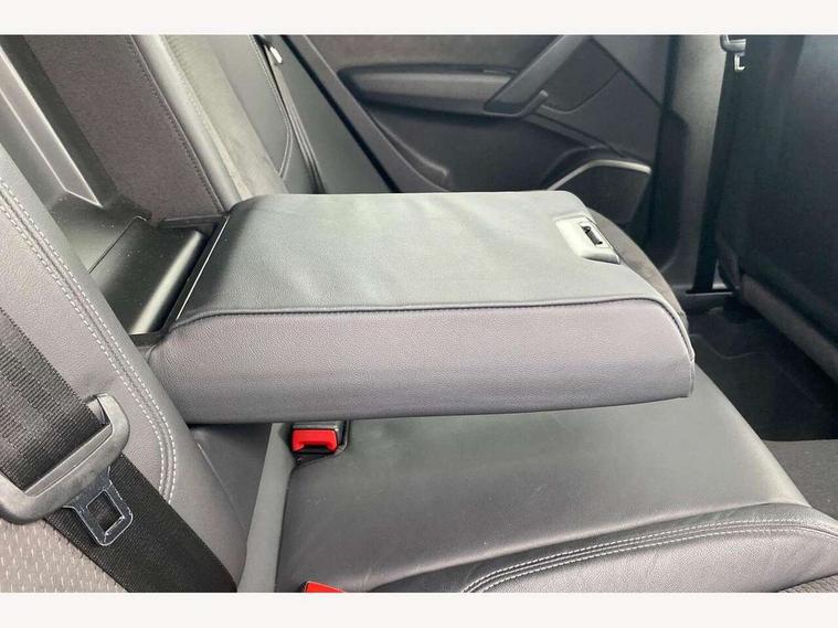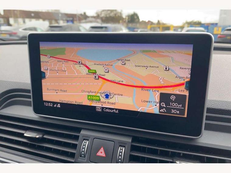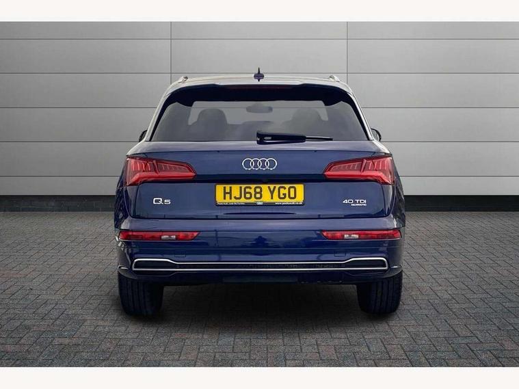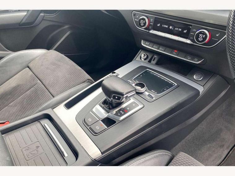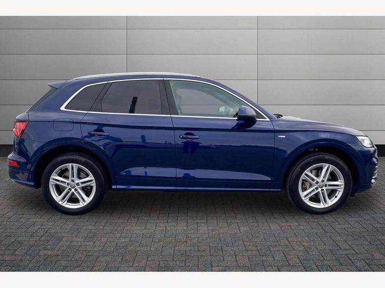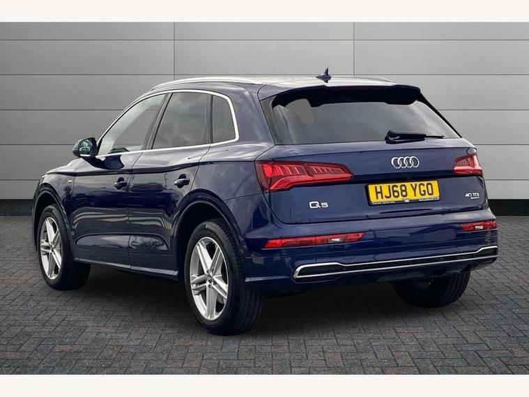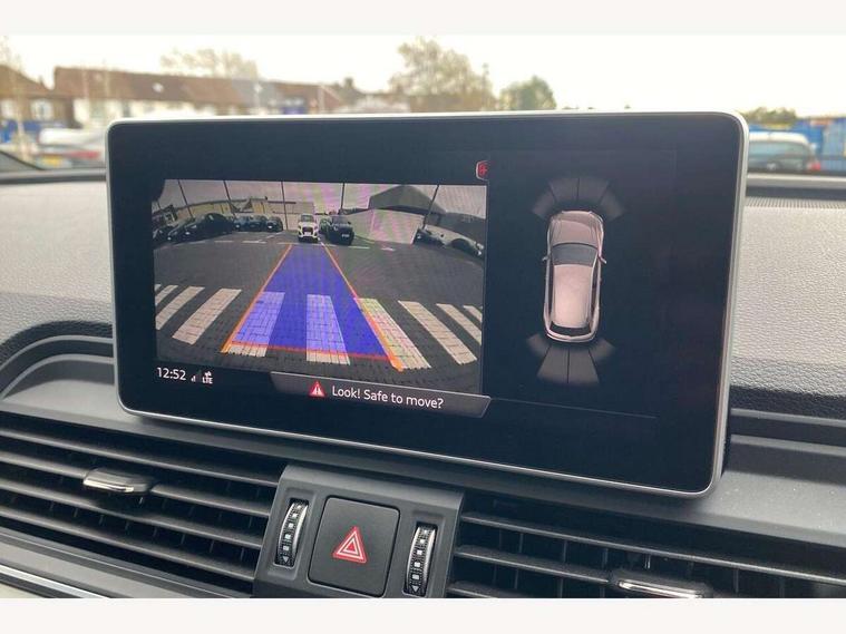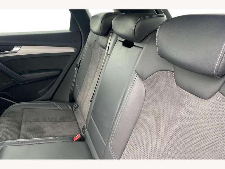 7" Colour driver information system, Audi drive select, Audi parking system plus with front and rear sensors, Audi smartphone interface, Electro - mechanical power assisted steering, MMI Navigation, Mobile telephone preparation - bluetooth interface, Power tailgate, Service interval indicator, Voice control system, Diesel particulate filter, 2x SD card slot, CD player, DAB Digital radio, MMI radio plus with 7" colour MMI screen and MMI controller, Acoustic windscreen, Air inlets in matt titanium black with blades in matt aluminium silver, Aluminium roof rails, Auto dimming rear view mirror, Automatic headlight levelling, Body colour bumpers, Body colour door mirrors, Body colour rear diffuser with matt aluminium silver surrounds, Body colour S Line side skirts, Body colour underbody protection, Chrome exhaust tailpipe, Front and rear electric windows, High beam assistant, Light and rain sensor for auto activation of lights and windscreen wipers, Loading sill protector in stainless steel, Privacy glass with front acoustic glazing, Rear wiper, S Line badges on the front wings, S Line front and rear bumpers/side air inlets and diffuser, S Line rear spoiler, Twilight grey matt radiator grille with matt aluminium horizontal chrome struts, 2 x USB charging port with aux input socket, 3 rear headrests, 3 zone climate control, 4 way electric lumbar support for driver and front passenger, 40:20:40 split folding rear seat with rear centre armrest, Black cloth headlining, Contrast stitching on seats, steering wheel and gear lever gaiter, Front centre armrest, Front sport seats with S embossed logo, Front/rear floor mats, Height adjustable front head restraints, Illuminated door sill trims with S logo, ISOFIX child seat mounting and top tether, Luggage compartment carpet, Perforated leather gearknob, Removable luggage compartment floor, Stainless steel pedals, Sunvisors with vanity mirrors, Tool kit, Trunk roller cover, High gloss pack - Q5, Non Smokers pack, 3 point seatbelts on all seats, 6 airbags - Driver, front passenger, curtain and side airbags, Electromechanical parking brake, Electronic stabilisation control including ABS, ASR and EDL, Front passenger airbag deactivation, Hill descent control, Hill hold assist, Multi collision brake assist, Pop-up bonnet for pedestrian protection, Pre sense city, Seat belt force limiter, Seatbelt monitoring, Tyre pressure warning, Warning triangle and first aid kit, Anti theft alarm, Anti-theft wheel bolts, Keyless Go access/ignition system, Remote central locking,